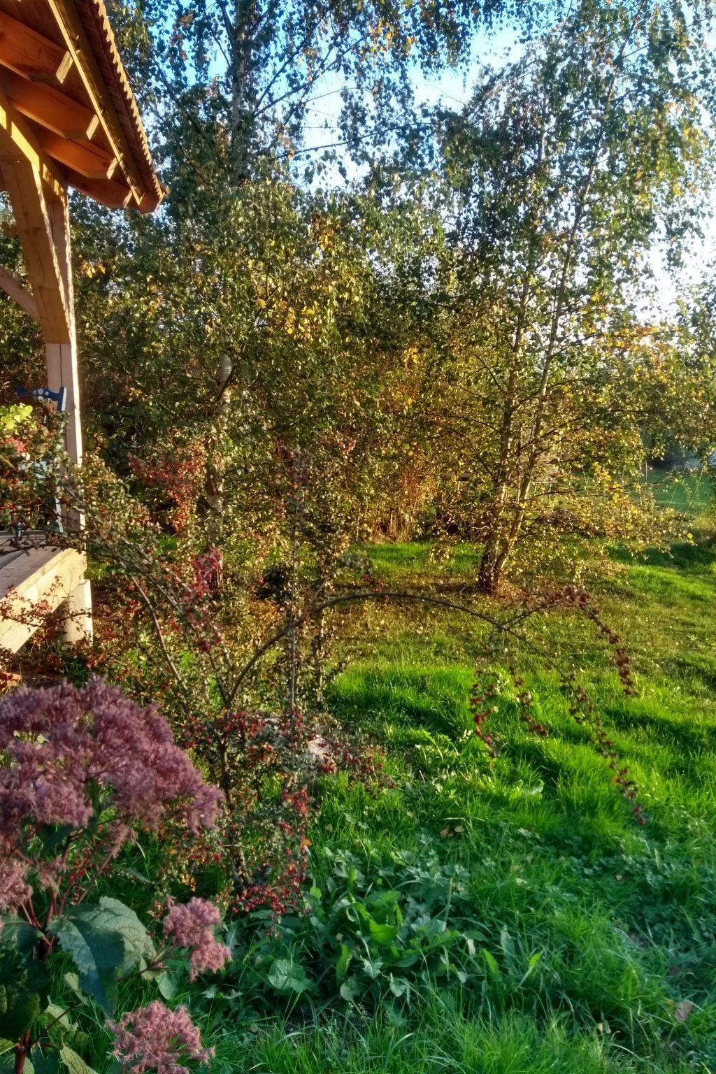 Im Außenbereich lädt das idyllische Gartengrundstück mit seiner kleinen Terrasse und der Veranda direkt vor dem Wagen zum Verweilen ein. Für zusätzliches Freiluftvergnügen sorgt das nebenan gelegene Freiluftzimmer mit Hängematte, zwei Hängeschaukeln und weiterer Sitzgelegenheit, perfekt, um den Sonnenuntergang zu genießen oder einfach in der Stille der Natur zu entspannen.