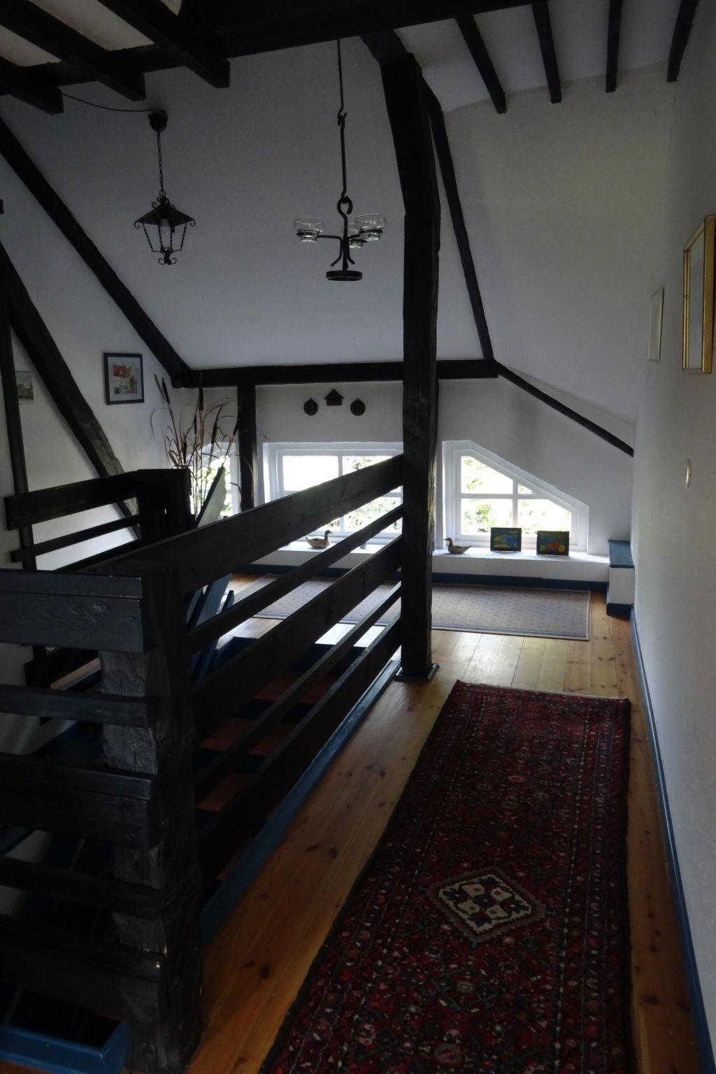 Im Außenbereich können Sie sich auf einer privaten Sitzecke mit Gartenstühlen, Tisch und Sonnenschirm umgeben von blühenden Pflanzen und Obstbäumen entspannen. Ab April steht eine Sauna im Garten zur Verfügung und ab Oktober ergänzt eine Außendusche das Angebot. 40 m² des Treppenhauses bieten neben einem herrlichen Ausblick über Wiesen und Felder auch einen Zugang zu einem Putzraum sowie zu Waschmaschine und Trockner, die kostenlos genutzt werden können. Eine Auswahl an Büchern, Spielen, DVDs und BluRays rundet das Angebot ab.