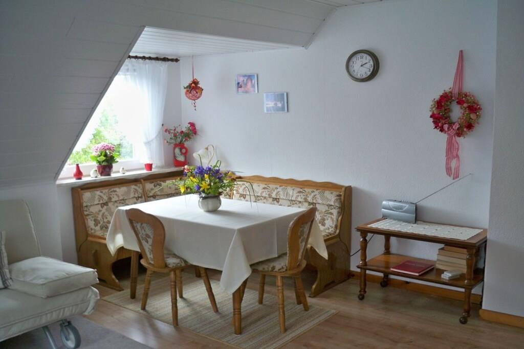 Liebe Gäste, unsere Ferienwohnung ist 44m² groß, bietet optimalen Komfort für 2 Urlauber und ist u.a. mit einer WLAN ausgestattet. Kinderbett kann bei Bedarf gestellt werden. Die Wohnung ist hell und freundlich. Bettwäsche und Handtücher werden gestellt. Die Ferienwohnung verfügt über ein Flachbild TV mit SAT-Anschluß. Fahrräder können kostenlos benutzt werden.