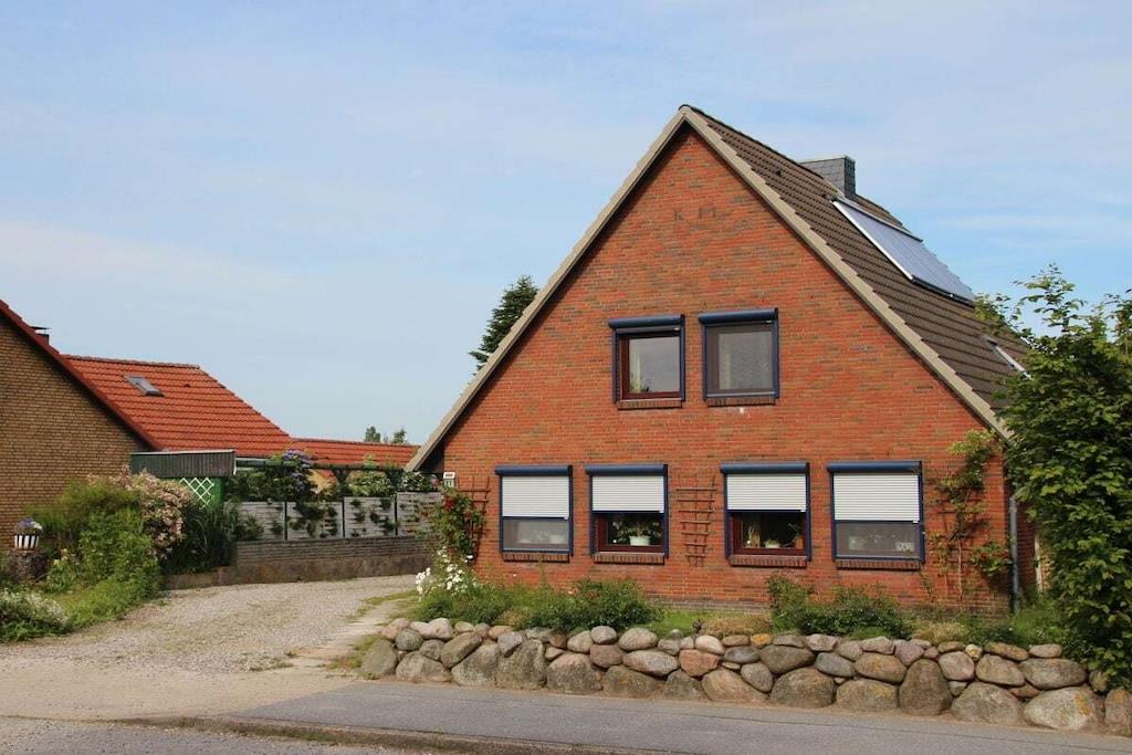 Gemütliche Ferienwohnung mit Terrasse und großem Garten in Gelting, ideal zum Entspannen und Wandern.