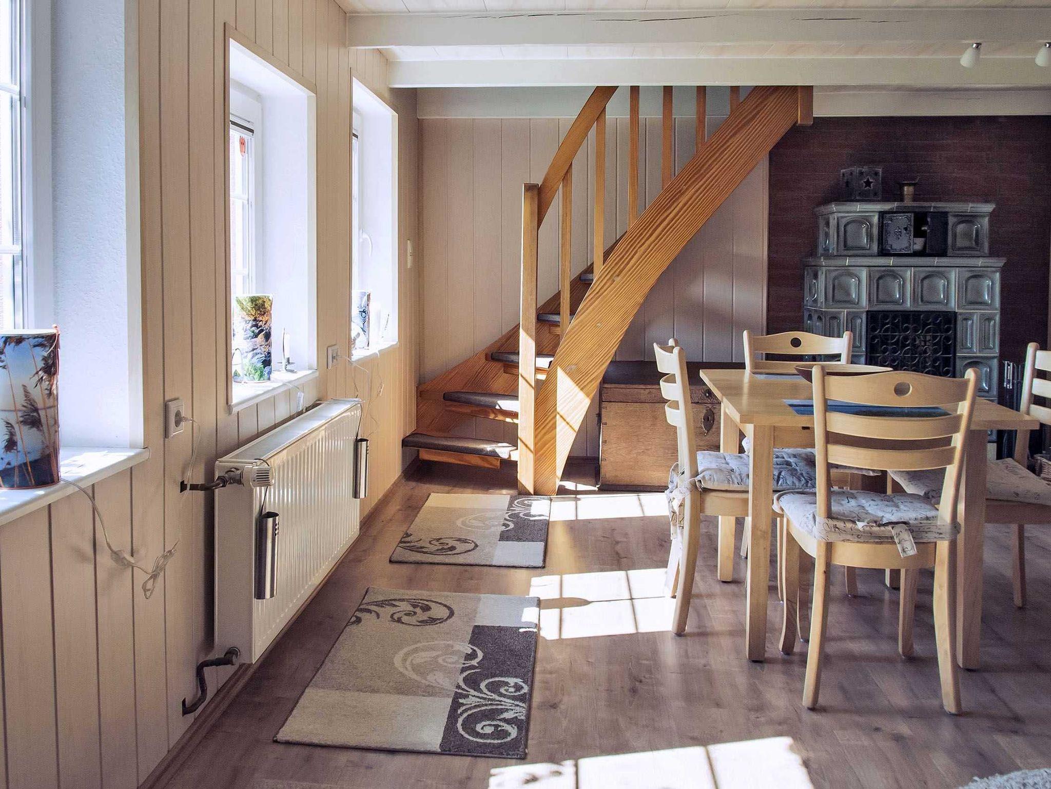 - Wohnraum mit Kachelofen, HD-TV, Radio mit CD-Player, div. Spiele und Sitzecke mit ausziehbarer Schlafcouch