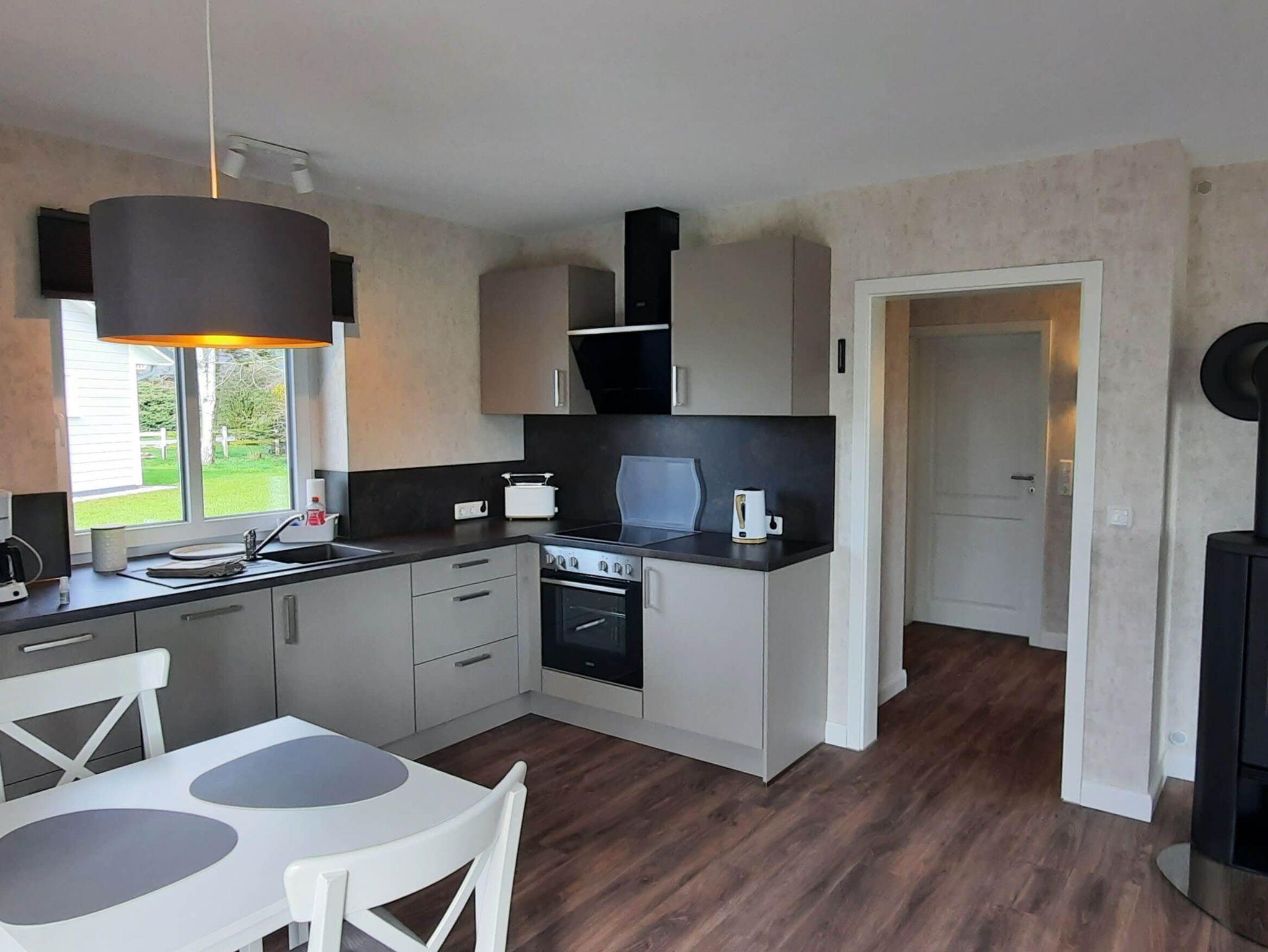 - großer Wohn-Essbereich mit offener Küche und Kaminofen; Korb mit Brennholz für 5,00 € vor Ort zu buchbar;