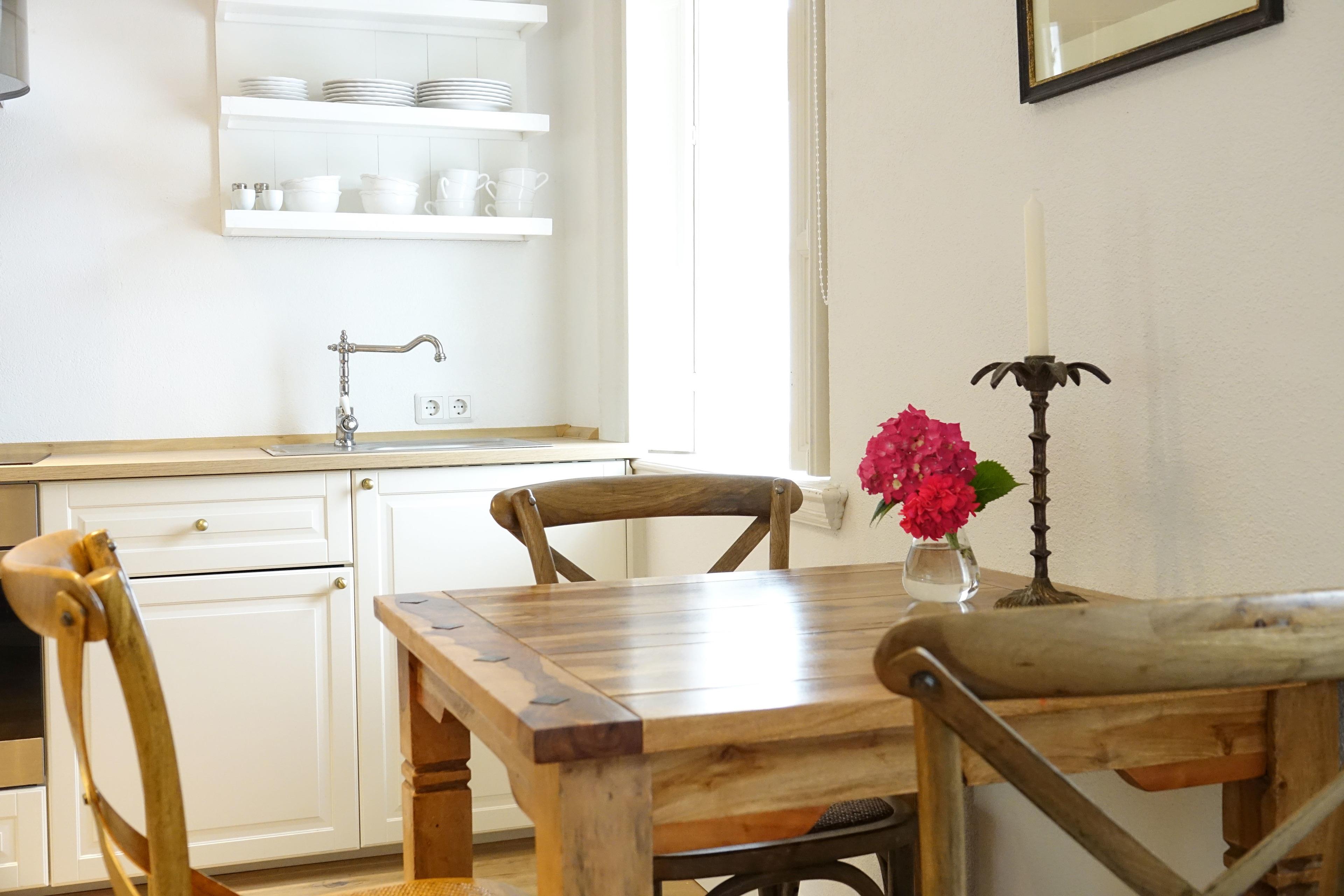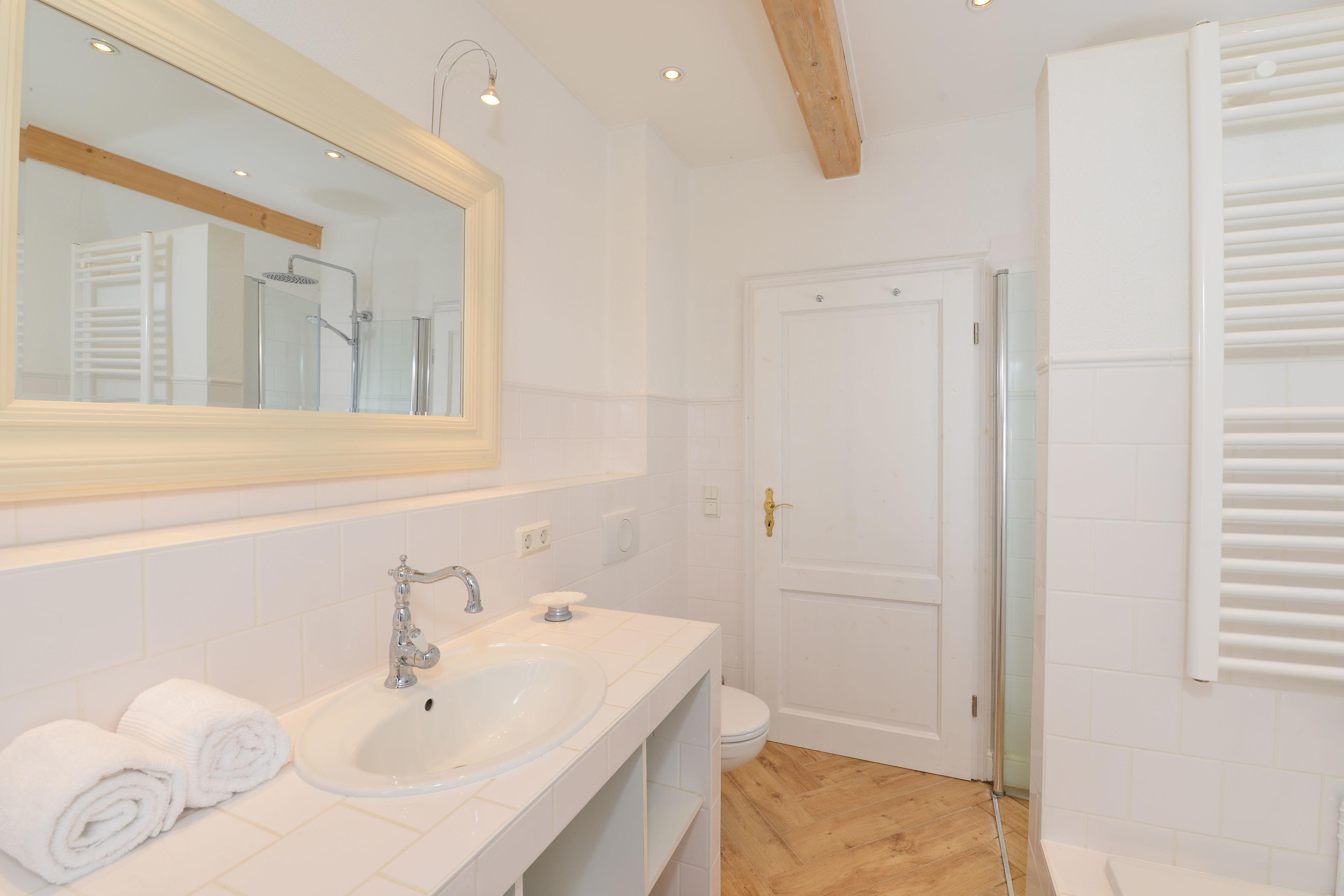 Wohn-/Esszimmer mit integrierter Küchenzeile und Kaminofen, Bad mit bodengleicher Dusche und Badewanne, 1 Doppelzimmer