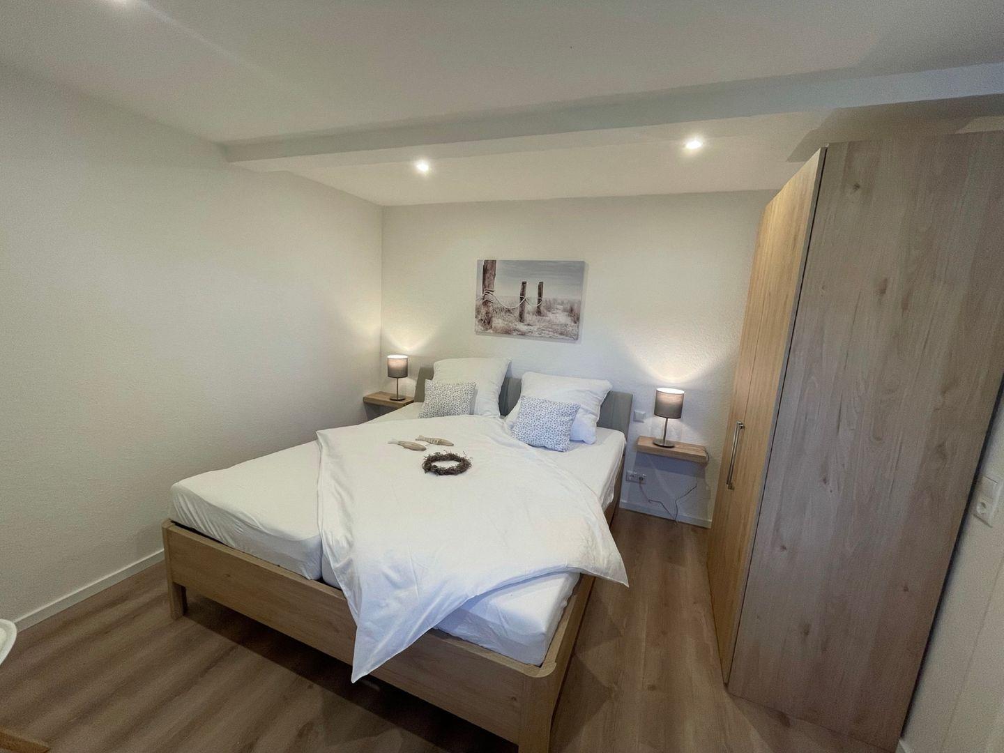 Die voll ausgestattete Ferienwohnung „Stuuv een“ im Erdgeschoss ist für bis zu vier Personen geeignet. Hunde sind herzlich willkommen. Die offene Küche ist hochwertig ausgestattet und geht ins stilvoll eingerichtete Ess- und Wohnzimmer mit Kaminofen über. Vom Wohnbereich aus hast Du Zugang zur Terrasse sowie zum eingezäunten Gartenbereich. Im Duschbad steht eine finnische Sauna zur Verfügung. Ein PKW-Stellplatz mit E-Ladesäule befindet sich am Haus, ebenso ein abschließbarer Fahrradschuppen.