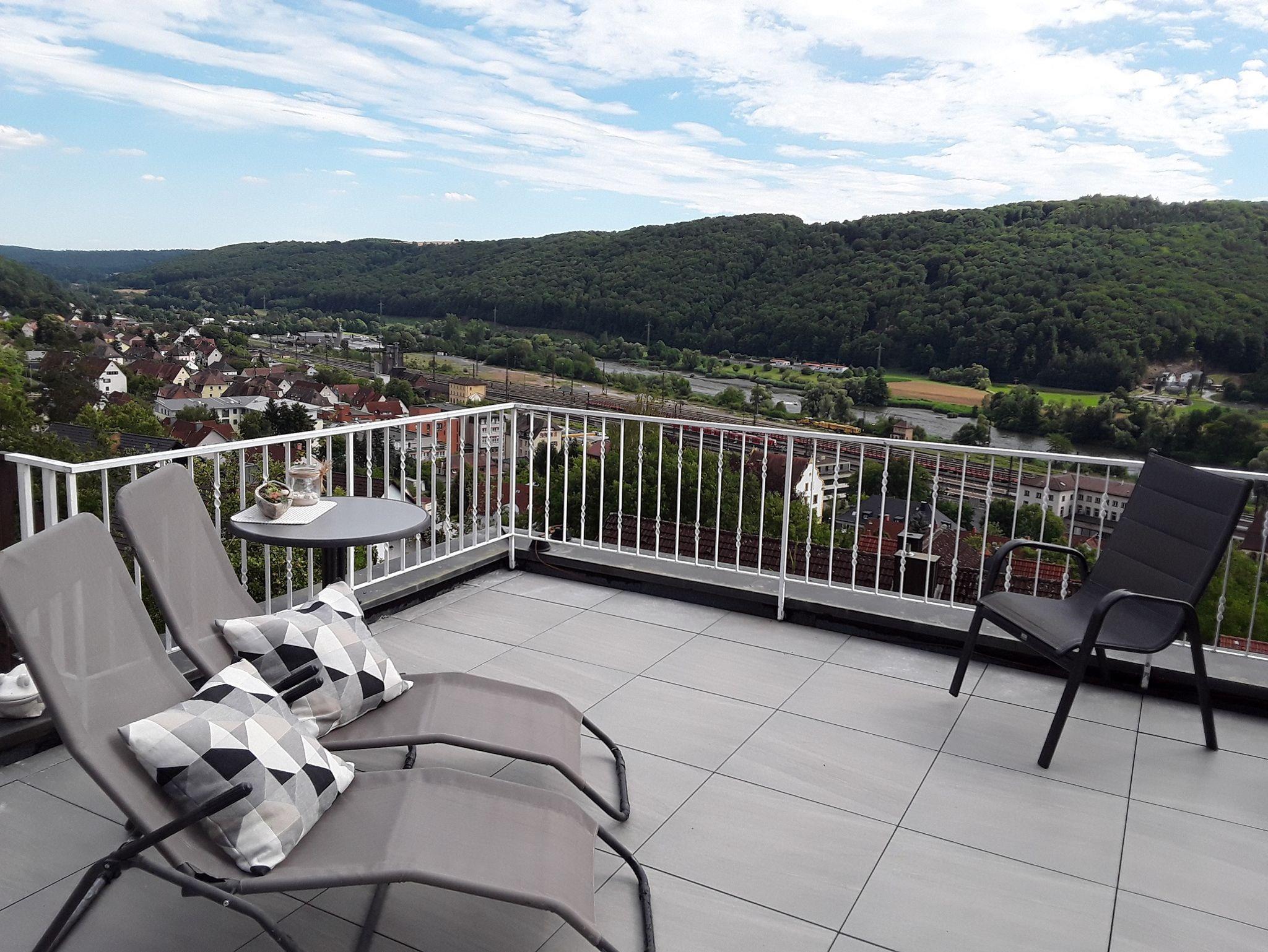 Unser Haus liegt wald- und zentrumsnah in Gemünden mit einem herrlichen Blick auf den Main.