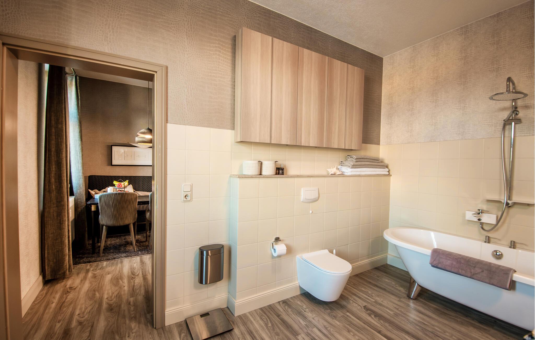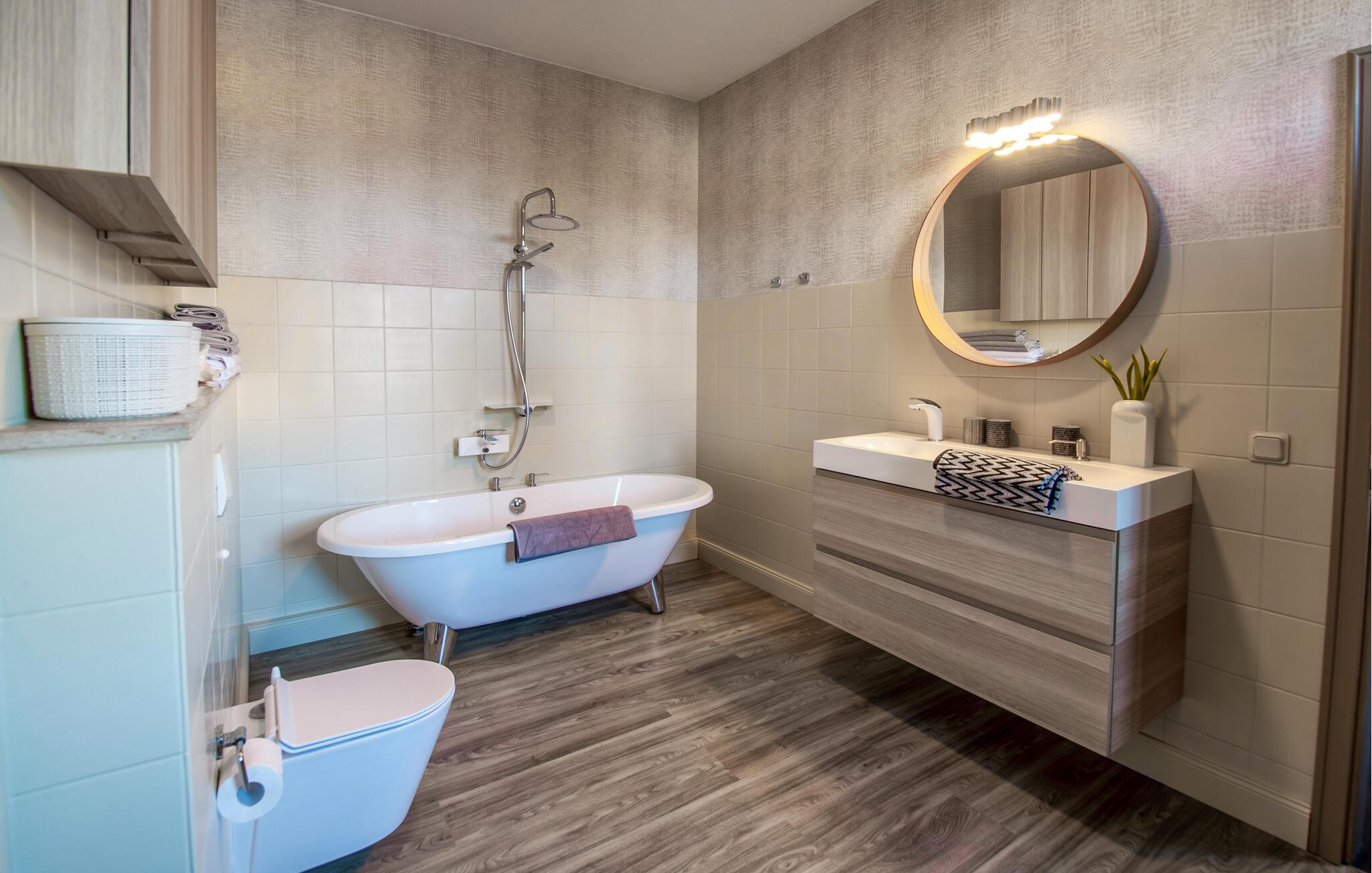 - WC mit warmem und kaltem Wasser, Dusche und Badewanne