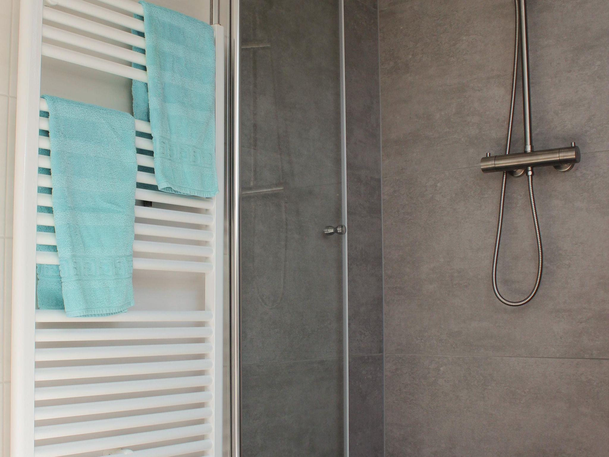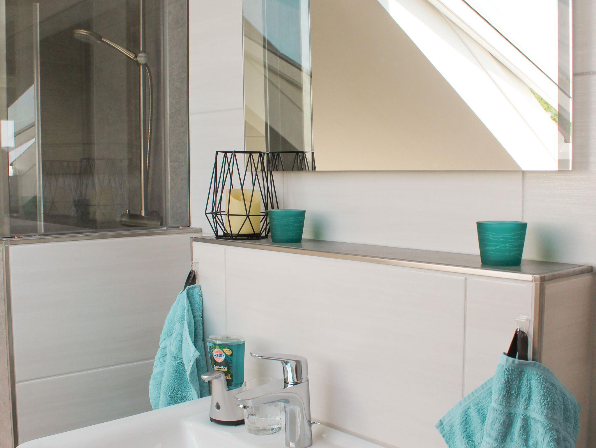 Die obere Etage haben wir 2021 neu ausgebaut und hat neben Fußbodenheizung, einer ebenerdigen Dusche auch großzügige Panorama Dachfenster, um die freie Sicht ins Grüne zu genießen.