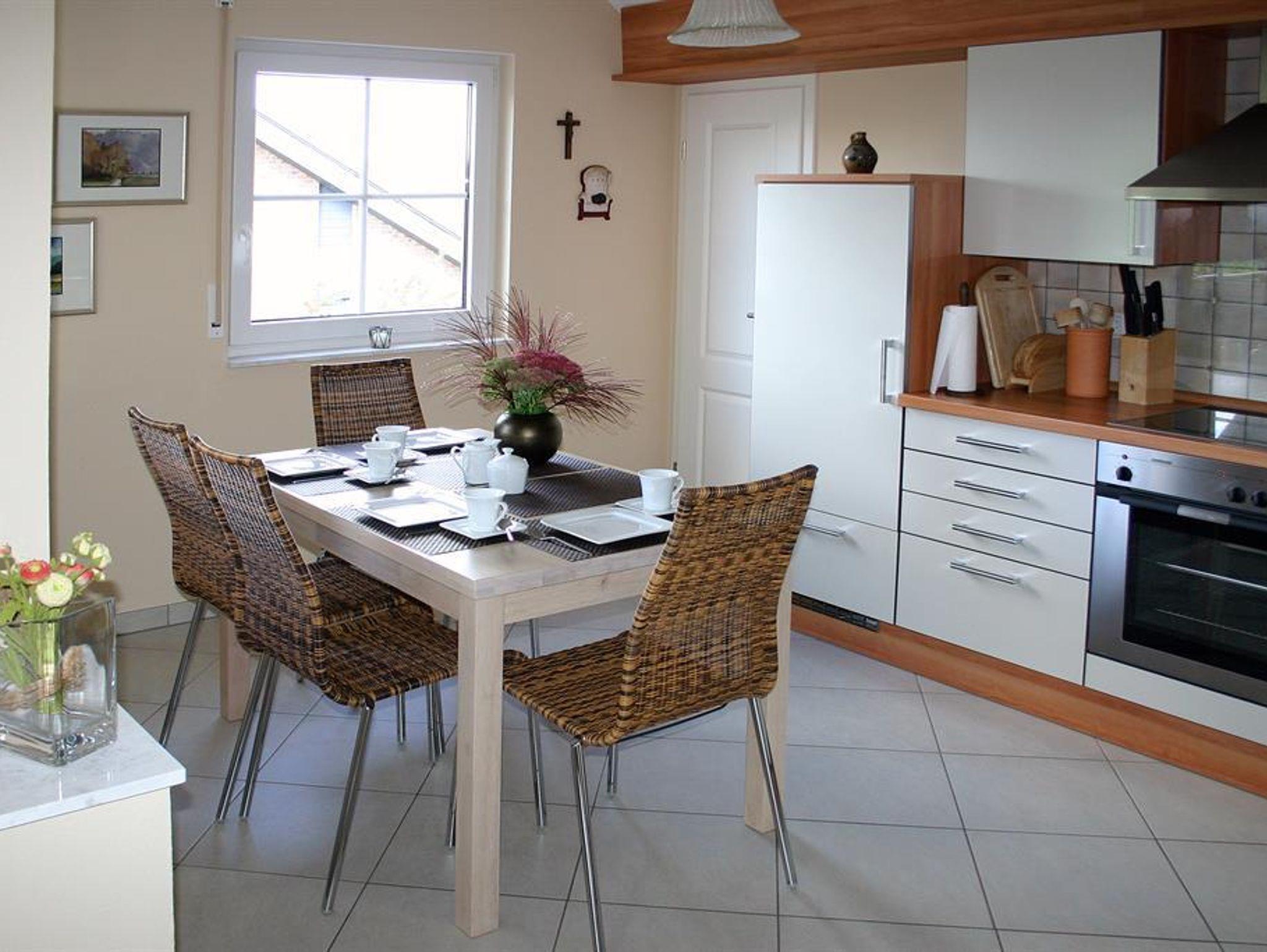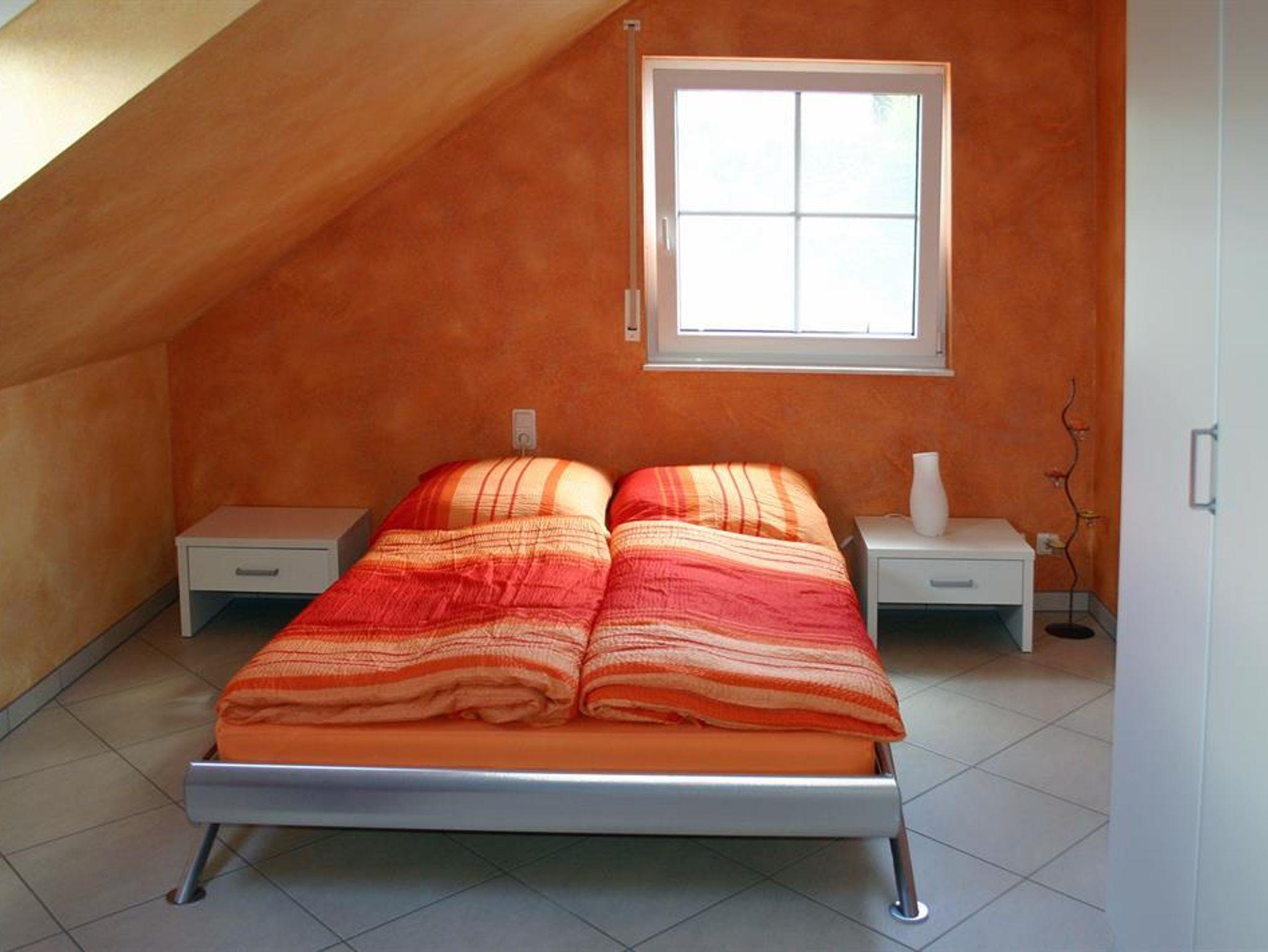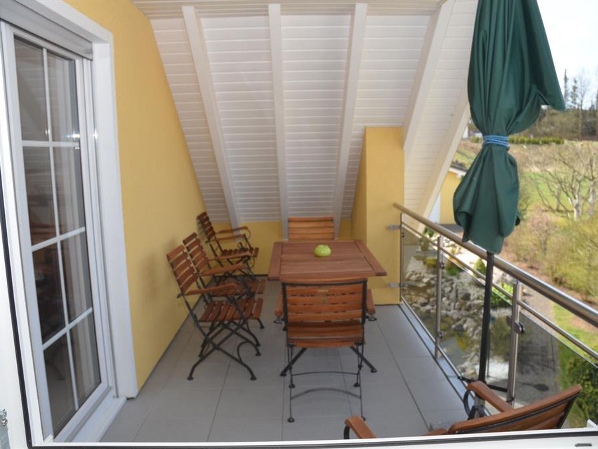 Die Ferienwohnung liegt im ersten Stock unseres Hauses. Es erwartet Sie auf 90 qm eine Komfort-Wohnfühloase, in der bis zu 4 Personen den Alltag hinter sich lassen können. Nach einem langen, aktiven Tag haben Sie im großen Wohnzimmer bei einem Buch, einem Film (Sat-TV mit Flachbildschirm) Gelegenheit herrlich zu entspannen. Wenn Sie gerne kochen, wird dies in unserer komplett ausgestatteten Einbauküche zum Kinderspiel. Vom 5-Platten-Ceranfeld über Backofen, Mikrowelle, Kühlschrank, Geschirrspüler, Gefrierschrank, Kaffeemaschine, Toaster, Eierkocher, Bratpfannen, Kochtöpfe bis hin zum Profimesser ist alles vorhanden. Die Mittags- und Abendsonne genießen Sie auf dem mit Teakholzmöbeln ausgestatteten überdachten Balkon. In unserer Ferienwohnung ist Ihr Haustier ebenfalls herzlich willkommen, bitte melden Sie Ihren tierischen Begleiter per Telefon an, Tel. 06591/5268.