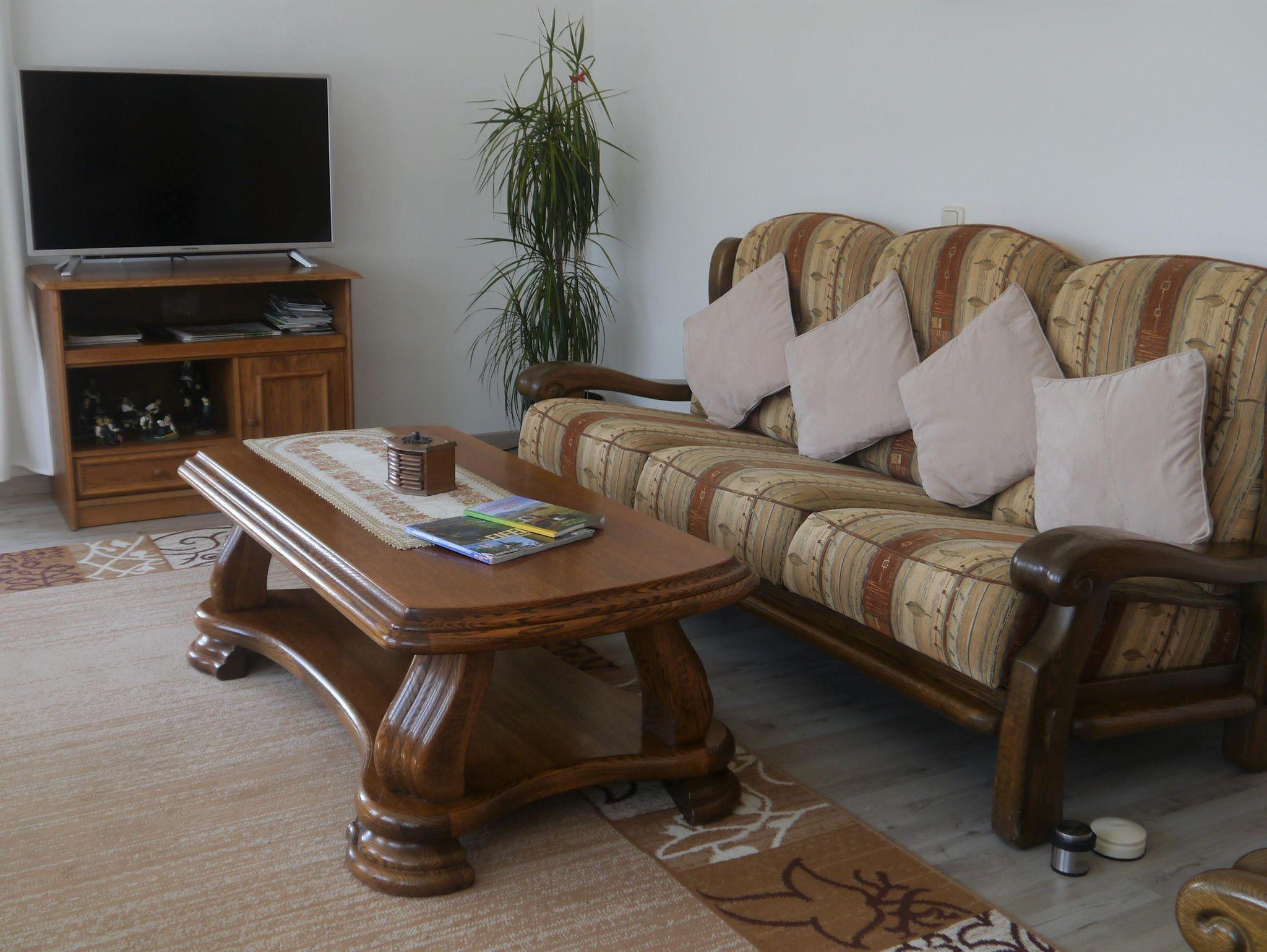 Die große, moderne Einbauküche mit Esstisch lädt ein zum gemeinsamen Kochspass. Im Wohnzimmer können Sie mit einem fantastischen Panoramablick auf Gerolstein herrlich entspannen, ein Flachbildschirm mit SAT-Anschluss garantiert gewohnten Fernsehgenuss. Auf Wunsch halten wir darüber hinaus eine Auswahl an spannender Lektüre und Gesellschaftsspielen für Sie bereit.