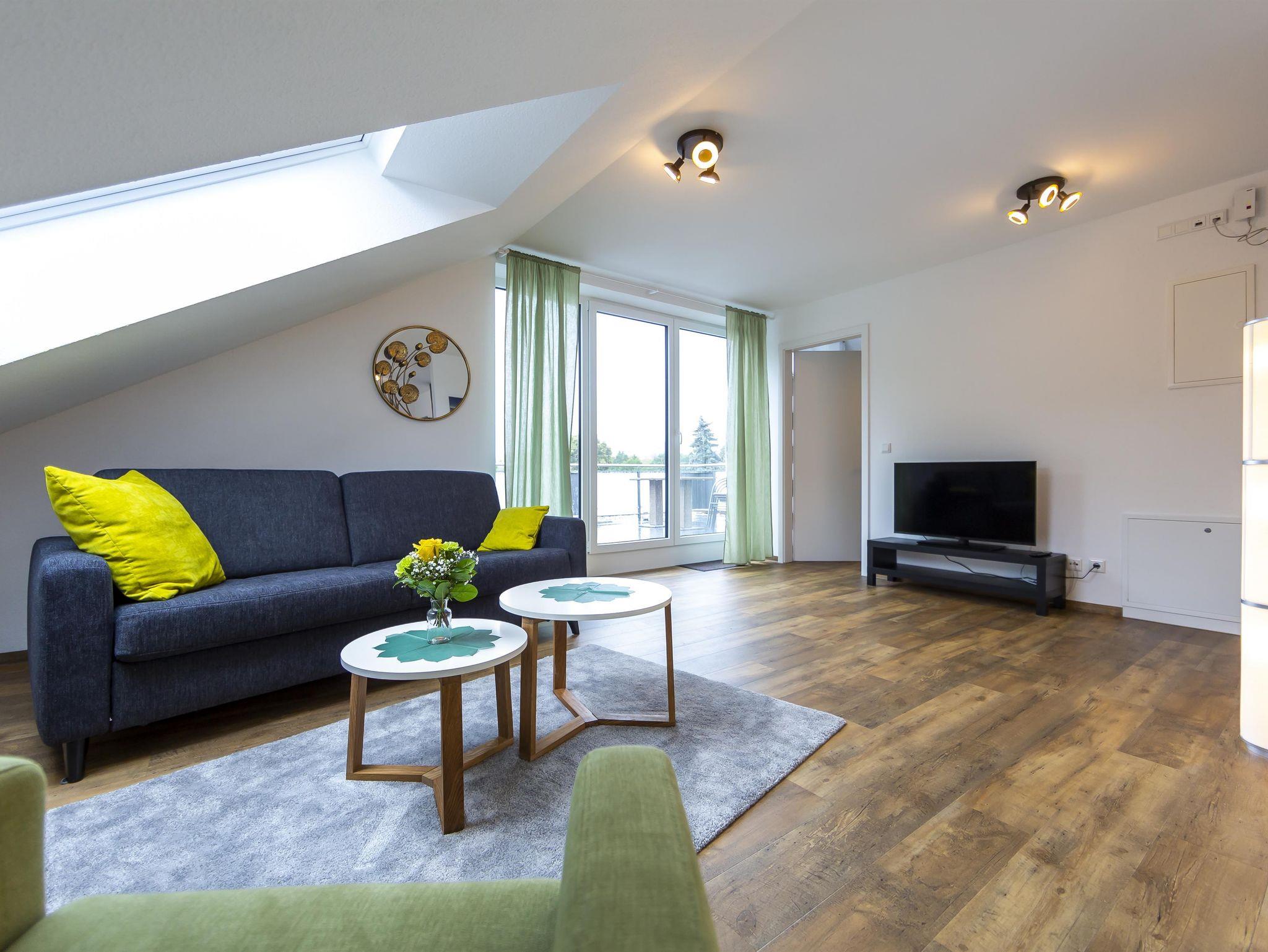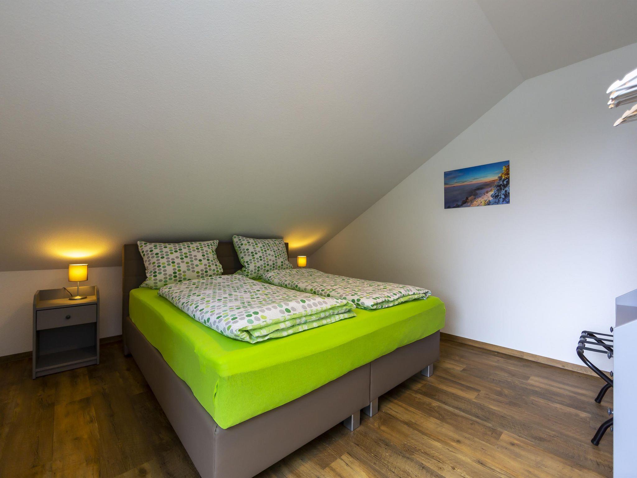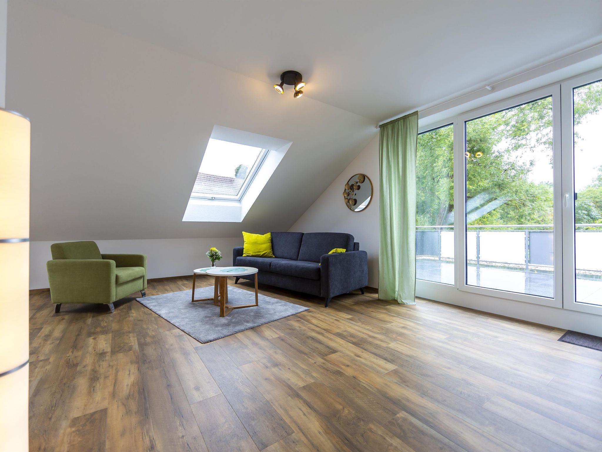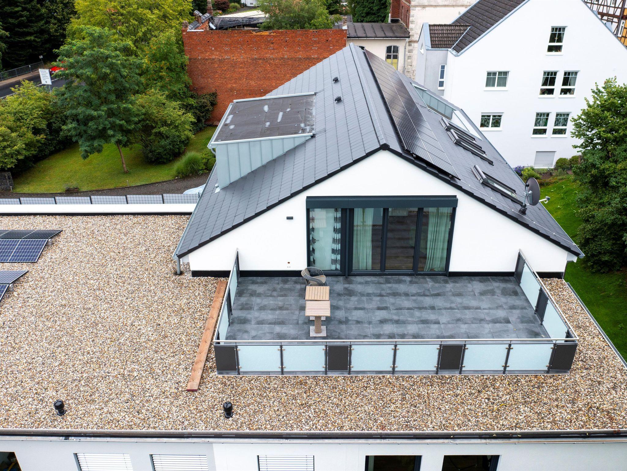Willkommen in der geräumigen, sonnendurchfluteten 50 m² Unterkunft mit großer Dachterrasse und Blick auf die Rhön. Gemütlich mit Dachschrägen, ausgestattet mit 1 x Boxspringbett, komfortablem Schlafsofa. Küche, Essbereich, Wohnzimmer mit 43-Zoll TV. Badezimmer, Herd, Spülmaschine, Kaffeemaschine, Wasserkocher, Toaster, Backofen und Geschirr für 6 Personen vorrhanden. Aufzug für Bequemlichkeit.
