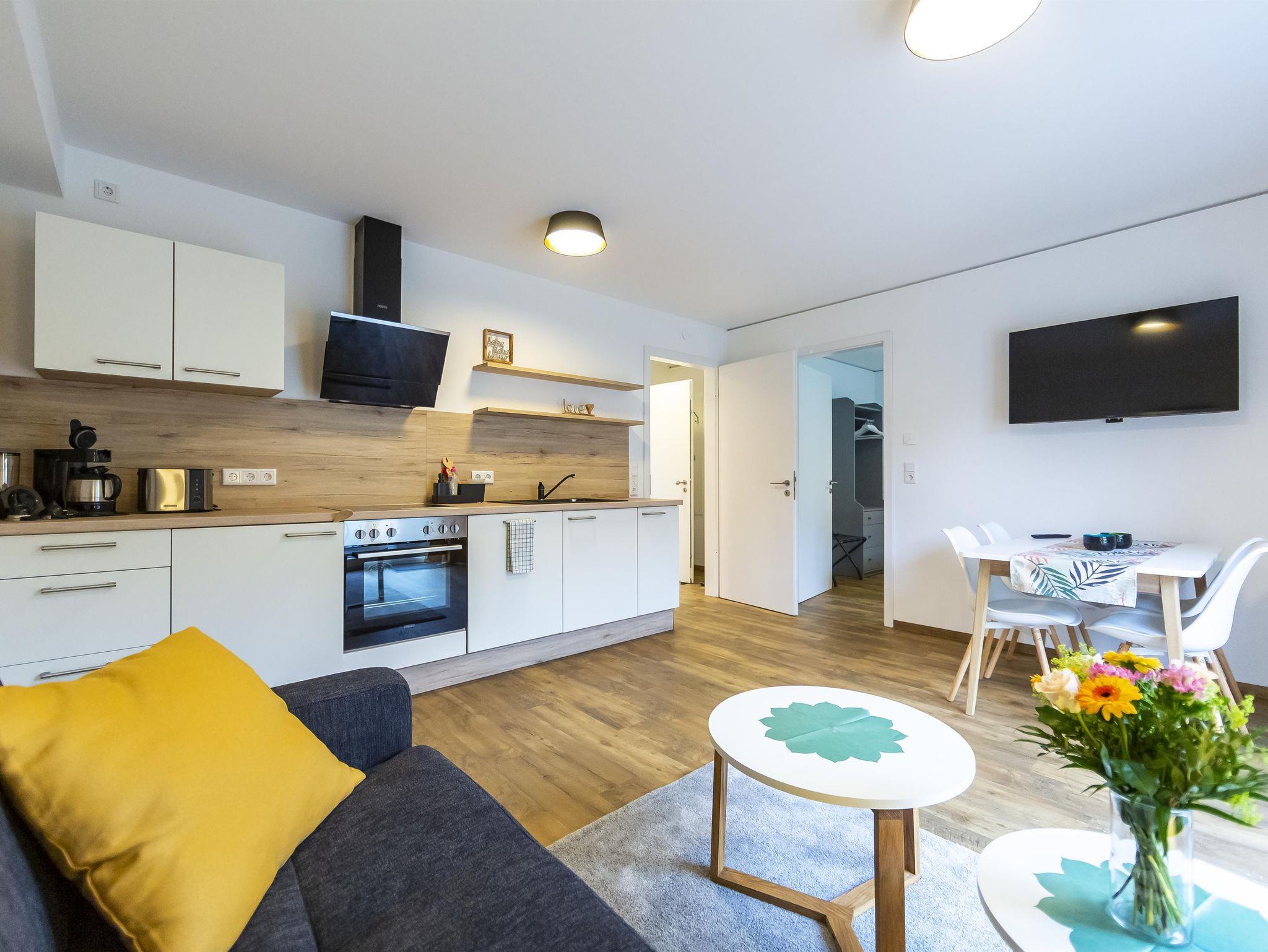 Willkommen in der gemütlichen 41 m² Unterkunft! Lichtdurchflutet, mit Blick auf Gärten und altes Backhaus. Einladendes Boxspringbett (2 Personen) und komfortables Schlafsofa (2 Personen). Badezimmer, gut ausgestattete Küche, Essbereich, Wohnzimmer mit 43-Zoll TV. Inklusive Herd, Spülmaschine, Kaffeemaschine (Pads & Filter), Wasserkocher, Toaster, Backofen, Geschirr für 6 Personen. Aufzug für Bequemlichkeit.