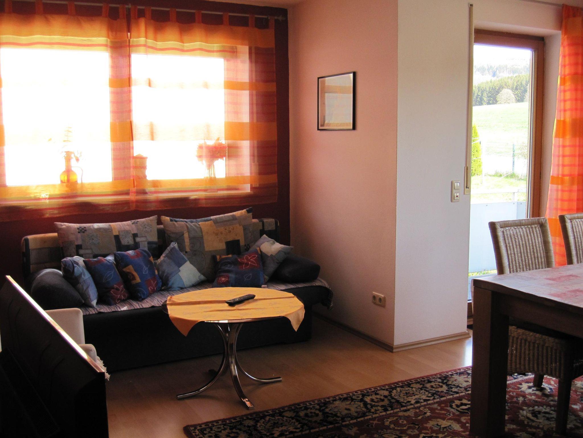 Die Ferienwohnung mit Blick zum Simmelsberg ist 70qm groß und bietet Platz für bis zu 2 Personen. Die Wohnung verfügt über ein Sofa, einen Sitzbereich, einen Flachbild-Sat-TV, eine gut ausgestattete Küche mit einem Essbereich und ein eigenes Bad mit einem Haartrockner. Ein Kühlschrank, ein Backofen, ein Kochfeld, ein Wasserkocher und eine Kaffeemaschine sind ebenfalls vorhanden.