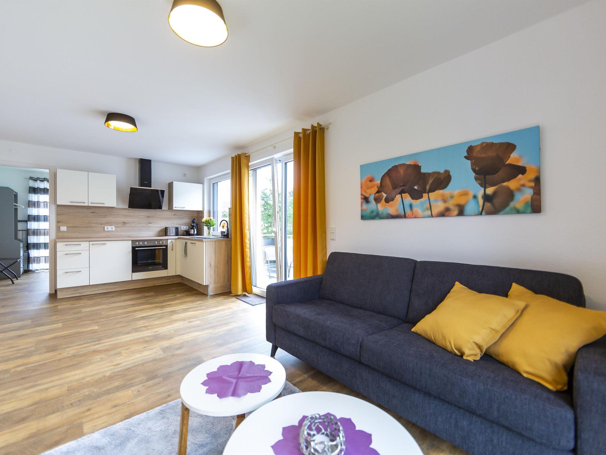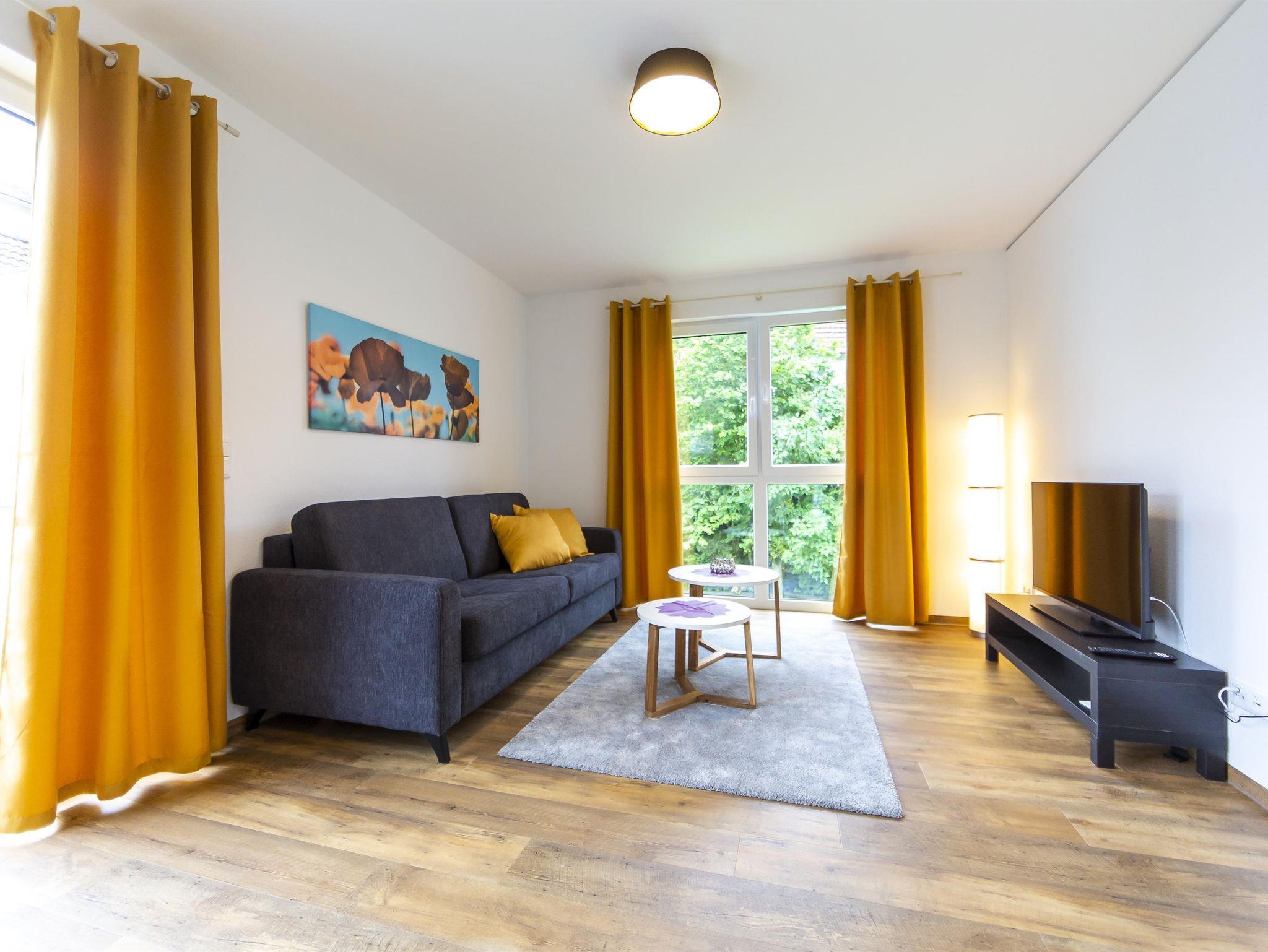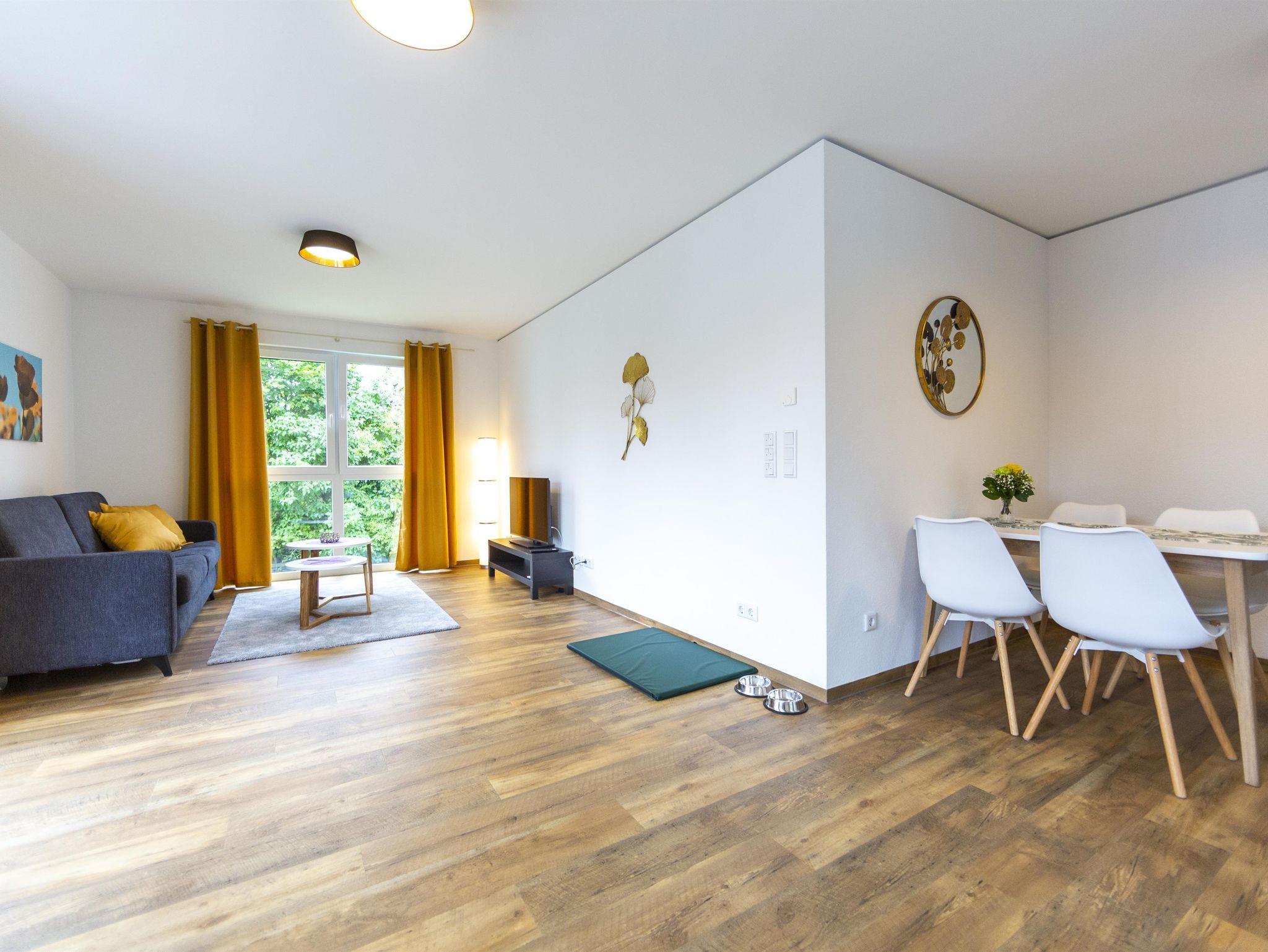 Geräumige 46 m² Unterkunft für 4 Personen, Schlafzimmerblick auf Kirche, Balkonblick auf Gersfeld. Lichtdurchflutet, mit Boxspringbett (2 Personen) und komfortablem Schlafsofa (2 Personen). Gut ausgestattete Küche mit Herd, Spülmaschine, Kaffeemaschine, Wasserkocher, Toaster, Backofen. Badezimmer mit Dusche, Föhn vorhanden. Wohnzimmer mit 43-Zoll TV, elektrische Rollläden. Geschirr für 6 Personen. Aufzug verfügbar.