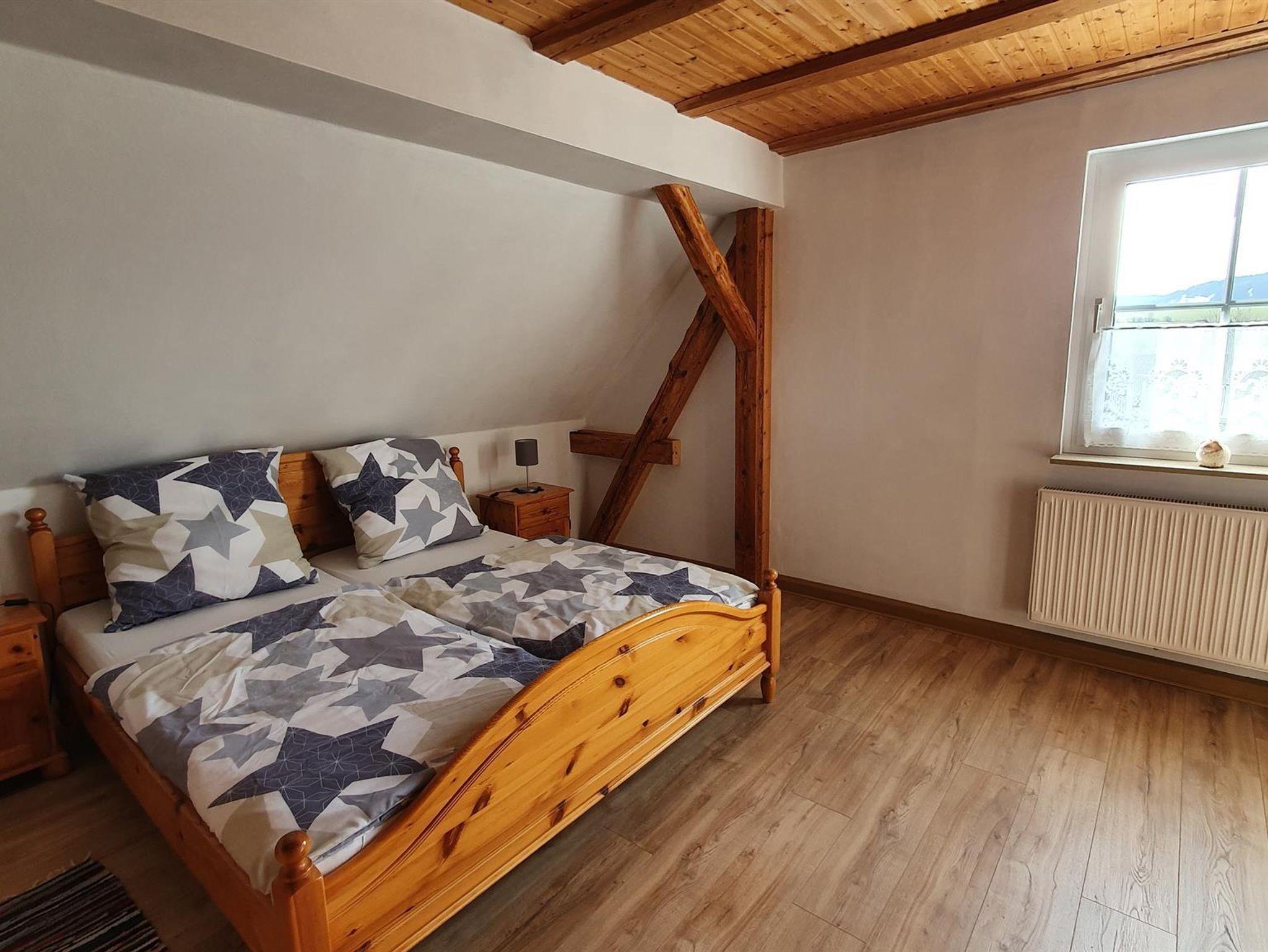• Schlafzimmer mit Doppelbett und einem Kinderbett