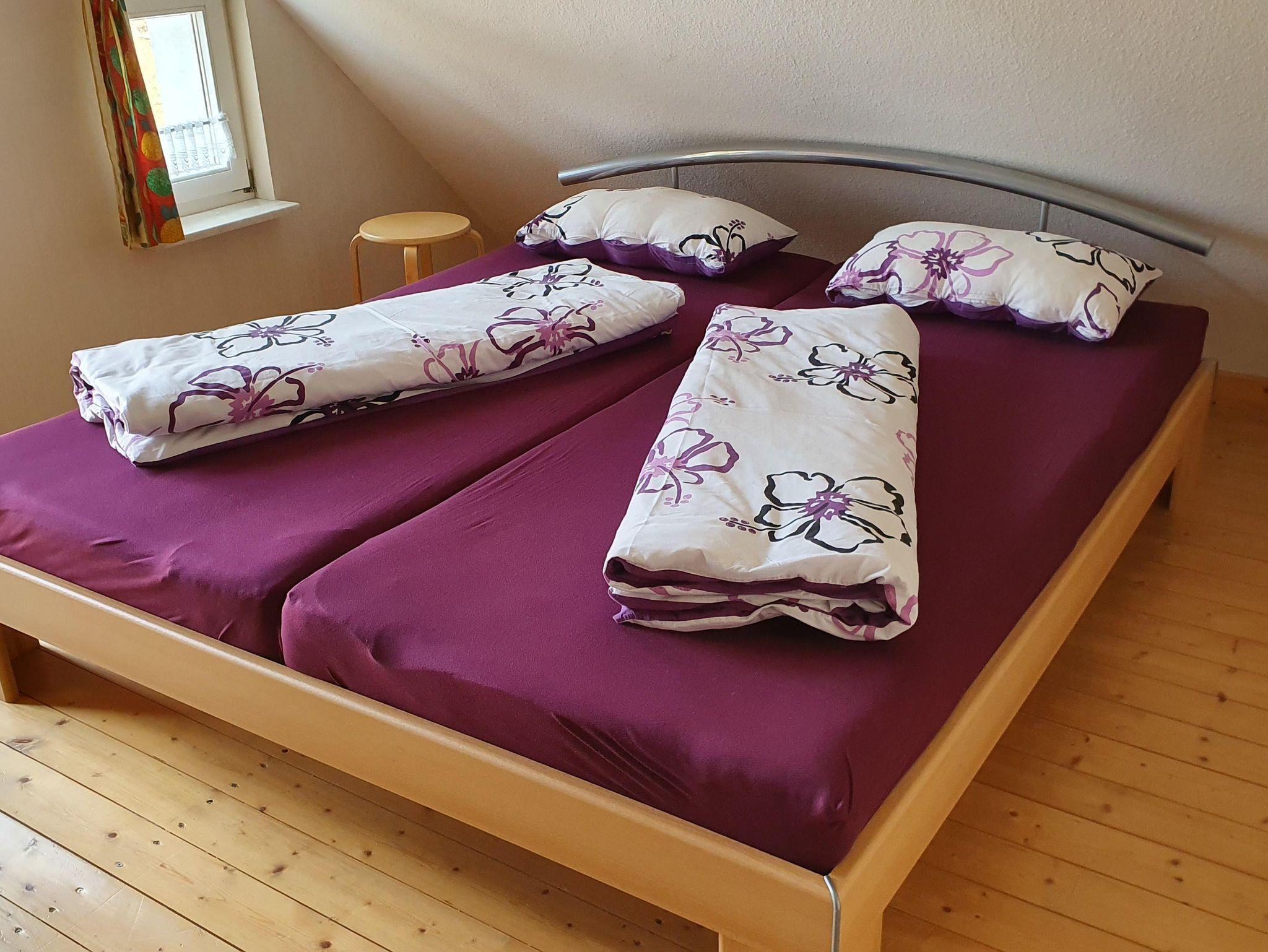 • Zwei Schlafzimmer mit Doppelbett, eines davon im Obergeschoss