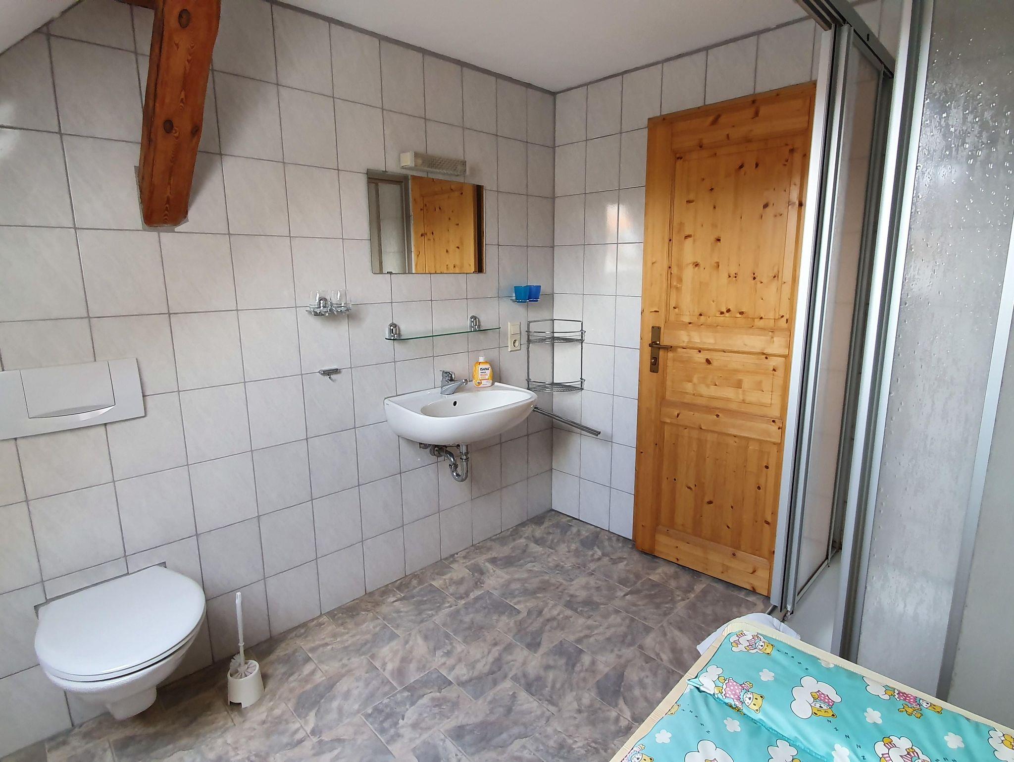 • Badezimmer (Tageslicht) mit Dusche, WC und Wickeltisch