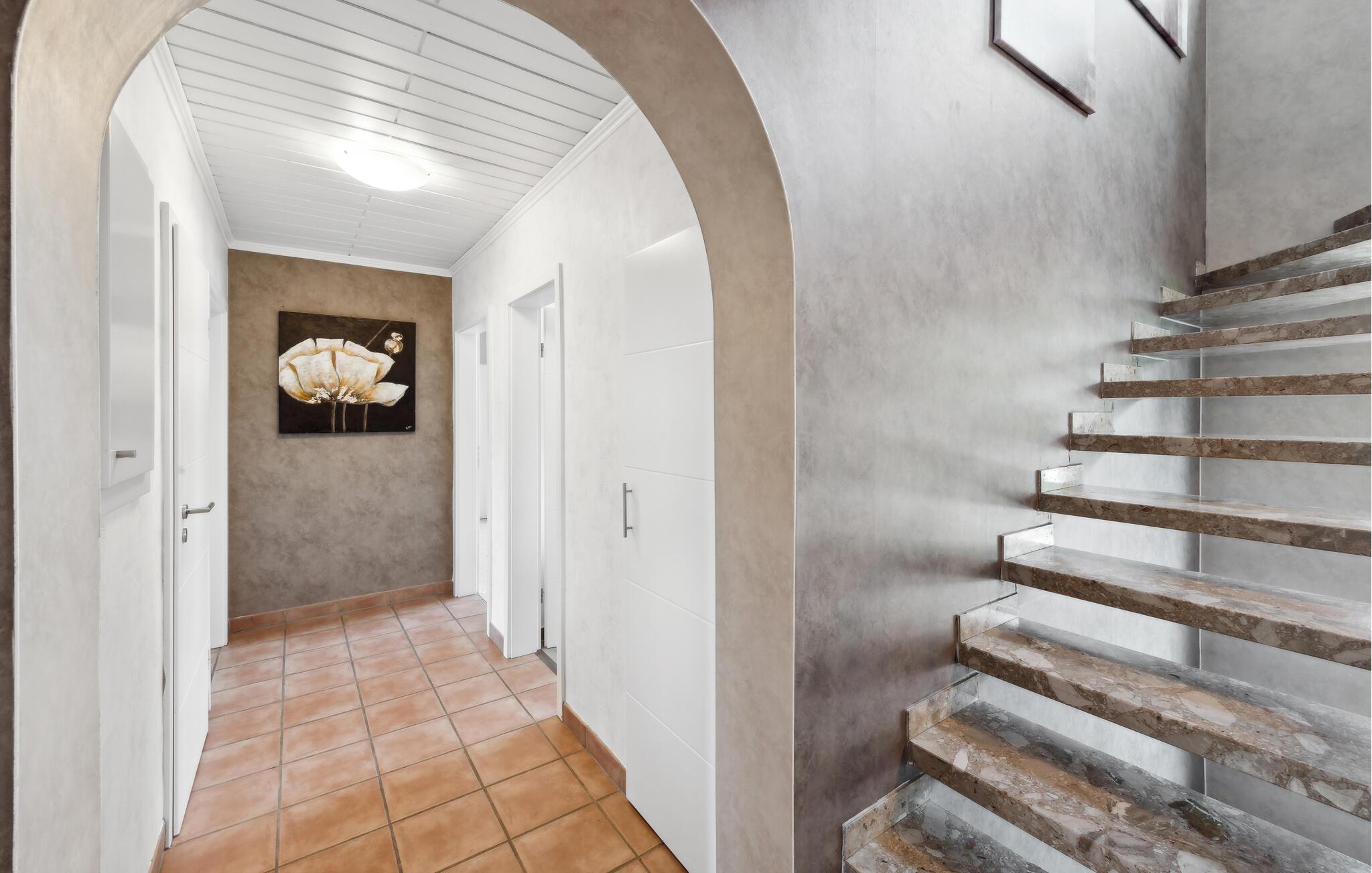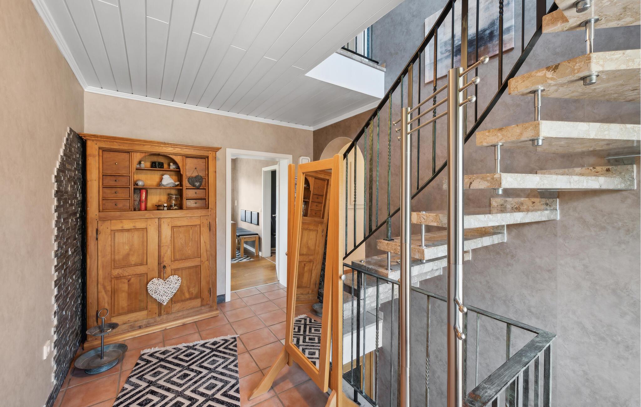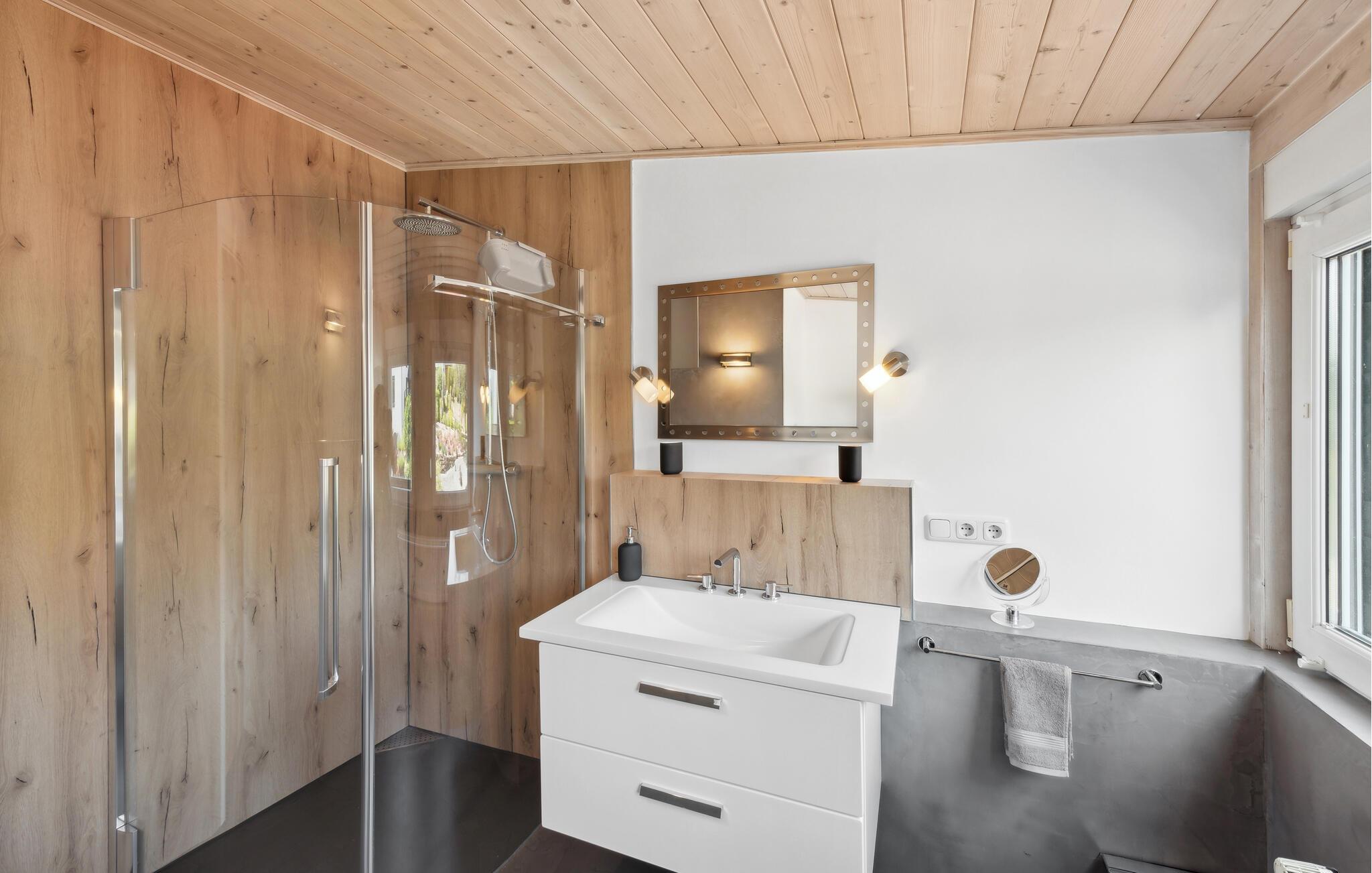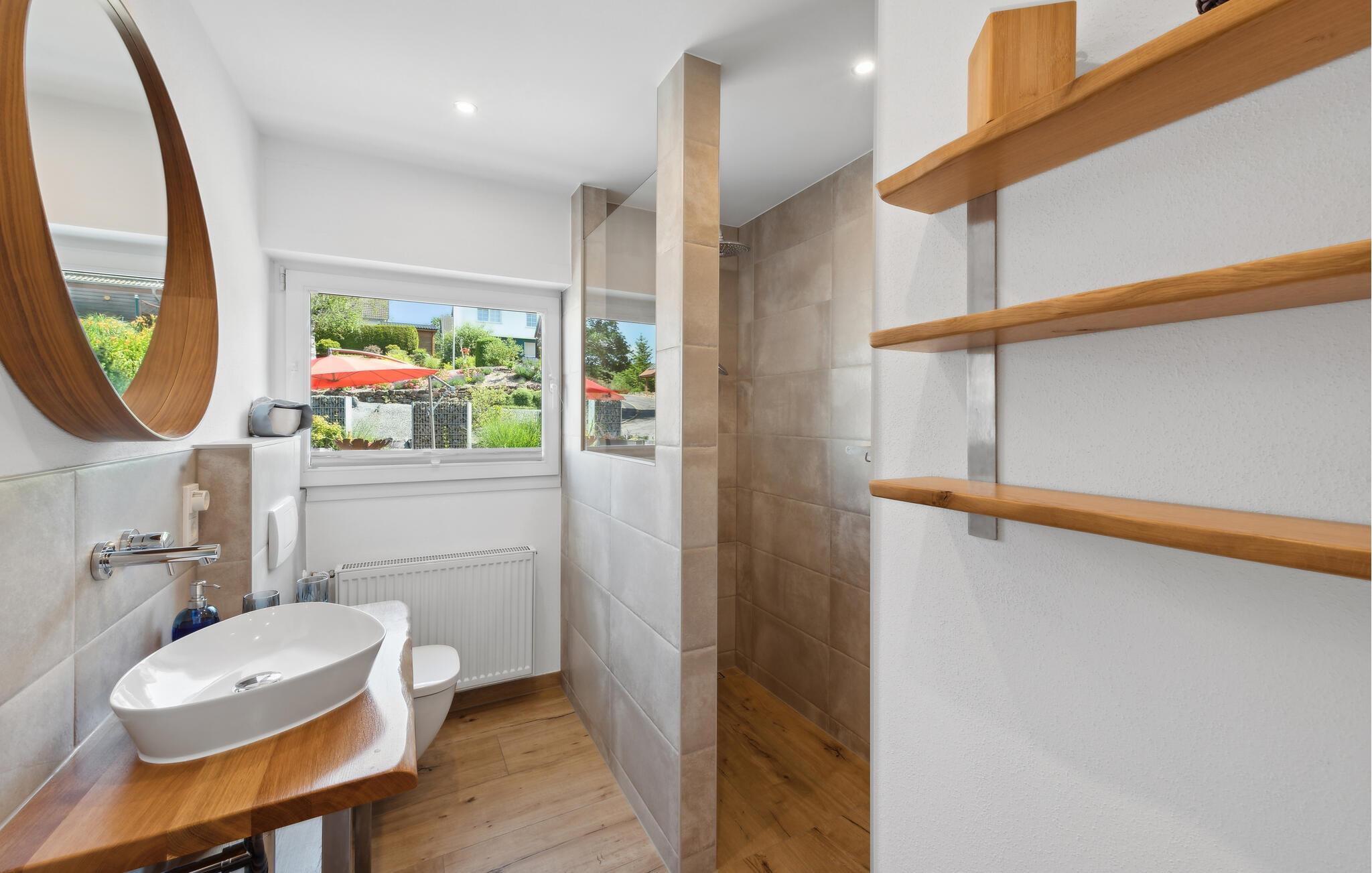 Diese geräumige und komfortable Ferienwohnung in Gillenfeld lädt Sie zu einem erholsamen Urlaub inmitten der idyllischen Eifel ein. Die helle Einrichtung, kombiniert mit modernem Design, schafft eine behagliche Atmosphäre, in der Sie sich sofort wohlfühlen werden. Genießen Sie das große Platzangebot und finden Ihren Lieblingsplatz, egal ob beim Filmsehen im Wohnzimmer, Spielen am Esstisch oder beim Aufwachen im Bett mit Panoramablick auf die Landschaft.