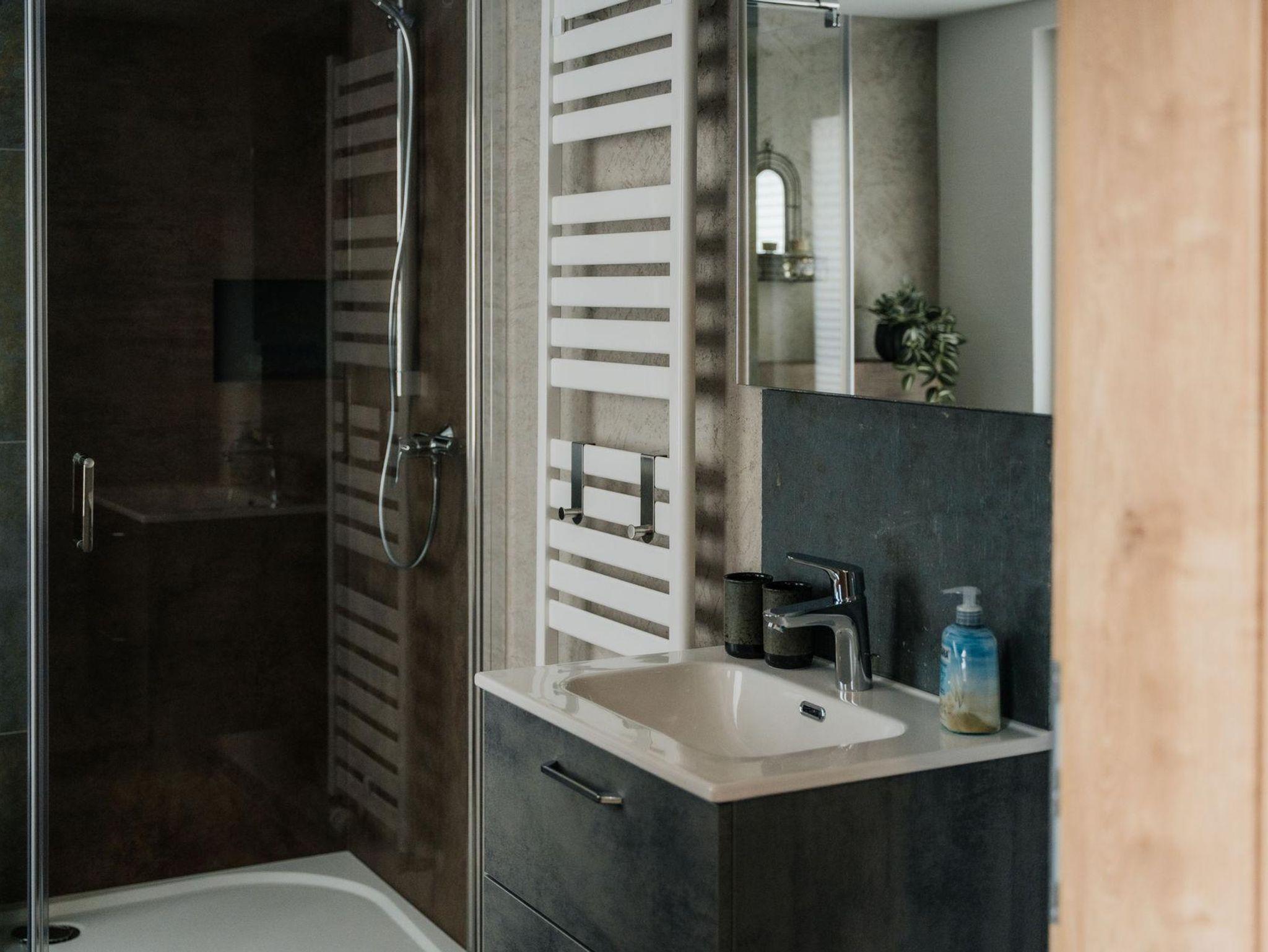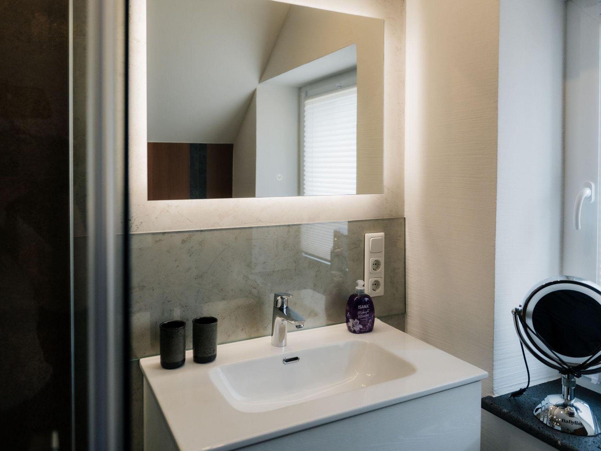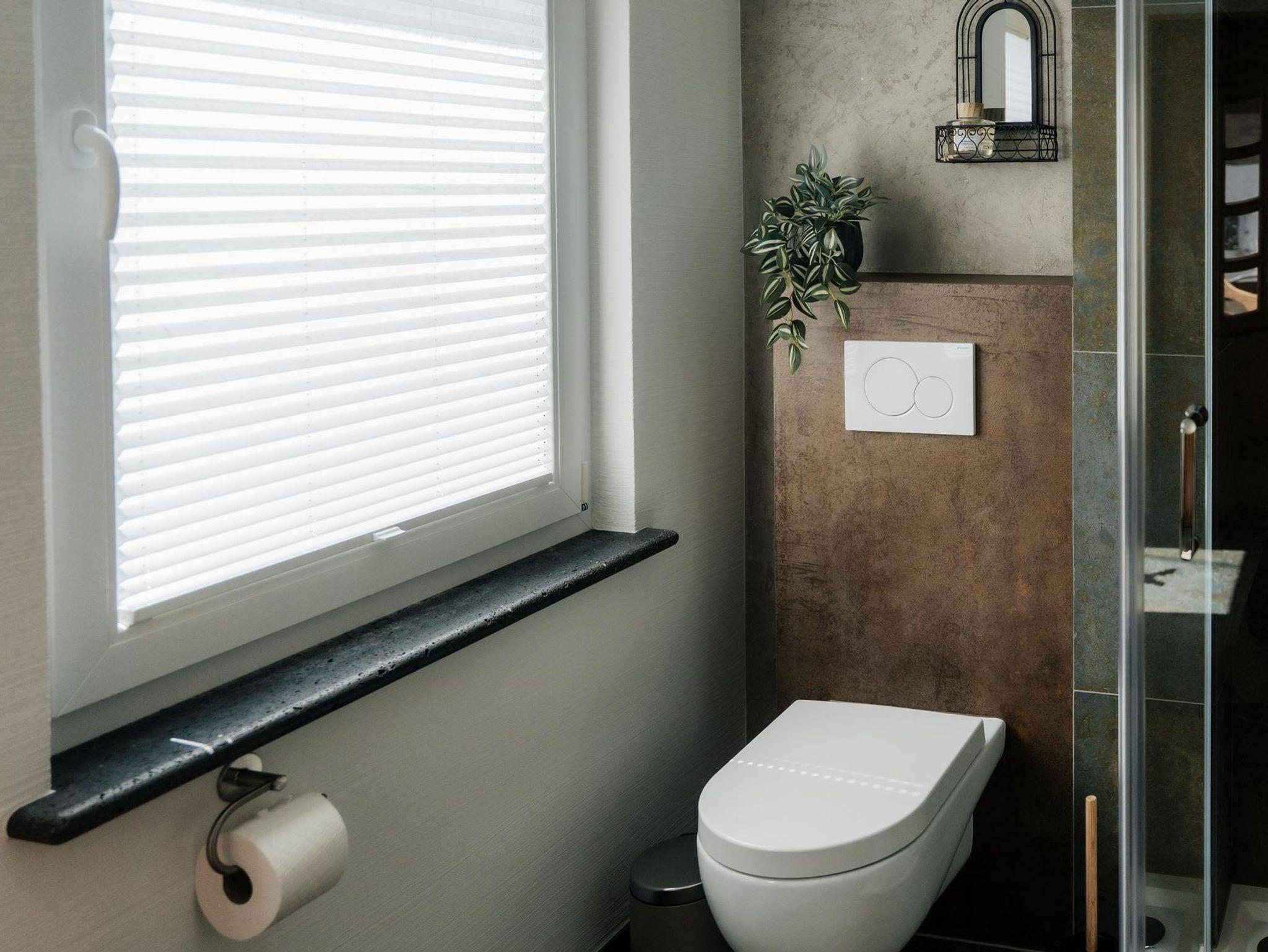 Das komplette Erdgeschoss, inklusive der Bäder (Erdgeschoss und 1.Etage) wurde mit indischen Schiefernaturfliesen hochwertig verlegt. Dies sorgt für eine besonders natürliche und edle Atmosphäre.