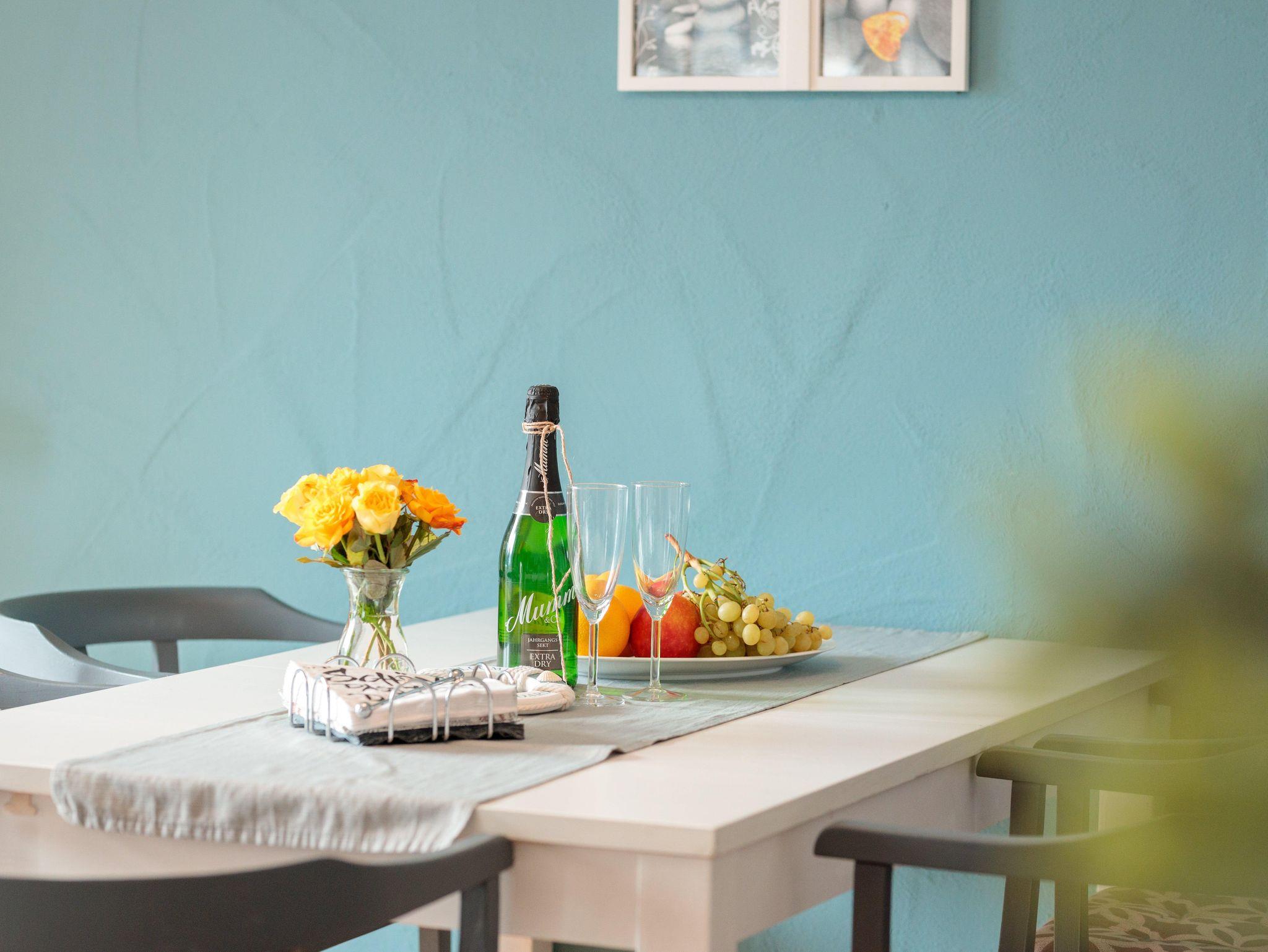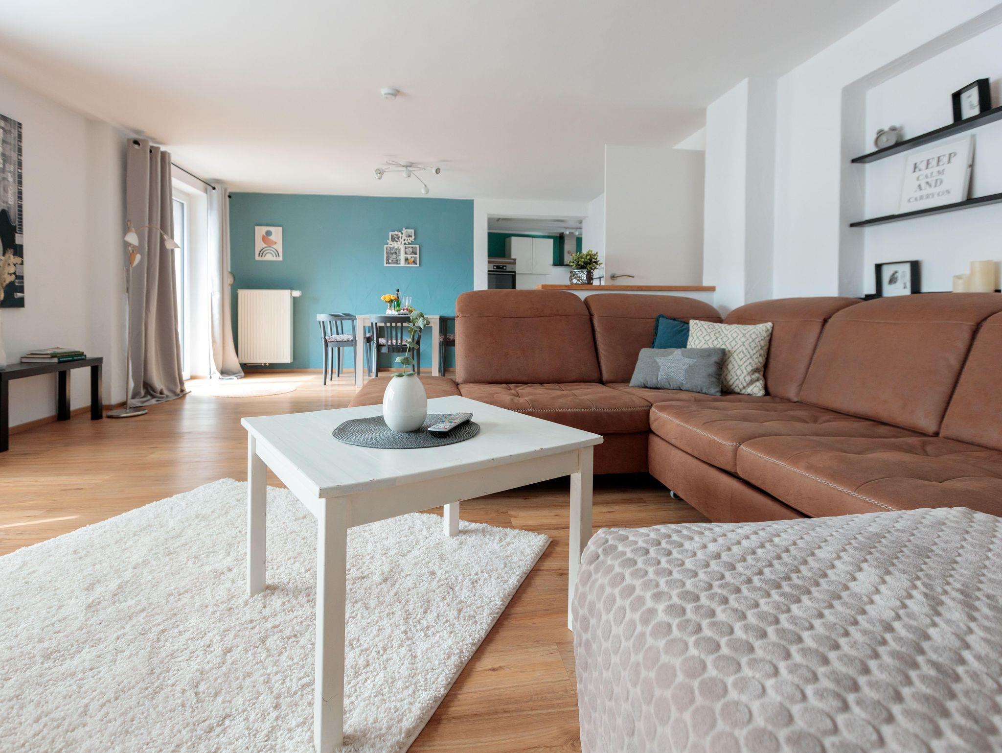 Die Ferienwohnung besteht aus 2 Schlafzimmern, 2 Badezimmern, einem offenen gemütlichen Wohnbereich und einer voll ausgestatteten Küche. Die Wohnung ist stilvoll eingerichtet und vermittelt eine behagliche Atmosphäre, die zum Entspannen einlädt.