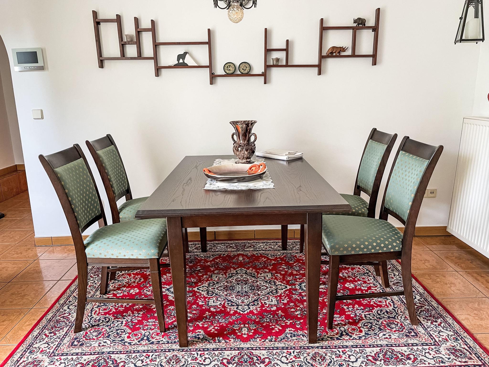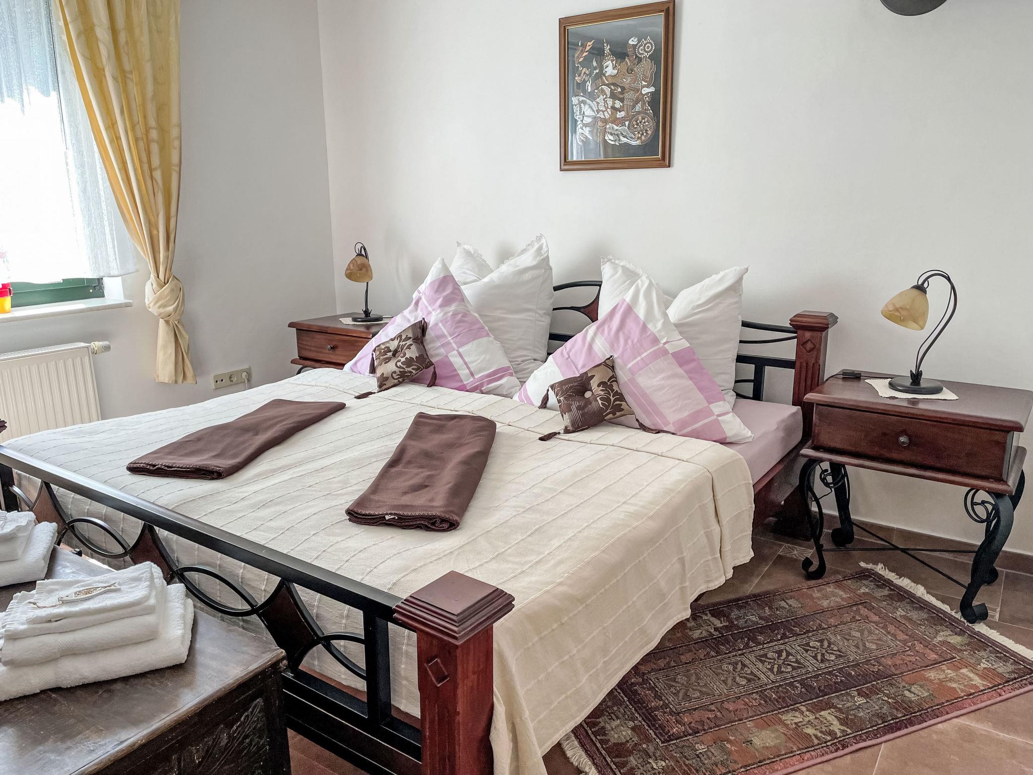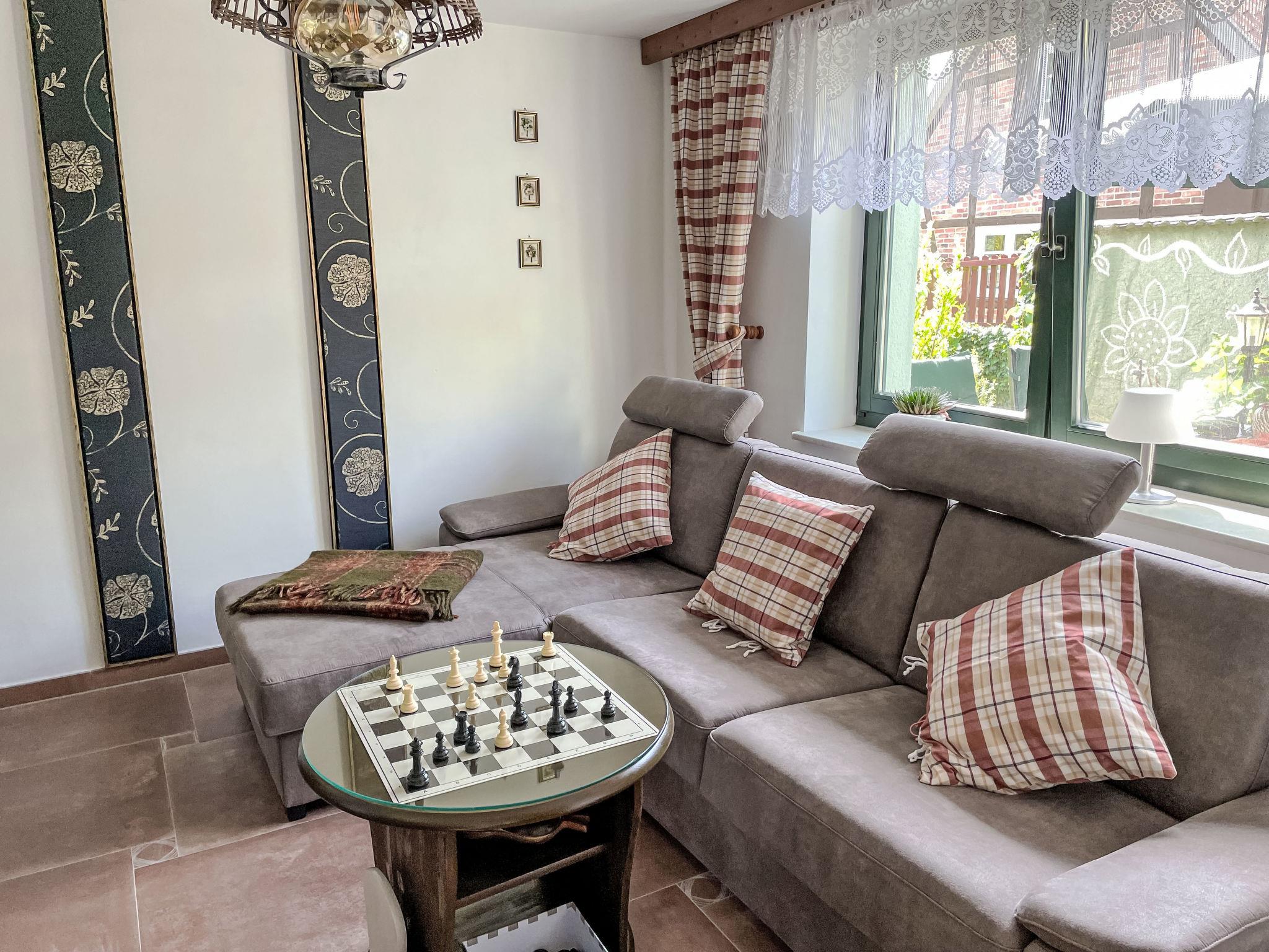 "Backstube", 3-Zimmer-Wohnung 62 m2, im Erdgeschoss. Komfortabel und stilvoll eingerichtet: Wohnzimmer mit 1 Doppeldiwanbett (150 cm, Länge 200 cm), Schwedenofen und Sat-TV (Flachbildschirm), Radio. 1 Zimmer mit 1 Doppelbett. Esszimmer mit Esstisch. Offene Küche (Geschirrspüler, 4 Glaskeramikplatten, Toaster, Wasserkocher, Mikrowelle, elektrische Kaffeemaschine). Dusche, sep. WC. Ölheizung. Terrasse. Terrassenmöbel. Zur Verfügung: Internet (Wireless LAN, gratis). Parkplatz (1 Auto). Bitte beachten: Nichtraucher-Unterkunft. Rauchmelder, Feuerlöscher.
