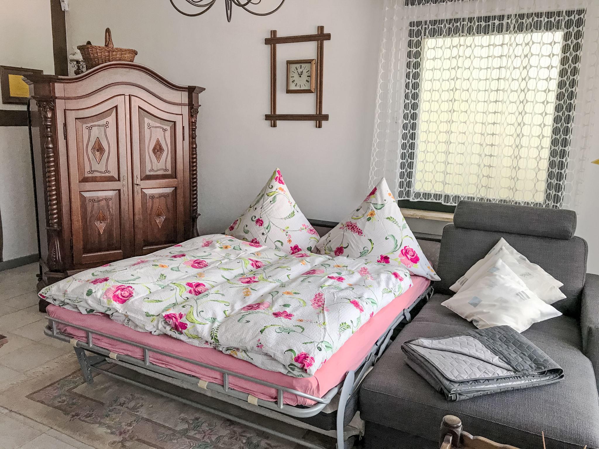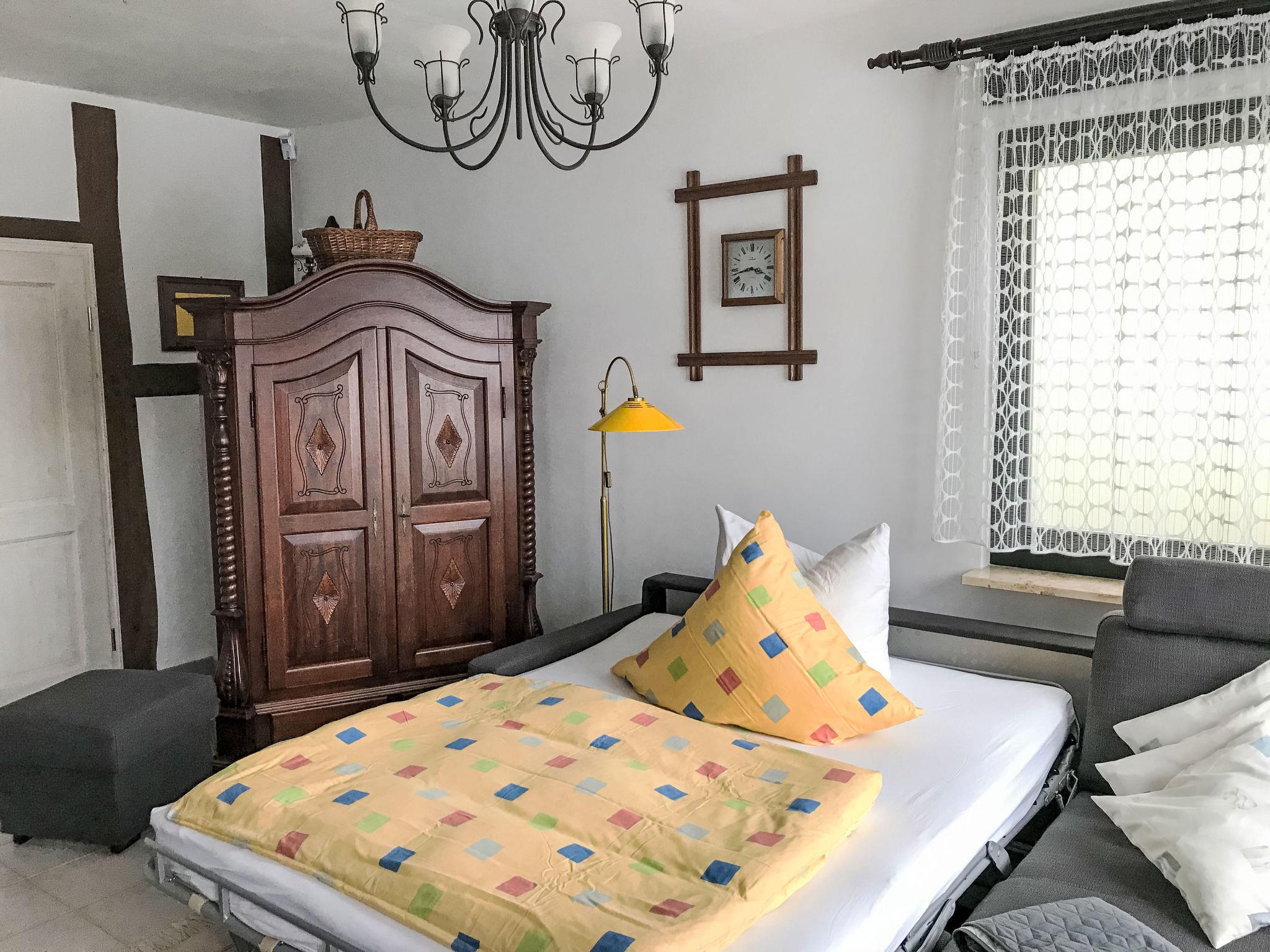 "Kaufmann", 1-Zimmer-Wohnung 45 m2, im Erdgeschoss. Modern und gemütlich eingerichtet: Wohn-/Schlafzimmer mit 1 Doppeldiwanbett. Offene Küche (Backofen, 4 Glaskeramikplatten, Toaster, Wasserkocher, elektrische Kaffeemaschine) mit Esstisch. Ausgang zur Terrasse. Dusche, sep. WC. Terrasse. Terrassenmöbel. Zur Verfügung: Internet (WLAN, gratis). Bitte beachten: Wohnung auf Parkplatzseite. Nichtraucher-Unterkunft. Maximal 1 Haustier/Hund erlaubt. Eigener Eingang, Rauchmelder, Feuerlöscher. Es gibt eine Parkmöglichkeit auf dem öffentlichen Parkplatz (ohne Gebühr) in 50m. Be-/Entladen an der Wohnung möglich.