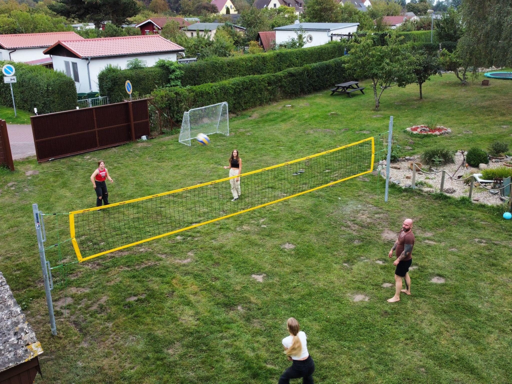 Auf dem Grundstück des Rügenferienhauses stehen Ihnen vielfältige Freizeitmöglichkeiten zur Verfügung. Unter anderem haben wir ein Volleyballnetz und ein Fußballtor. Außerdem können Sie Tischtennis spielen oder einfach die Seele baumeln lassen auf unserer großen Terrasse oder auf einer der Sonnenliegen. Trampolin und Schaukel fehlen ebenfalls nicht, selbst für die Kleinsten ist ein Sandkasten vorhanden.