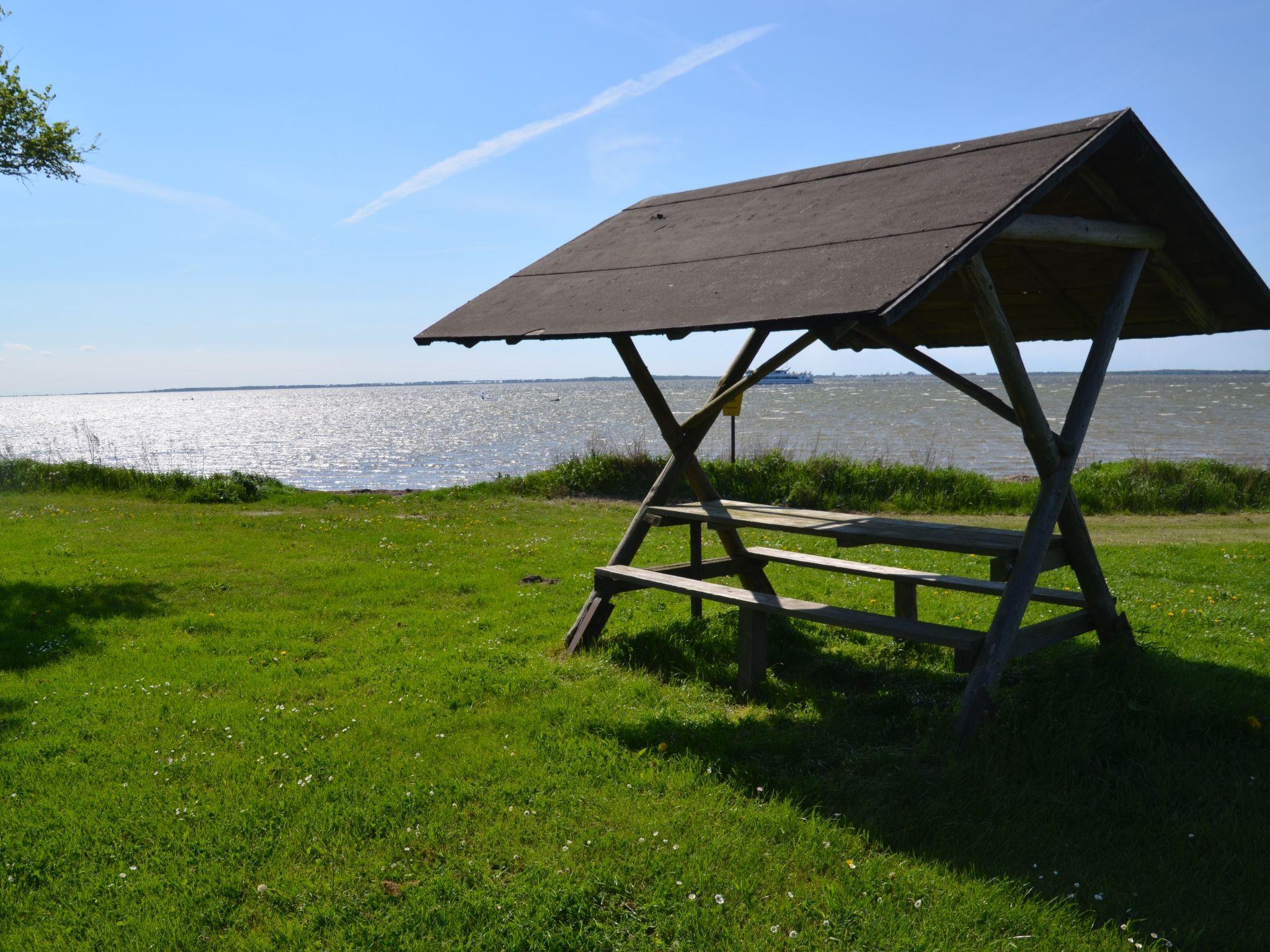 Im Außenbereich wartet eine Terrasse direkt hinter dem Haus auf Sie, die mit Grill- und Sitzmöglichkeiten ausgestattet ist – perfekt, um die milden Abende im Freien zu genießen. Ebenfalls zur Verfügung steht eine Tisch- und Bankkombination vor dem Haus, wo Sie bei einem Kaffee das geschäftige Treiben im nahen Hafen beobachten können. Der Garten zur gemeinschaftlichen Nutzung rundet das Angebot ab und bietet Raum für entspannte Stunden unter freiem Himmel.