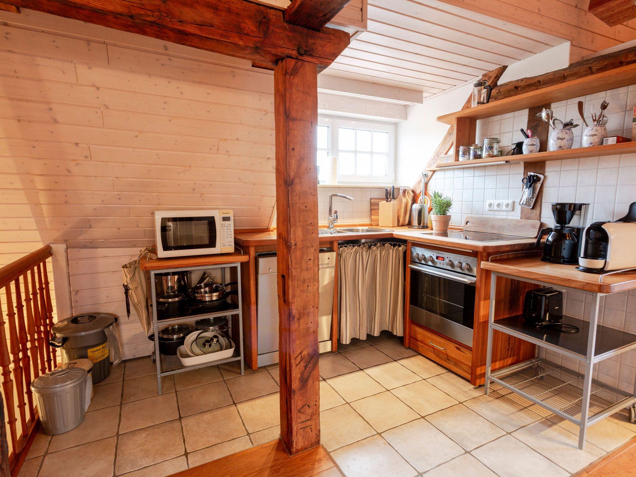 Die Ferienwohnungen im Haus Klein Kapelle befinden sich in Gingst auf der Insel Rügen und sind über einen eigenen separaten Eingang im Erdgeschoss erreichbar. Die Ferienwohnung 2 erstreckt sich über 2 Etagen und ist für bis zu 6 Personen geeignet. Sie bietet ein offenes Raumkonzept mit 3 Schlafnischen, großem Wohnbereich und voll ausgestatteter Küche. Die beiden Badezimmer sind mit Dusche und Badewanne ausgestattet. Das Haus Klein Kapelle ist über 200 Jahre alt und hat aufgrund der Balkenstruktur an wenigen Stellen im Dachgeschoss eine Stehhöhe von 1,80m. Die Ferienwohnung 3 im Erdgeschoss des Hauses ist für bis zu 4 Personen und ein Baby ausgelegt. Neben einem gemütlichen Wohnzimmer mit Kamin, einem separaten Schlafzimmer und einer voll ausgestatteten Küche steht ein Badezimmer mit Badewanne, WC und Waschmaschine zur Verfügung. Als Highlight kann hier die separate Sauna hinzugebucht werden.