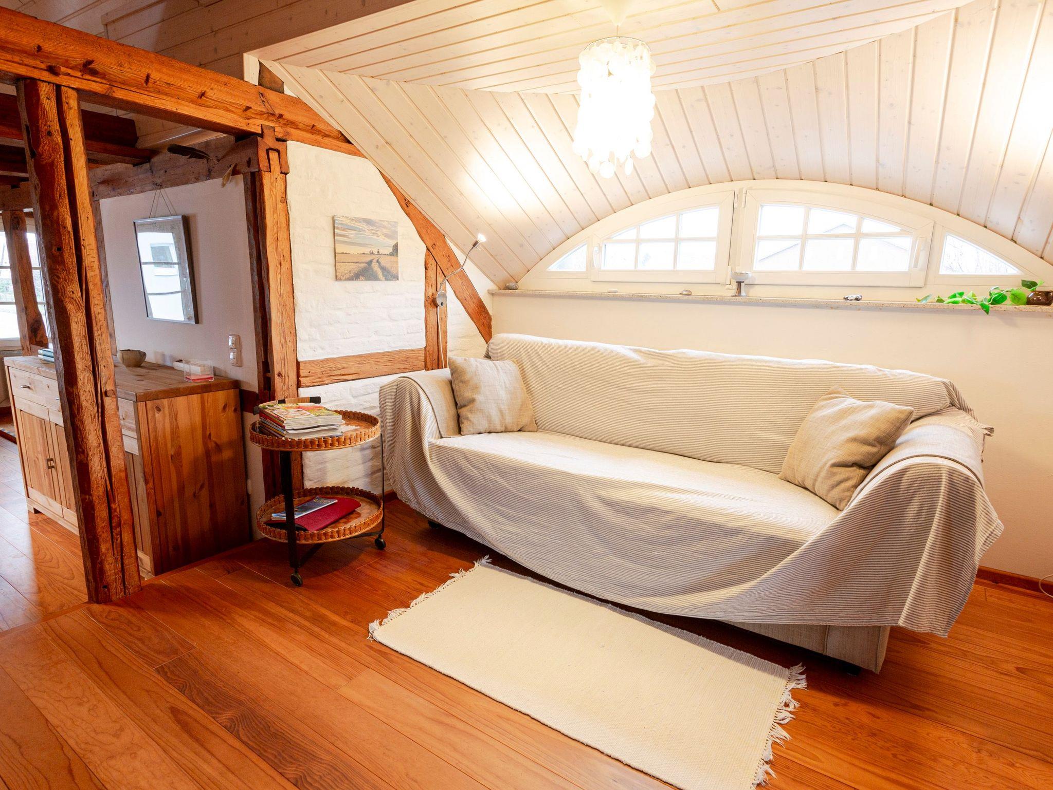 Gemütliche Ferienwohnung 2 im historischen Haus Klein Kapelle in Gingst auf Rügen, ideal für Familien und Naturfreunde.