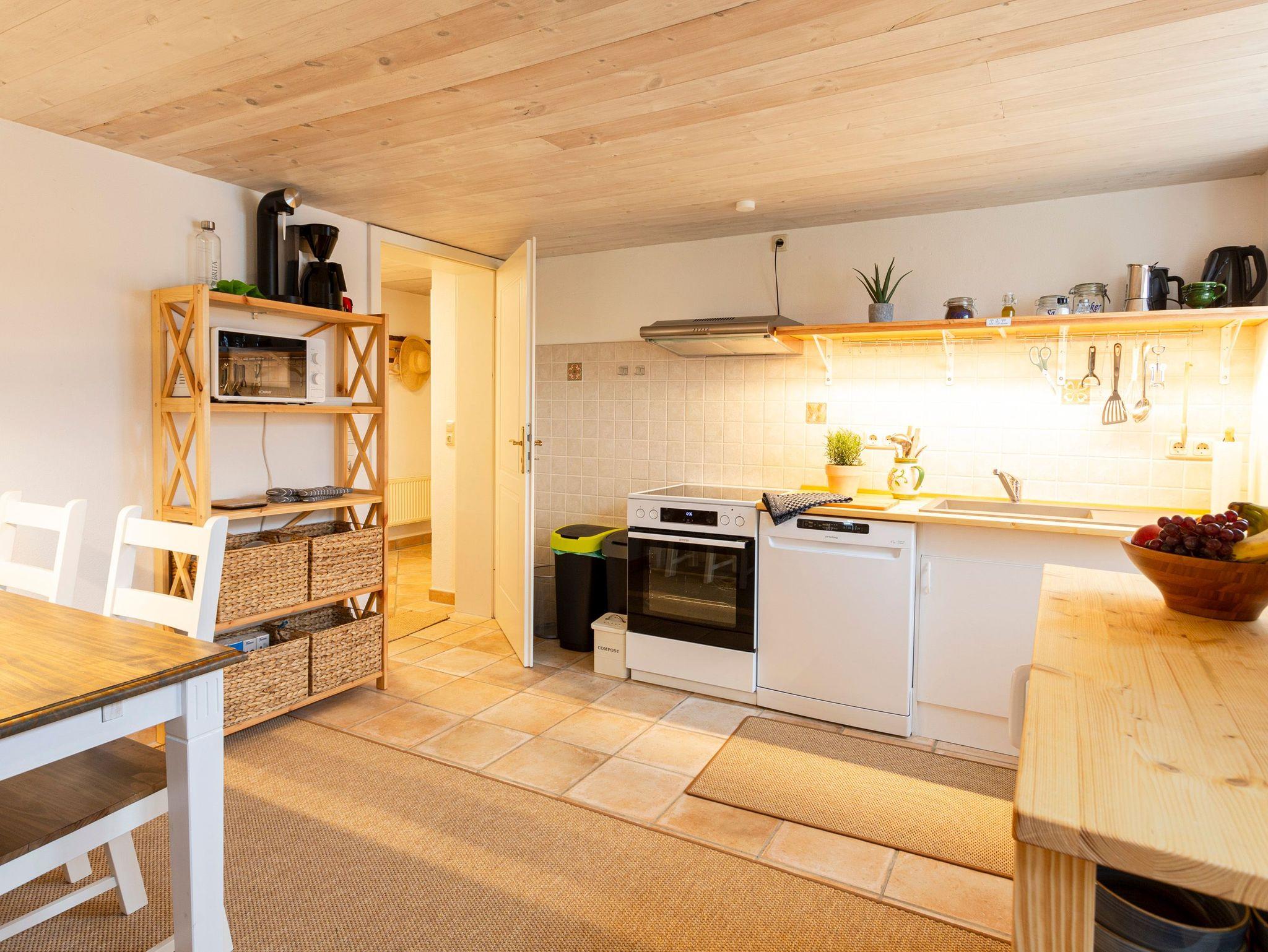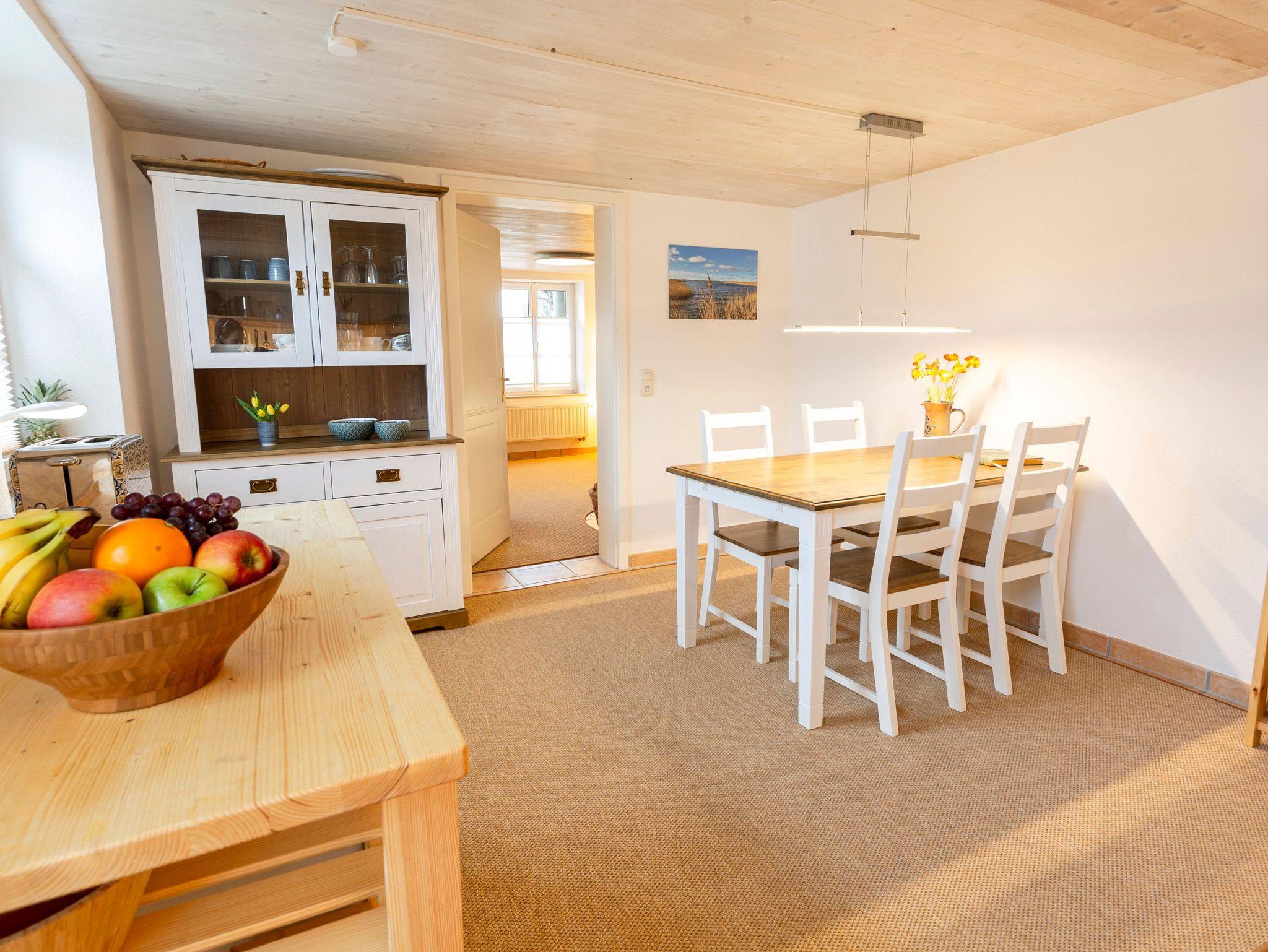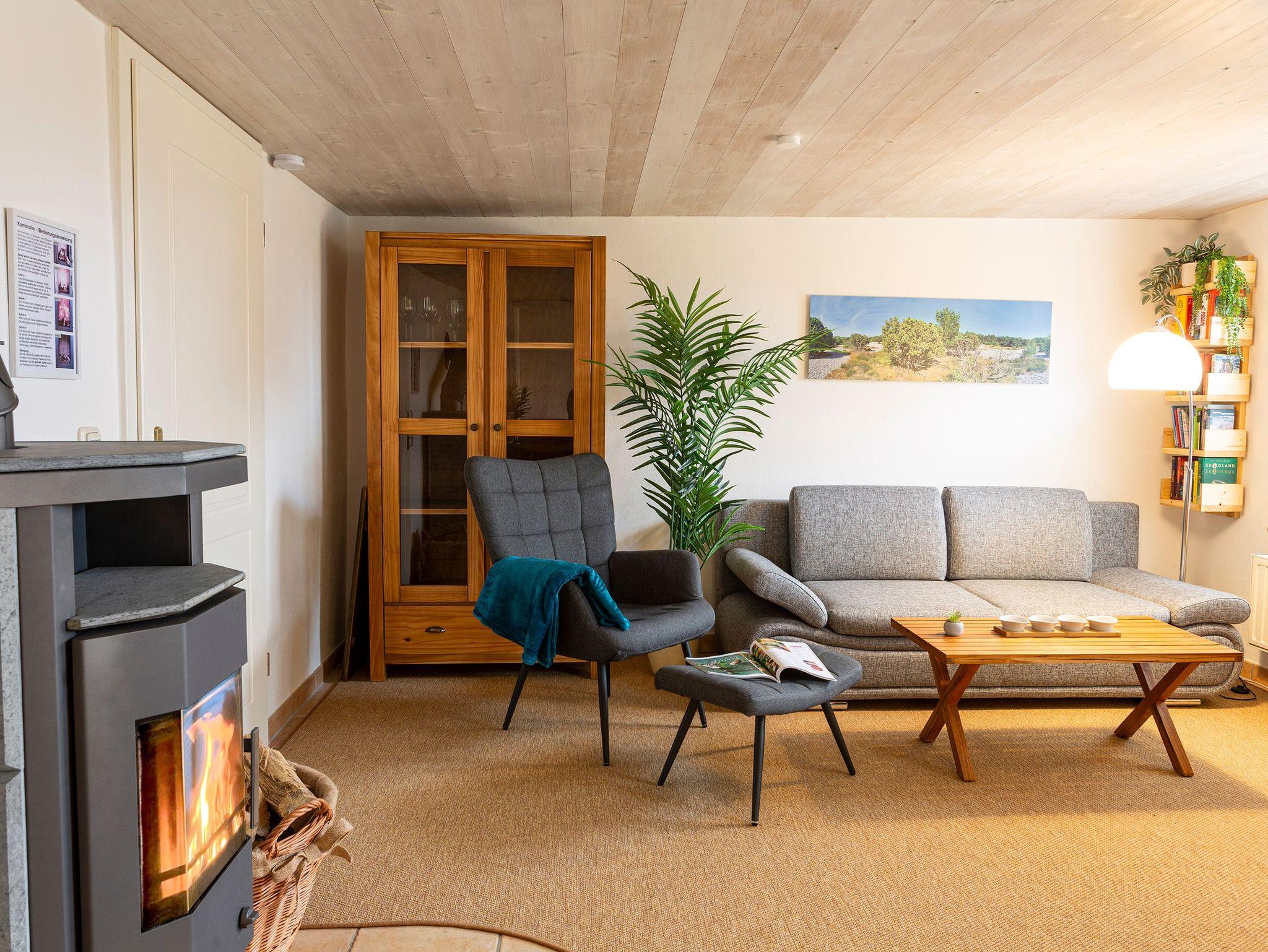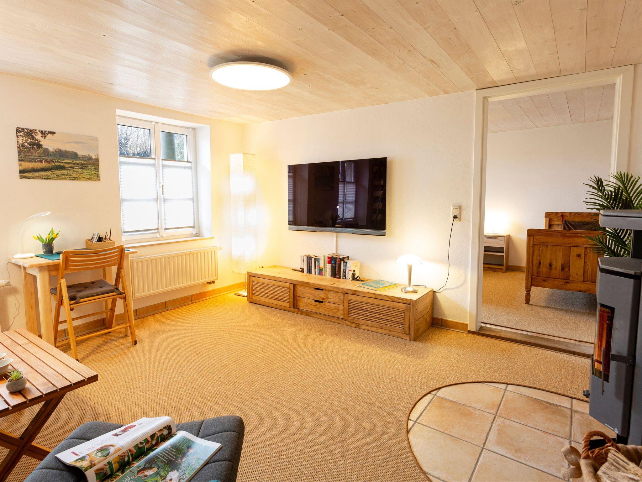 Gemütliche Ferienwohnung 3 im Haus Klein Kapelle auf Rügen mit Kamin, Sauna und Garten zur gemeinsamen Nutzung.