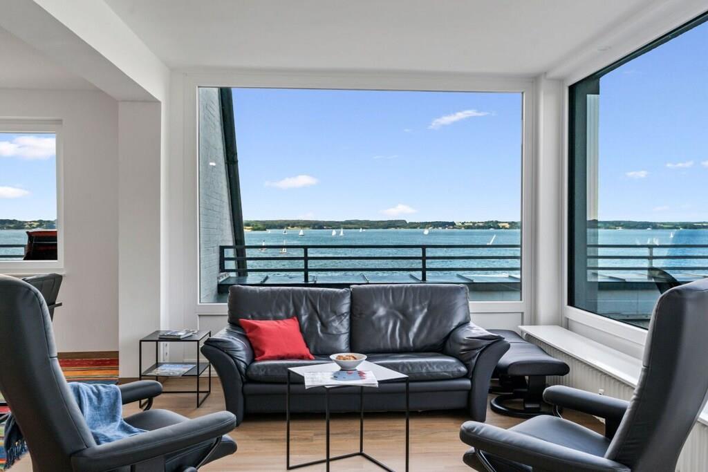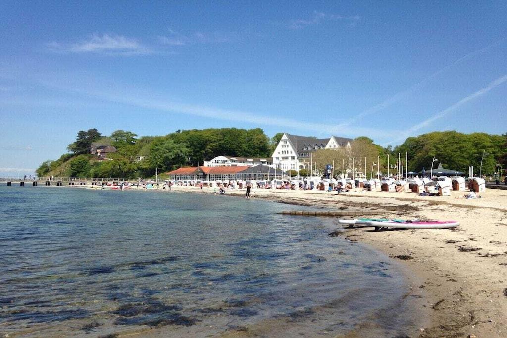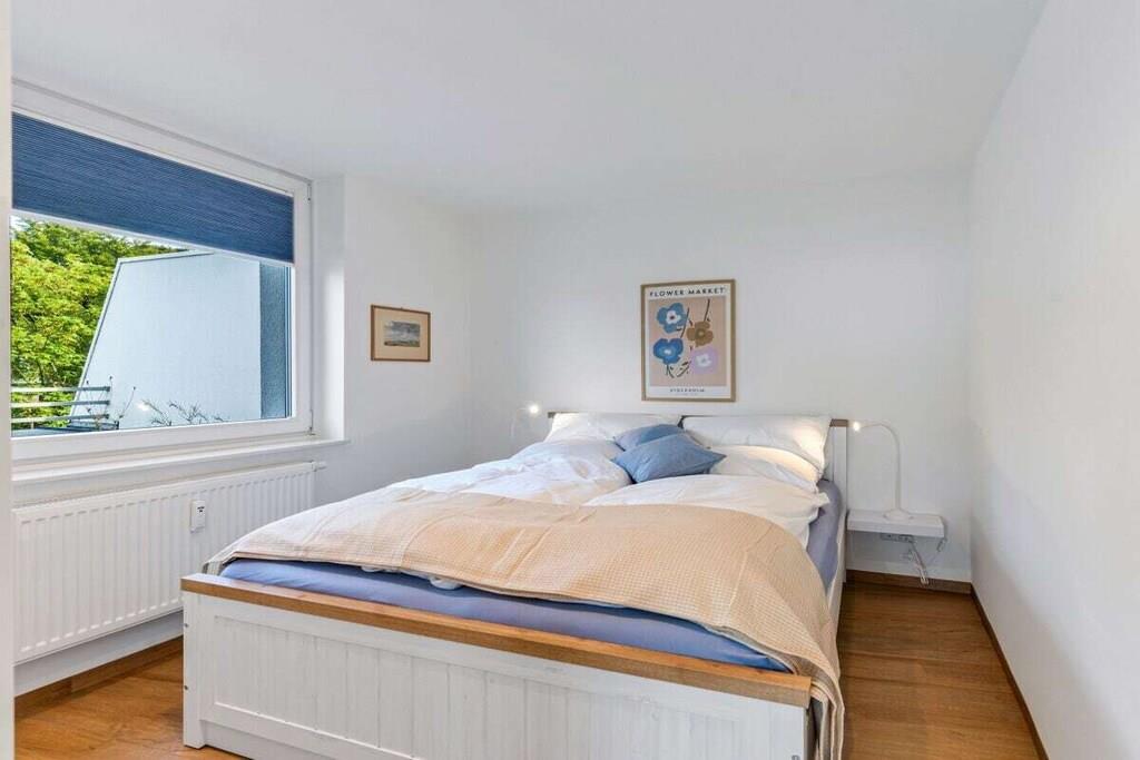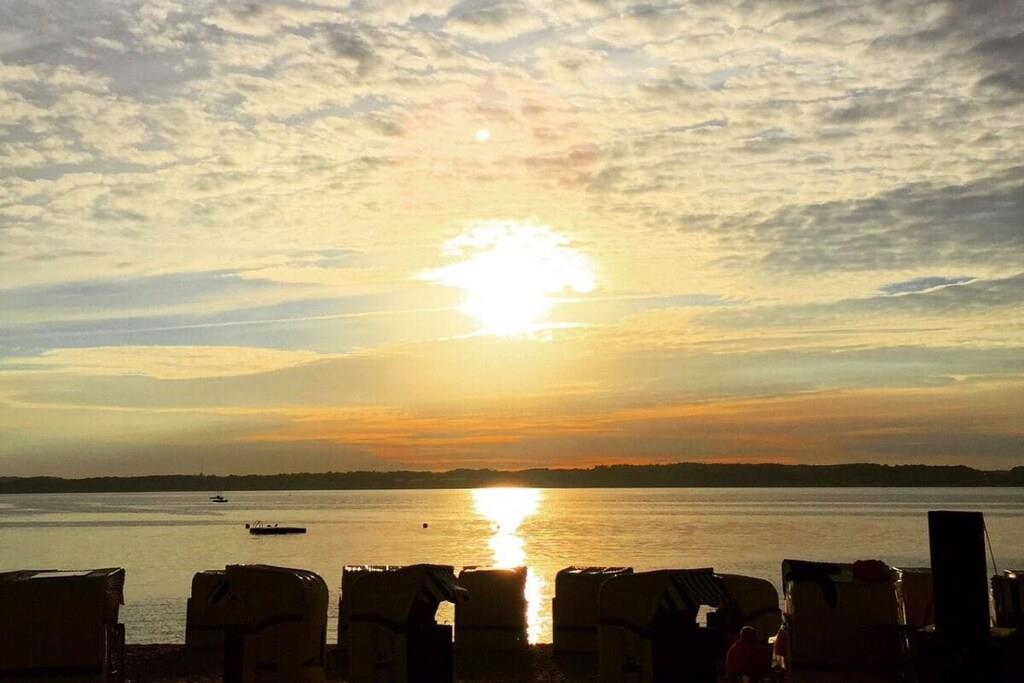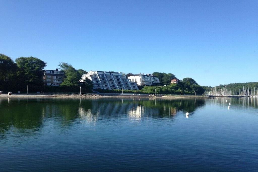 Ferienwohnung für 4 Personen in Top-Lage, direkt am Strand Sandwig in Glücksburg, Flensburger Förde, mit nicht einsehbarem Balkon und großer Dachterrasse zur Wasserseite. 2 Schlafzimmer, Wohn-Esszimmer und offene Küche mit Blick über die Förde bis hin zu den Ochseninseln in Dänemark. Bad und zusätzliches GästeWC. Großzügige Dachterrasse zum Frühstücken und auch für Yoga- oder Pilates-Übungen zu zweit oder ggf. auch mit Fitnesstrainer...? (Adressen zwecks Buchung können vermittelt werden.) Yachtschule und Schwimmen in der Förde oder im Herbst/Winter in der 5 Minuten fußläufig gelegenen Fördeland-Therme? Erholung und Fitness pur!