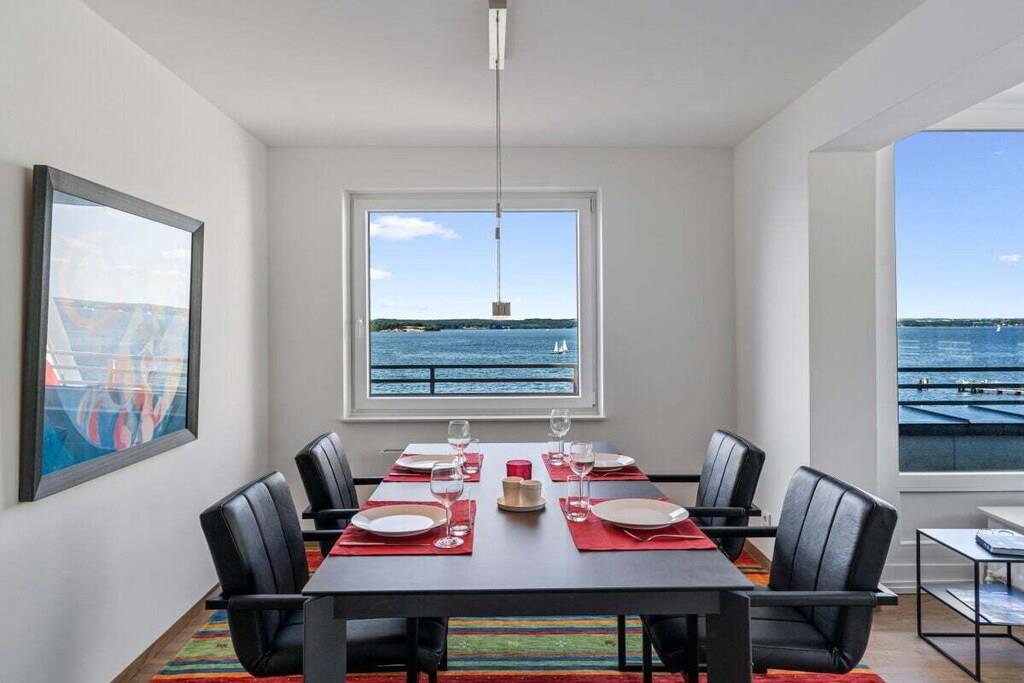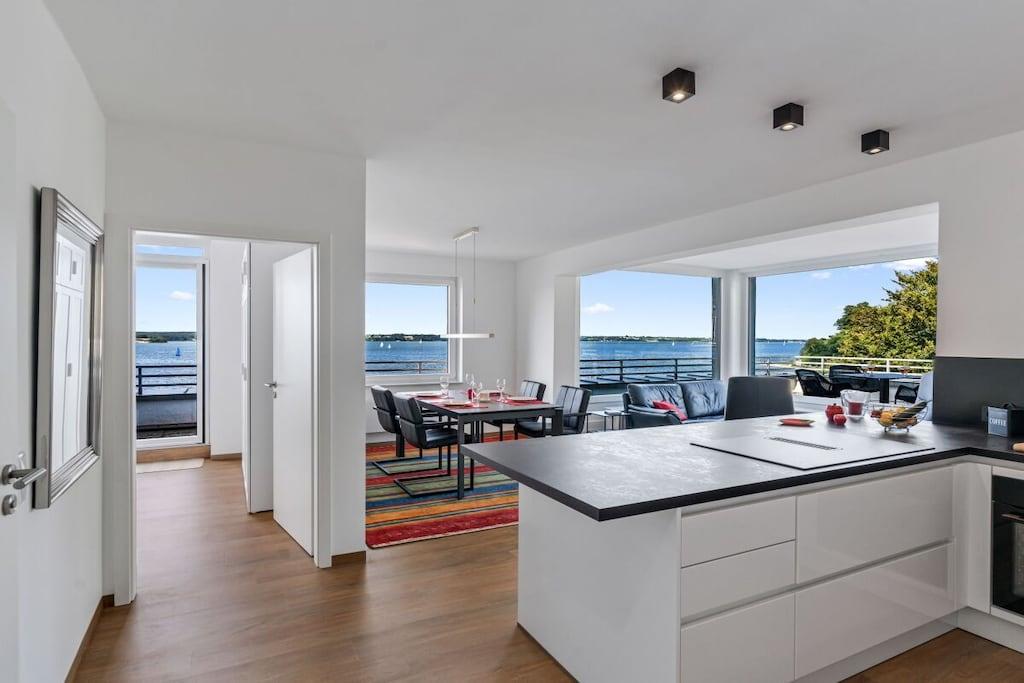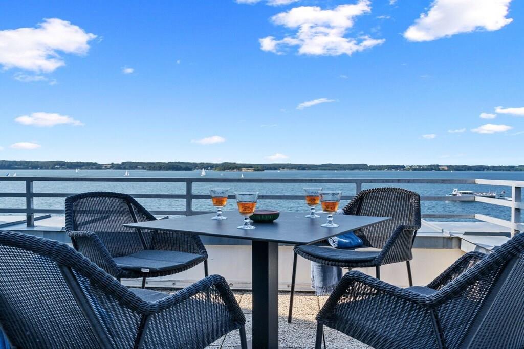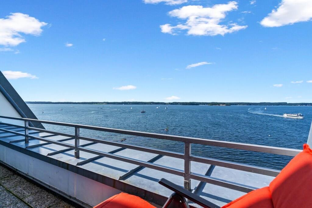 Ferienwohnung in Glücksburg direkt am Strand mit großer Dachterrasse und Blick auf die Flensburger Förde.