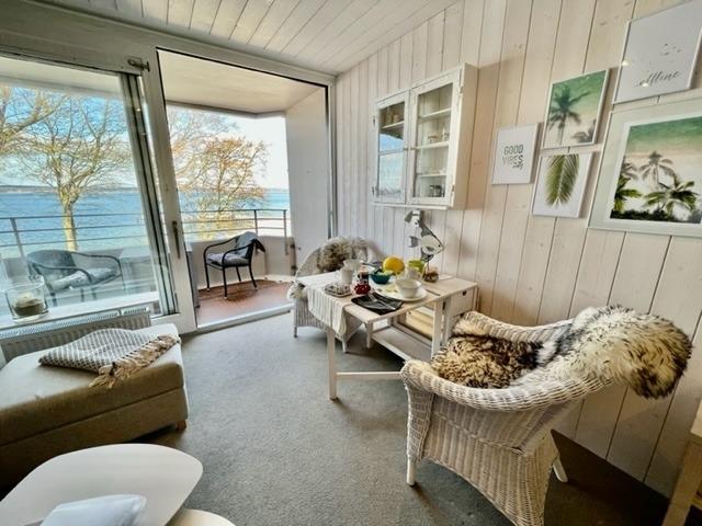 Gemütliche Ferienwohnung im skandinavischen Stil direkt am Strand von Glücksburg für erholsame Urlaubstage.