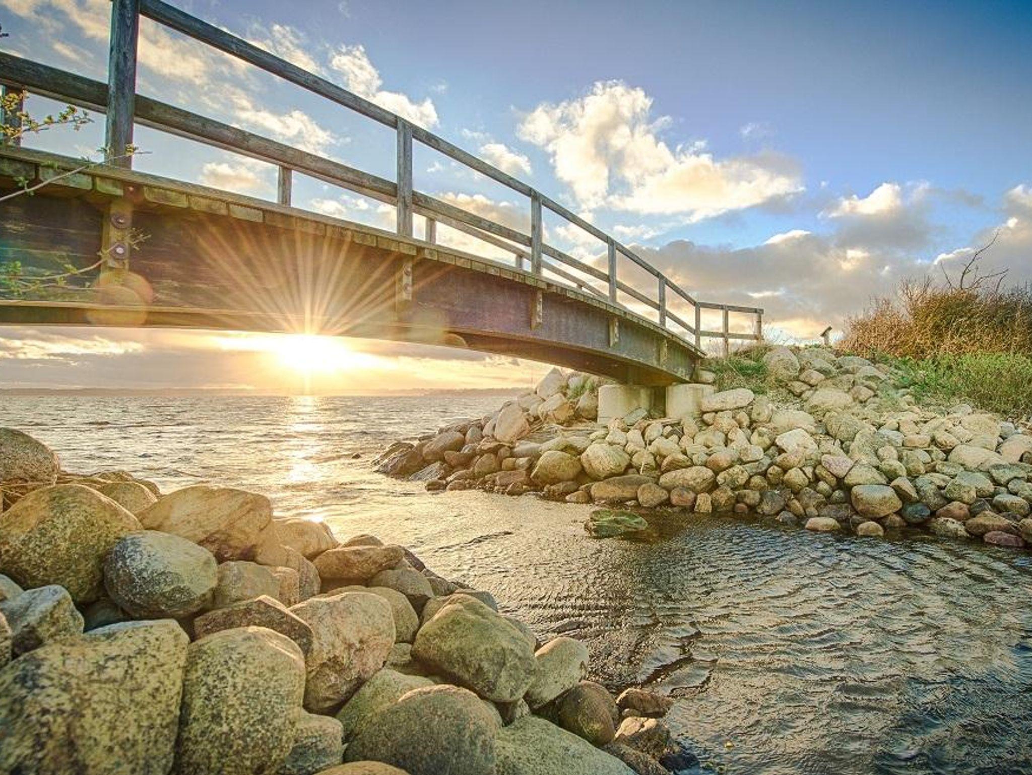 Helle Ferienwohnung Fördekieker mit Meerblick, großer Terrasse und Nähe zum Strand Sandwig in Glücksburg.