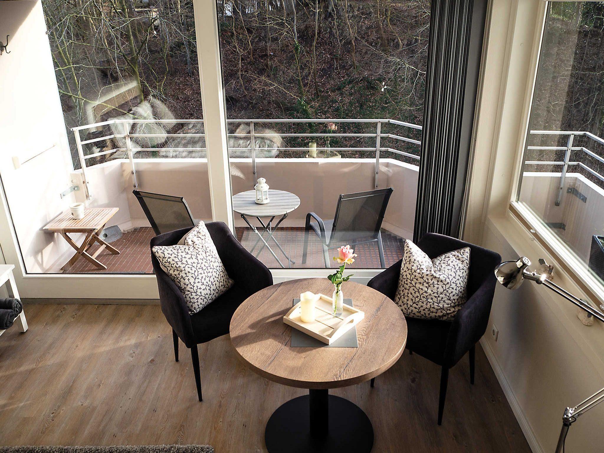 Das 33qm große, neu renovierte, lichtdurchflutete 1-Zimmerappartement für zwei Personen mit Eckbalkon in Sonnenlage und Ausblick ins Grüne befindet sich im 4. Stock des Hotelgebäudes Intermar und liegt direkt an der Strandpromenade von Glücksburg. Ein stilvolles und harmonisches Ambiente ist garantiert.