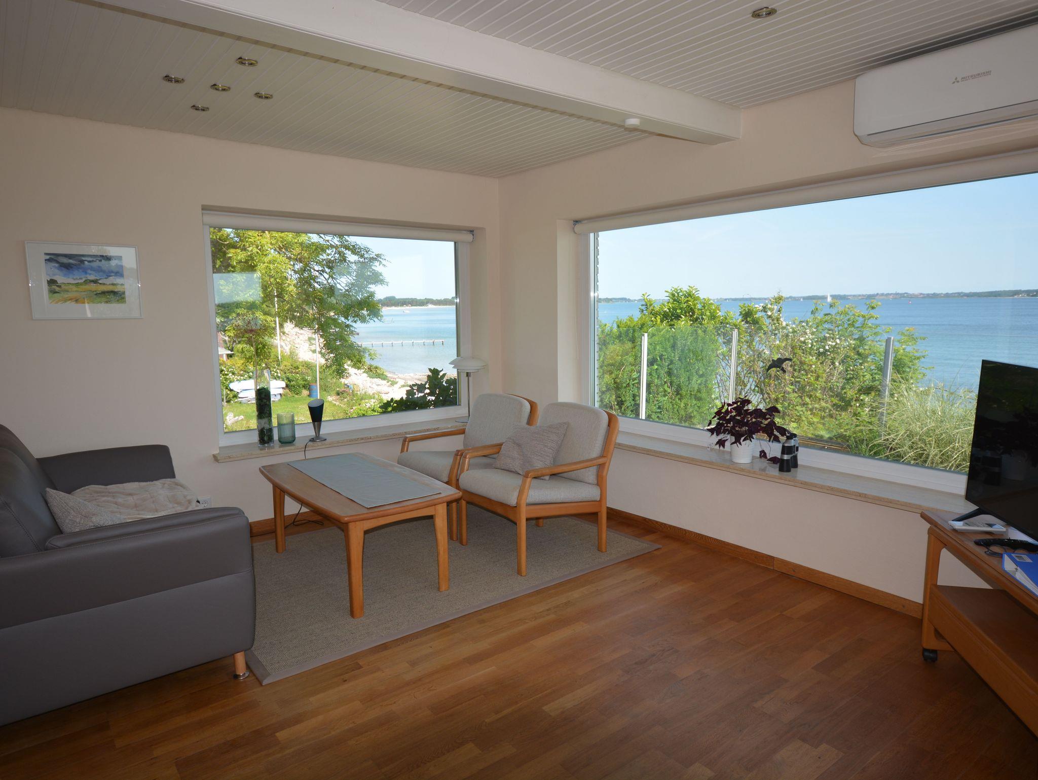 Gemütliches Ferienhaus Utsicht mit Meerblick, Terrasse und moderner Ausstattung direkt an der Flensburger Förde.