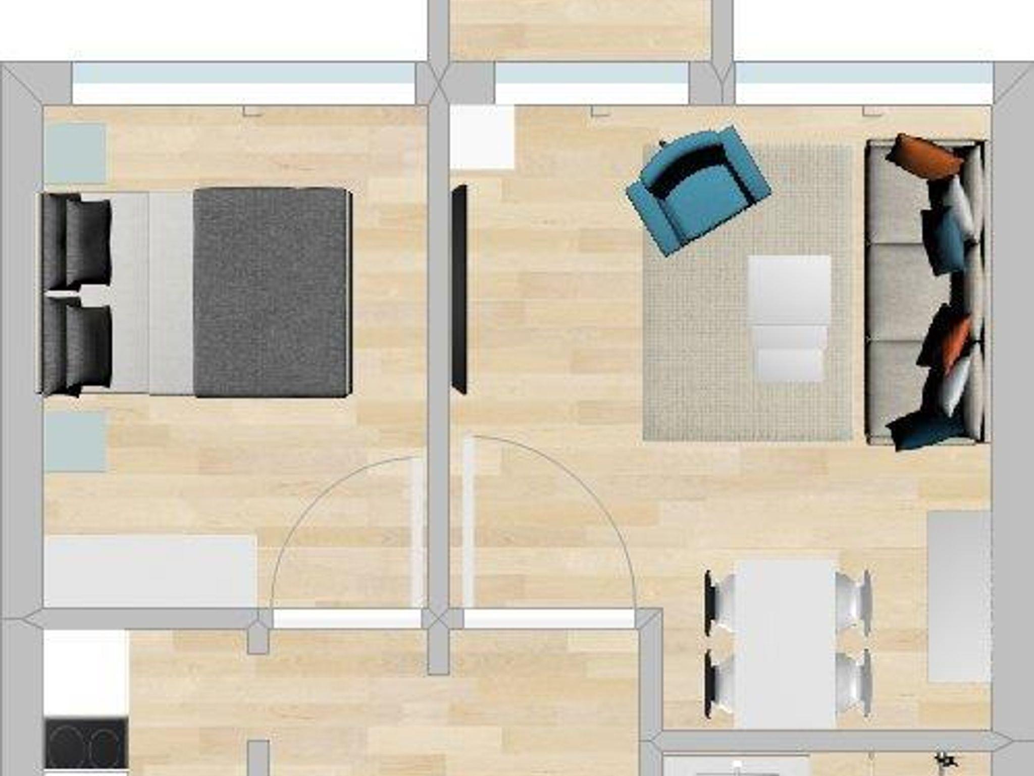 Ein komfortables Wohnzimmer mit Schafcouch für die 3. Person, 50 Zoll Smart-TV mit kostenfreiem Netflix Zugang und Bluetooth Musikanlage und ein gemütliches Schlafzimmer für zwei Personen mit einem 1,40m Doppelbett sorgen für Behaglichkeit. Eine neue Küche mit 2 Platten Ceranfeld, Kombimikrowelle und einem Geschirrspüler sowie ein modernes, neu renoviertes Duschbad gehören ebenfalls zur Ausstattung. Geniessen Sie die Aussicht von Ihrem kleinen Balkon und lassen Sie es sich richtig gut gehen!