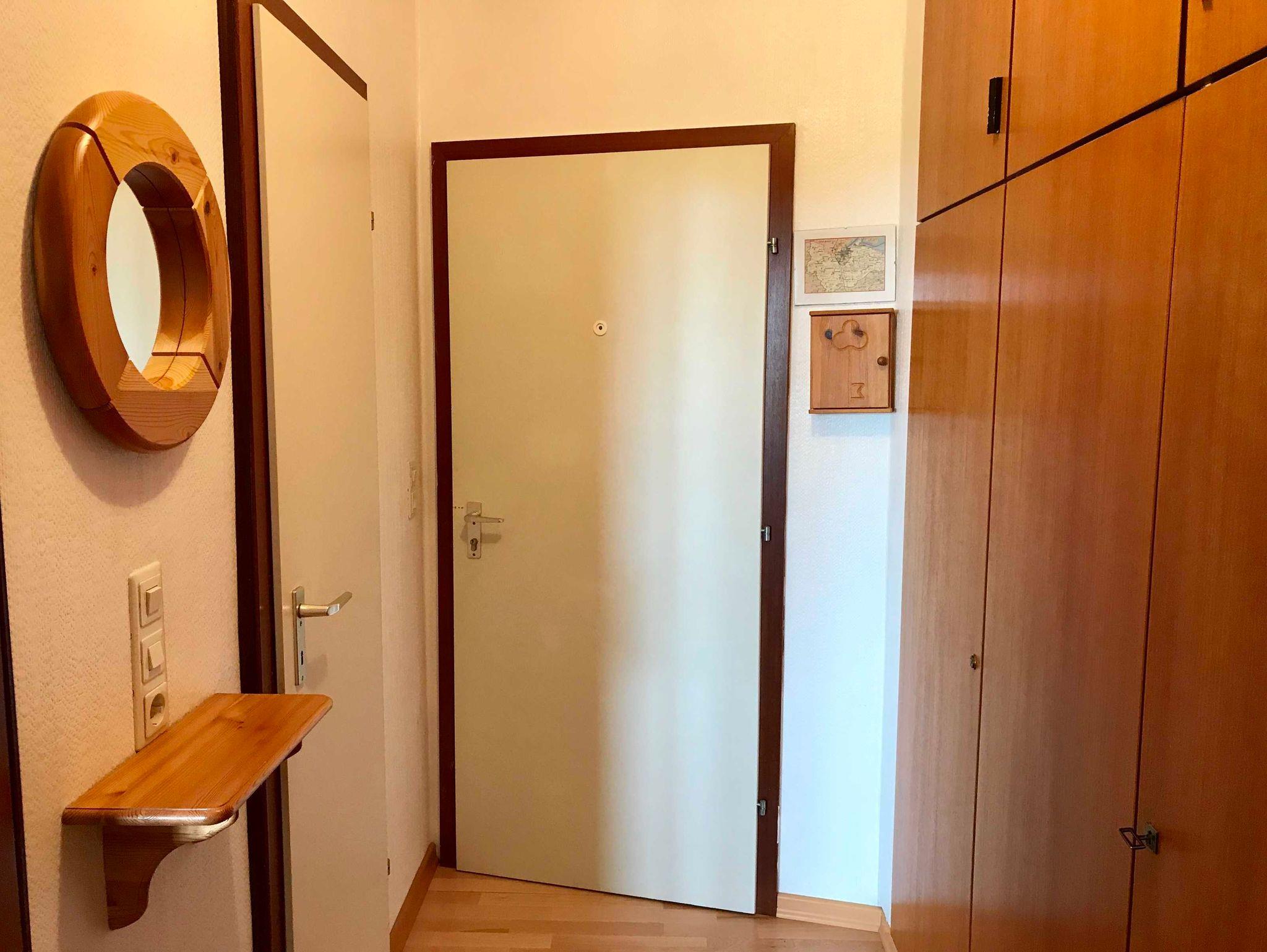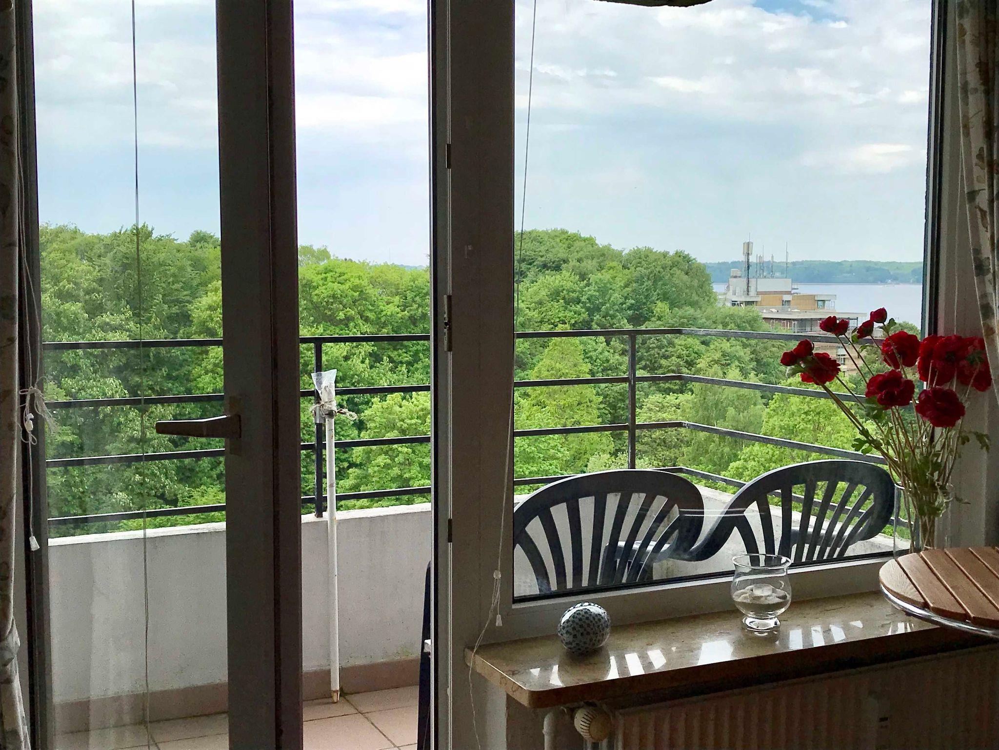 Die Wohnung befindet sich in einem 8-stöckigen Appartementhaus, in der achten Etage (bis zum 7. Stock fahren Sie mit dem Fahrstuhl - vom 7. in den 8. Stock benutzen Sie die Treppe) im Glücksburger Kurzentrum und bietet eine hervorragende Aussicht auf die Förde und die Ochseninseln.