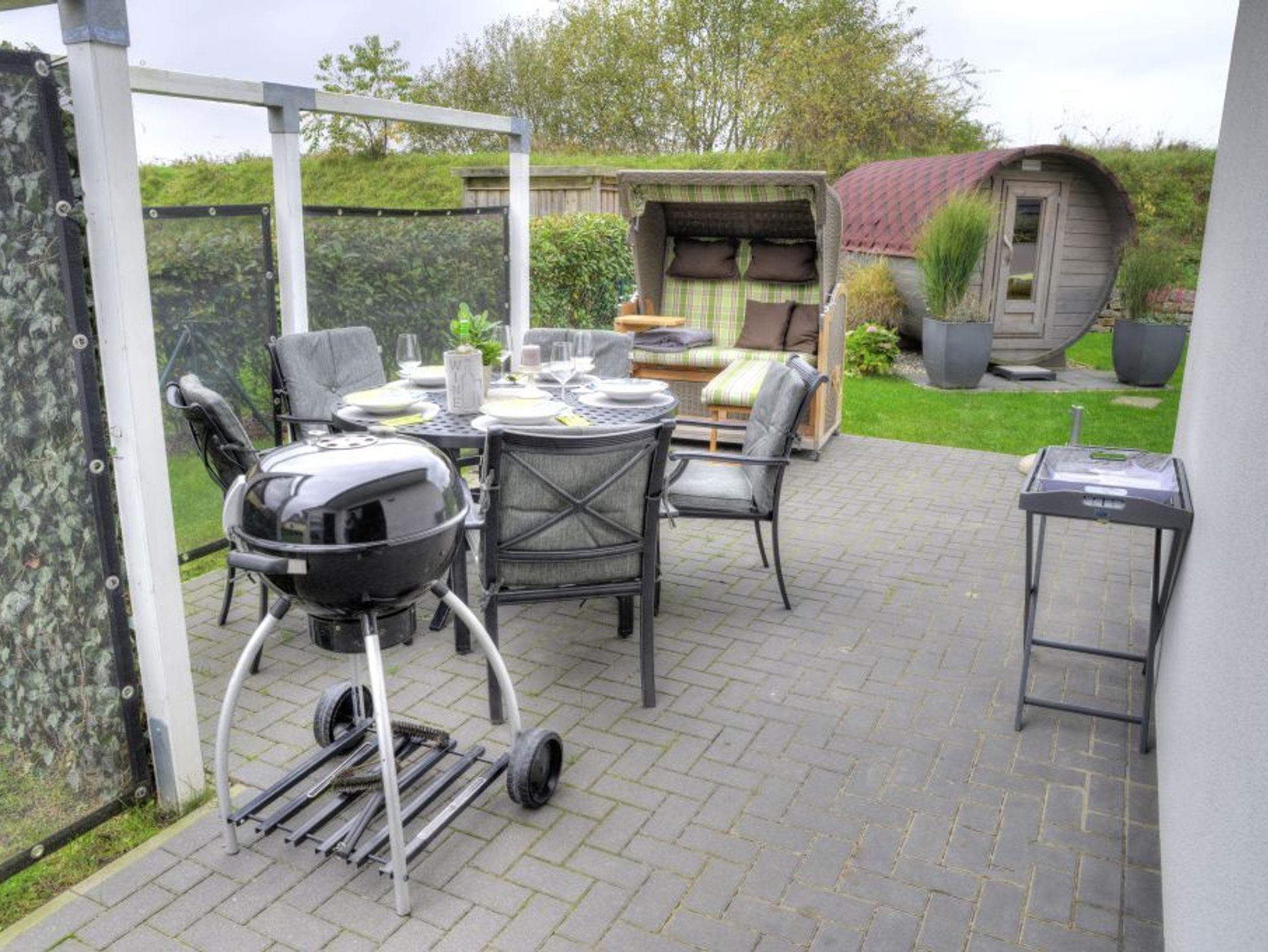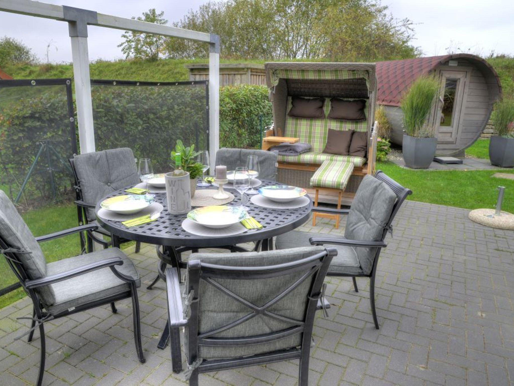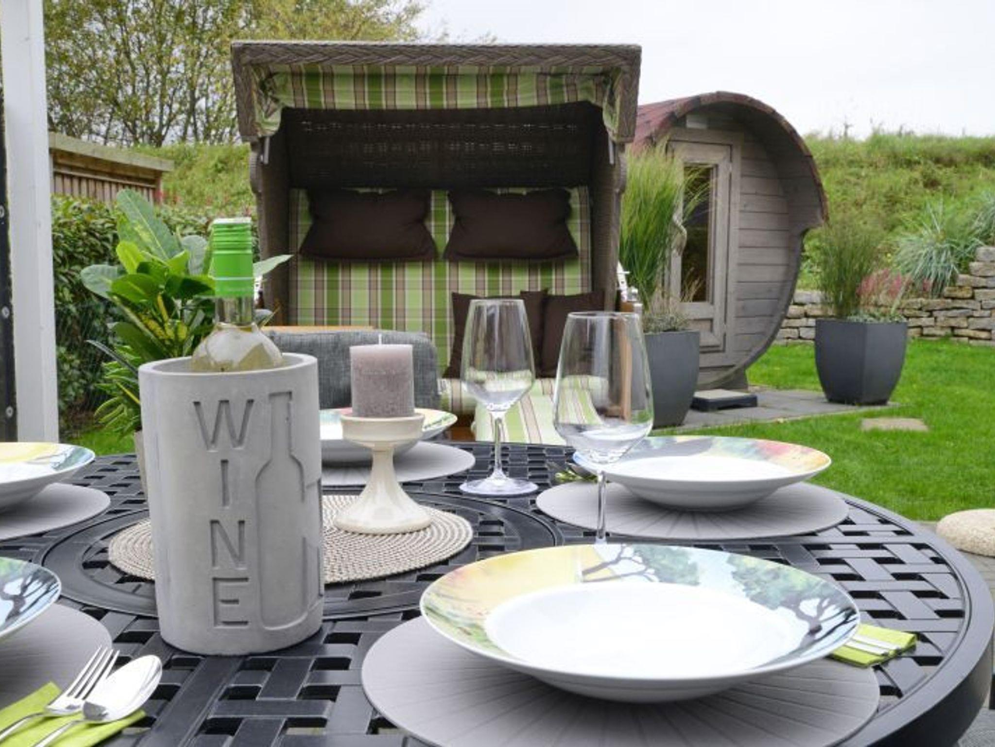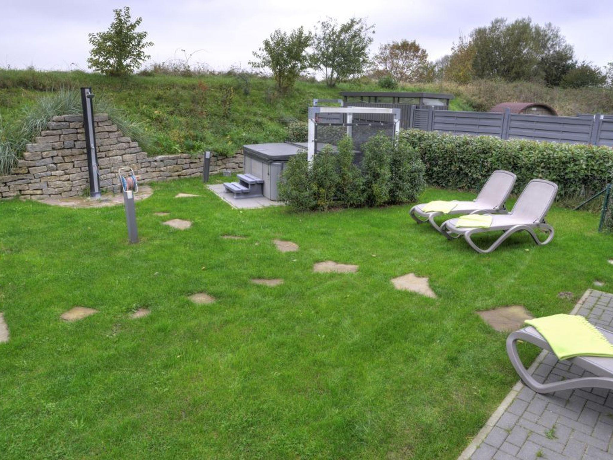 Liegen für den Aussenbereich, Faßsauna, Outdoor-Whirlpool, Aussendusche.