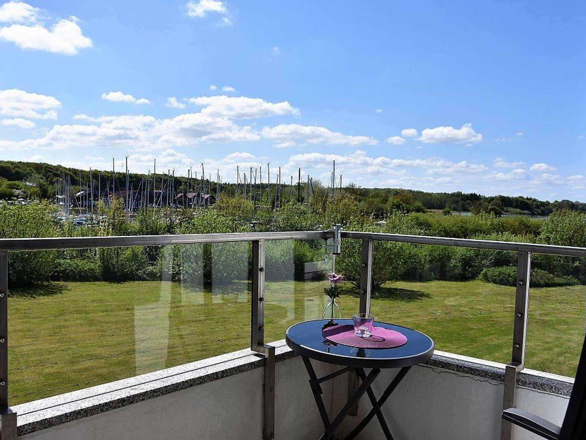 Stilvoll eingerichtete Ferienwohnung für 2 Personen direkt am Wasser, Südbalkon mit Panoramablick auf den Segelyachthafen und die Flensburger Förde