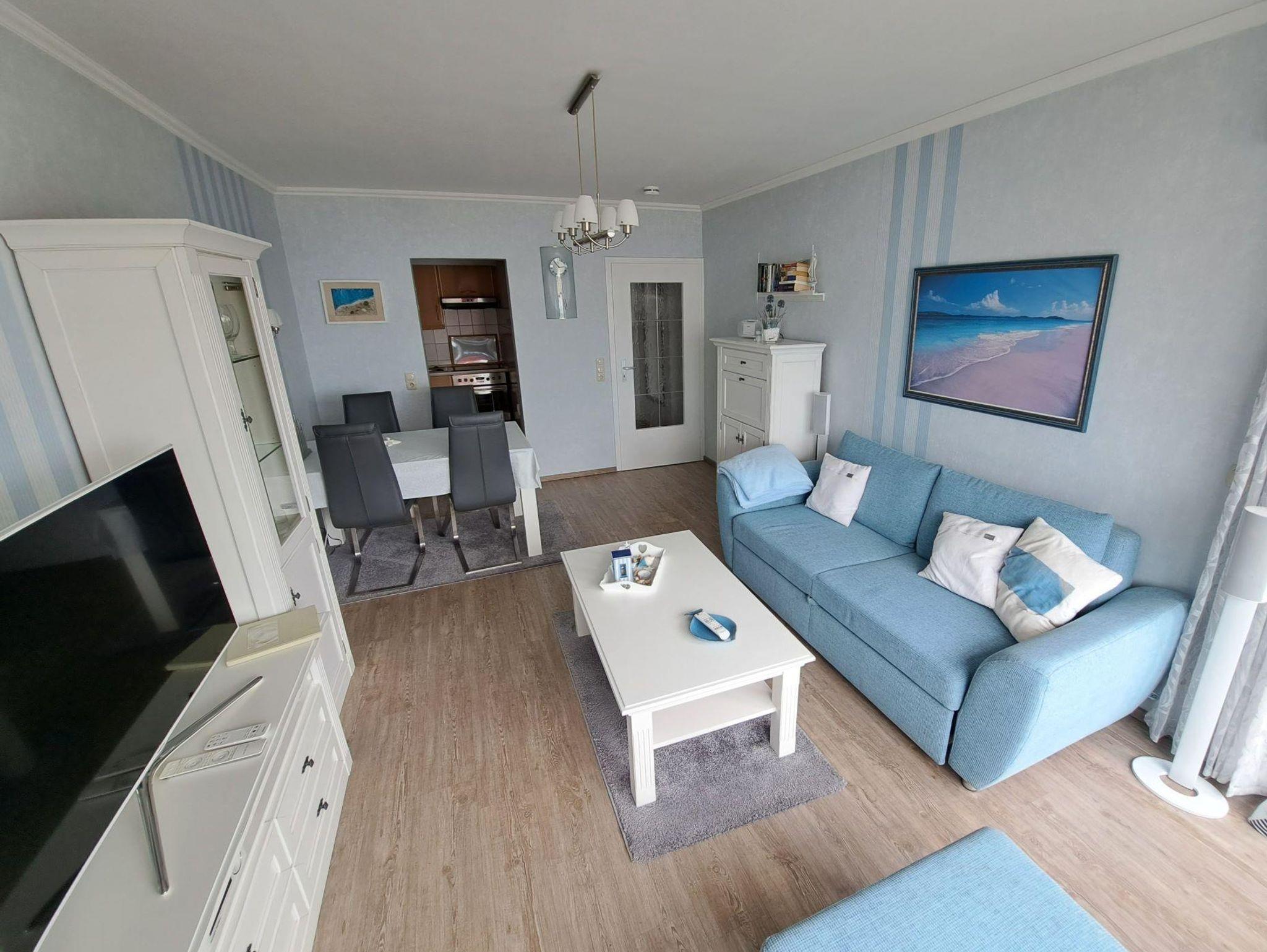 • Wohnzimmer mit direkten Meerblick, hochwertigen Schlafcouch, Flachbildfernseher, Harman Sound System, kolstenloses WLAN