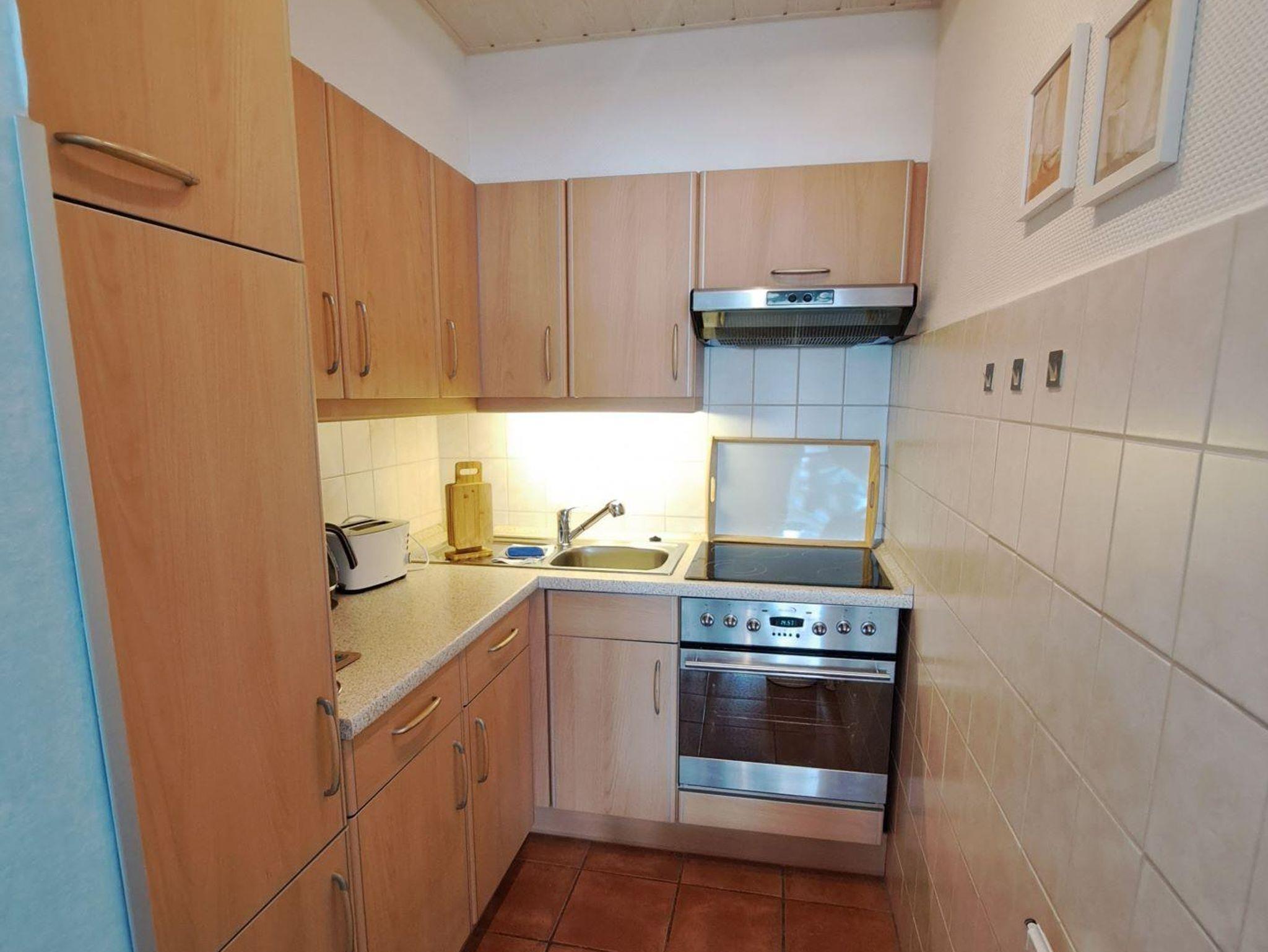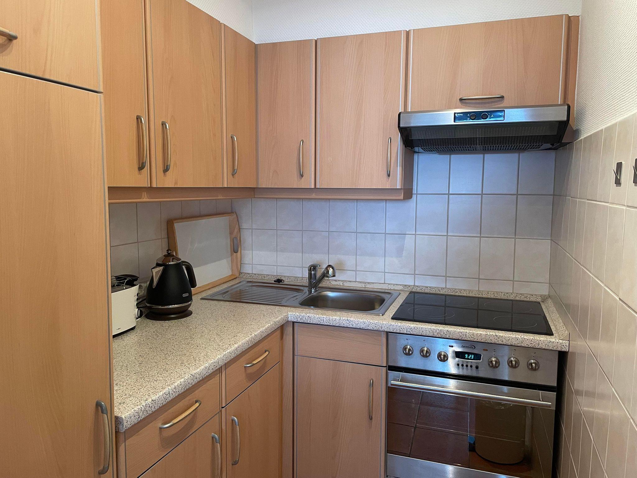 • Einbauküche mit Kühlschrank und Gefrierfach, Cerankochfeld, Backofen, Kaffeemaschine, Wasserkocher usw.