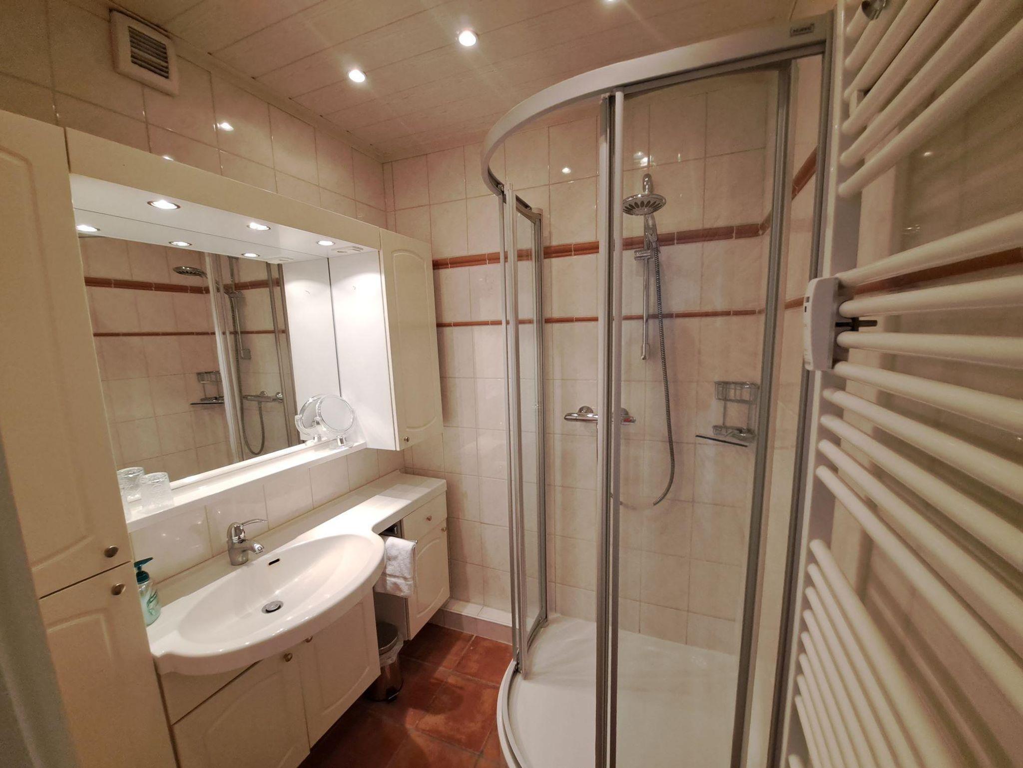 • Badezimmer mit Dusche und Handtuchwärmer, WC in einen separaten Raum