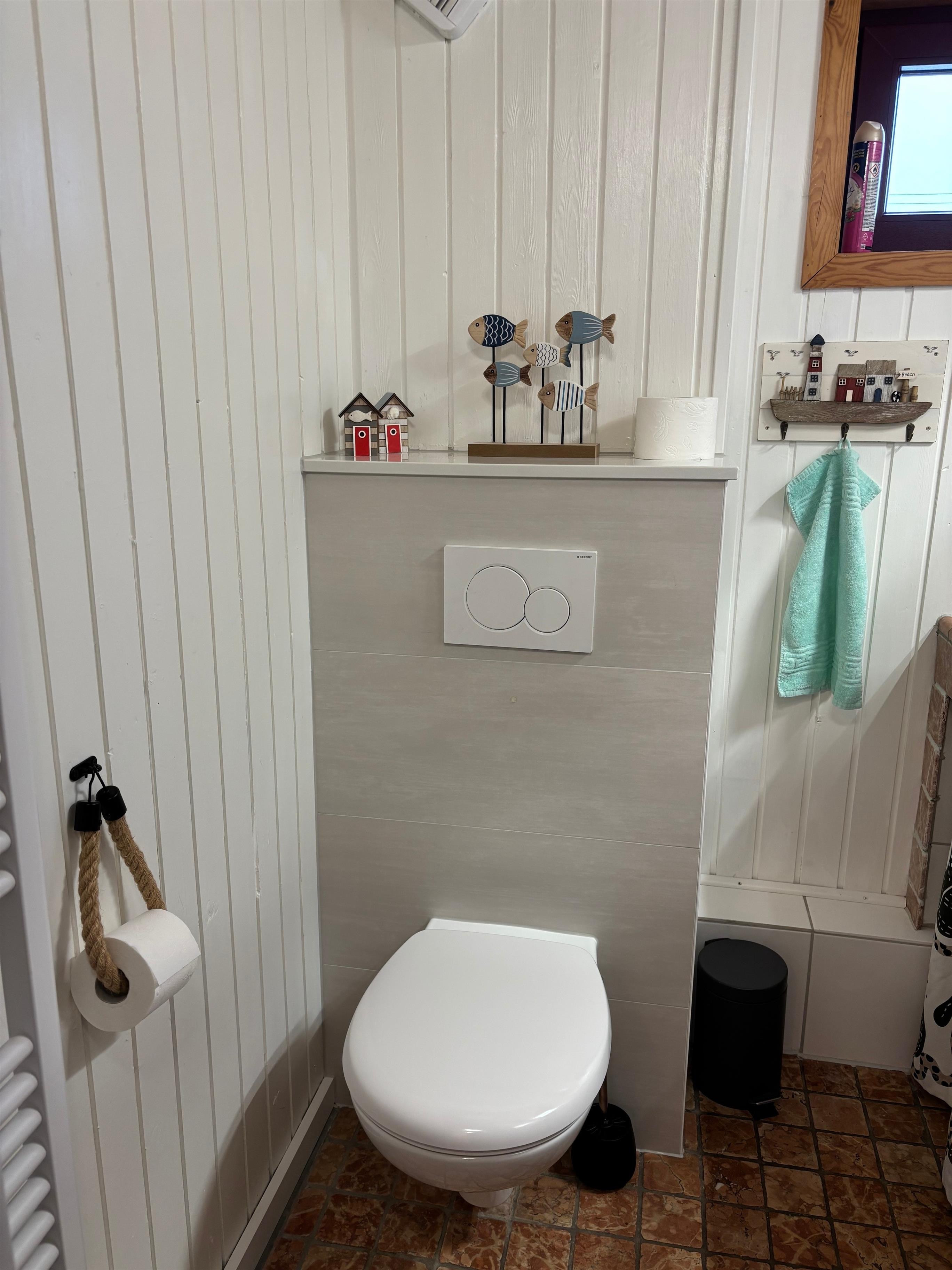Besonders einladend sind die zwei sonnigen Terrassen. Die große Holzterrasse ist mit bequemen Gartenmöbeln, Sonnenliegen, einem modernen Gasgrill, einem gemütlichen Strandkorb und einer Markise ausgestattet. Hier können Sie entspannte Grillabende mit Familie und Freunden genießen oder den Tag bei einem Glas Wein auf der vorderen kleinen Terrasse gemütlich ausklingen lassen.