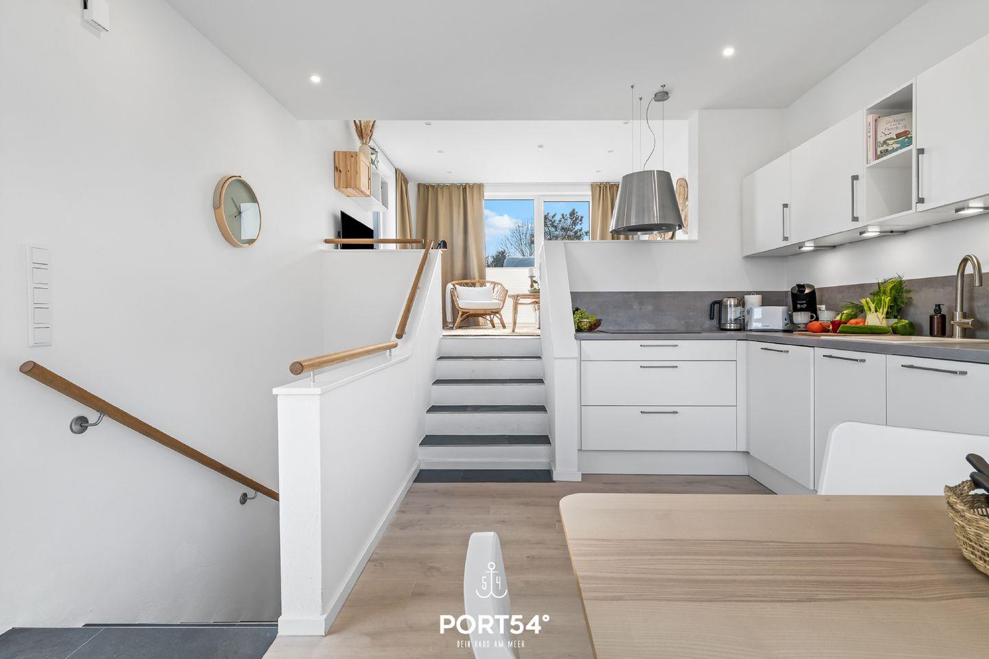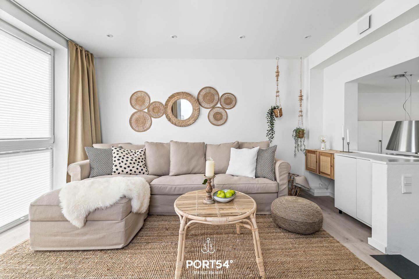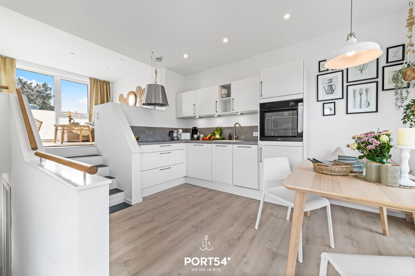 Zwei weitere Schlafmöglichkeiten bietet Dir die bequeme Couch (140x200cm) im offenen Wohn- und Essbereich mit angrenzender Küche. In der vollausgestatteten Küche kannst Du nach Lust & Laune kochen und danach die Abende auf dem gemütlichen Sofa oder auf der Dachterrasse ausklingen lassen.