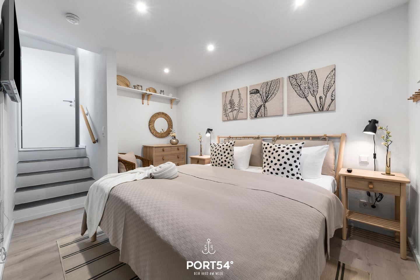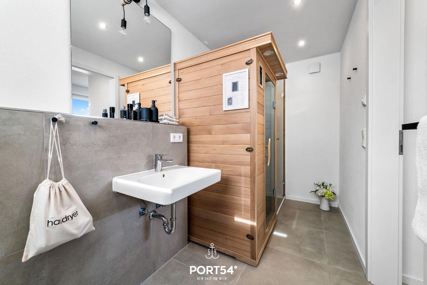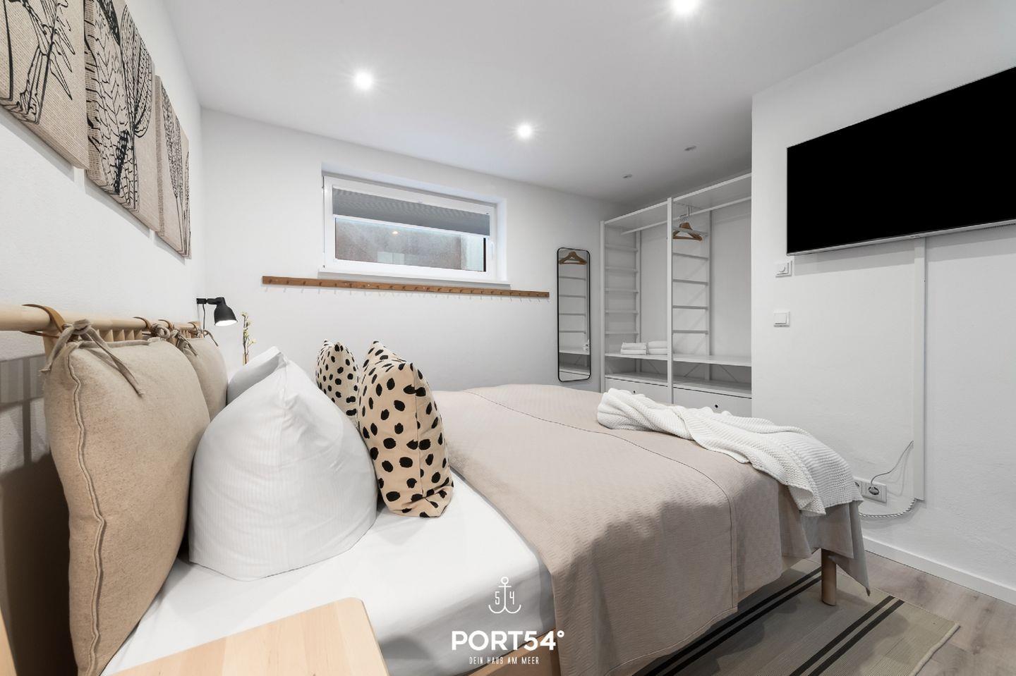 Das Schlafzimmer im Souterrain mit TV bietet Dir in einem Doppelbett (180x200cm) ruhige Nächte für 2 Personen. Ebenfalls im Souterrain befindet sich das Badezimmer, welches Dich mit einer bodengleichen Dusche sowie einer Infrarot-Sauna erwartet. Nach langen Spaziergängen kann hier herrlich entspannt werden!