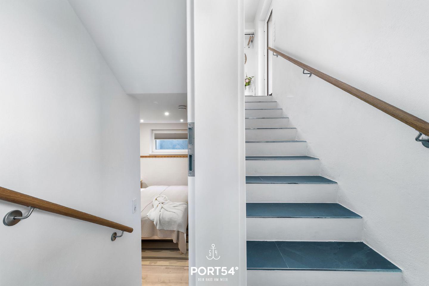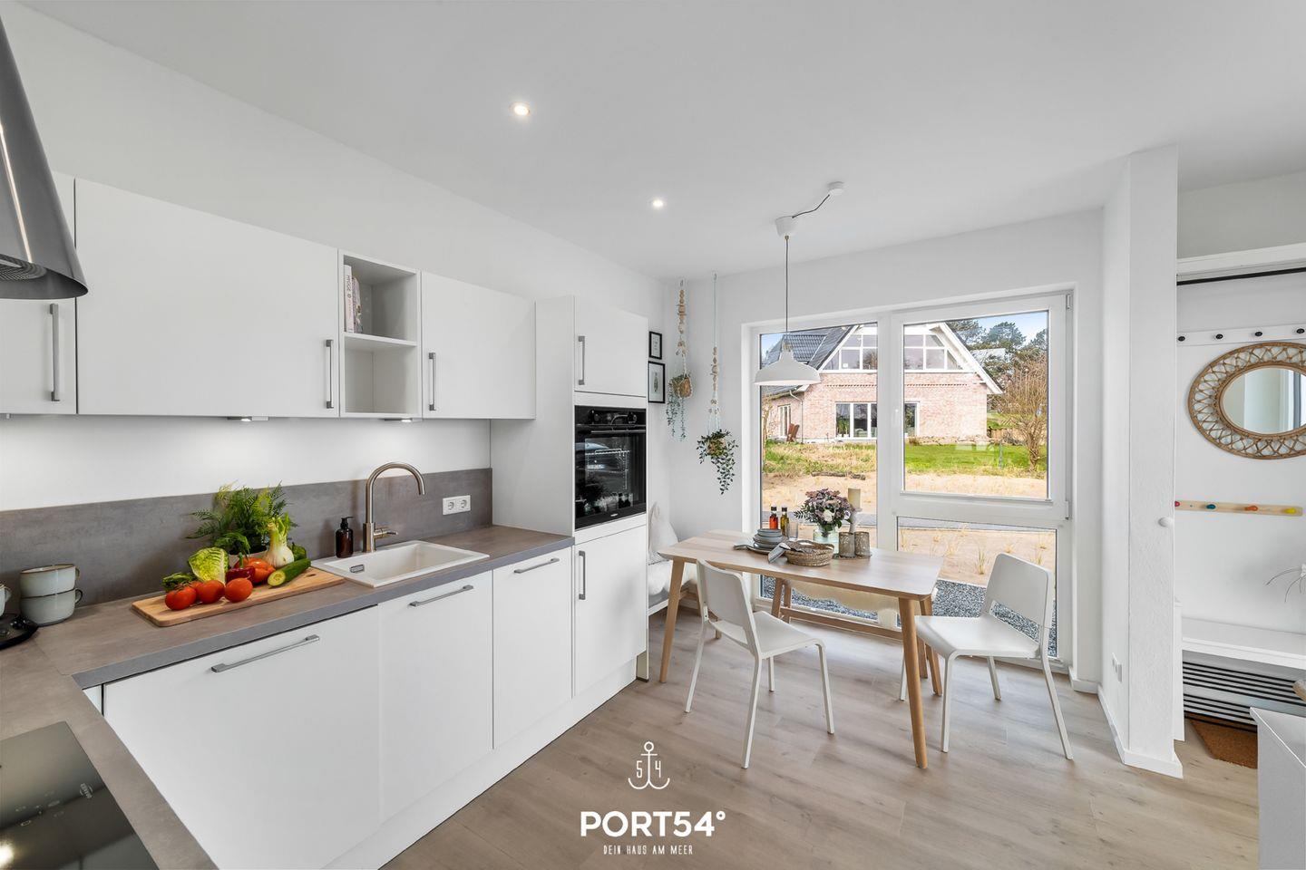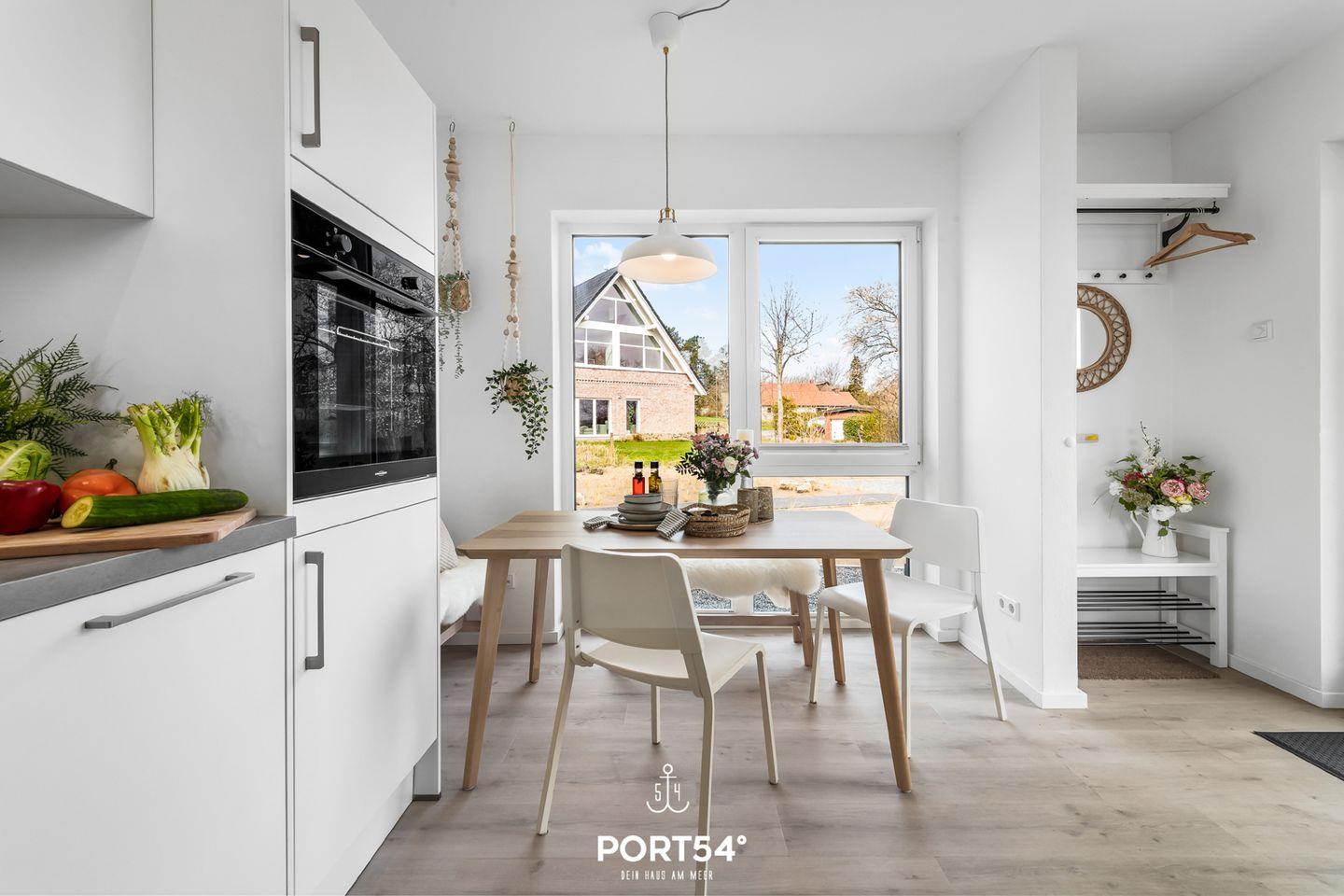 Die Dachterrasse mit Gartenmöbeln bietet Dir einen traumhaften Blick auf die Ostsee. Hier lassen sich sonnige Frühstücke oder laue Sommerabende am Elektro-Grill verbringen. Direkt vor dem Haus befindet sich eine eigene Parkfläche mit Zugang zur E-Ladesäule.