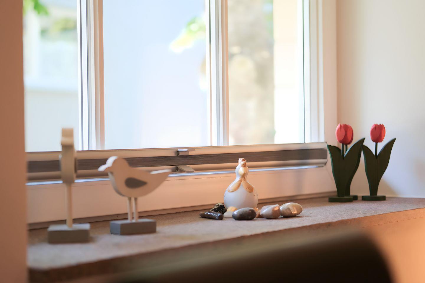 Das Tageslicht-Badezimmer verfügt über eine ebenerdige Dusche, ein WC und einen Waschtisch. Das Haus ist mit einer Fußbodenheizung ausgestattet, die auch im Herbst oder Winter für wohlige Wärme sorgt.