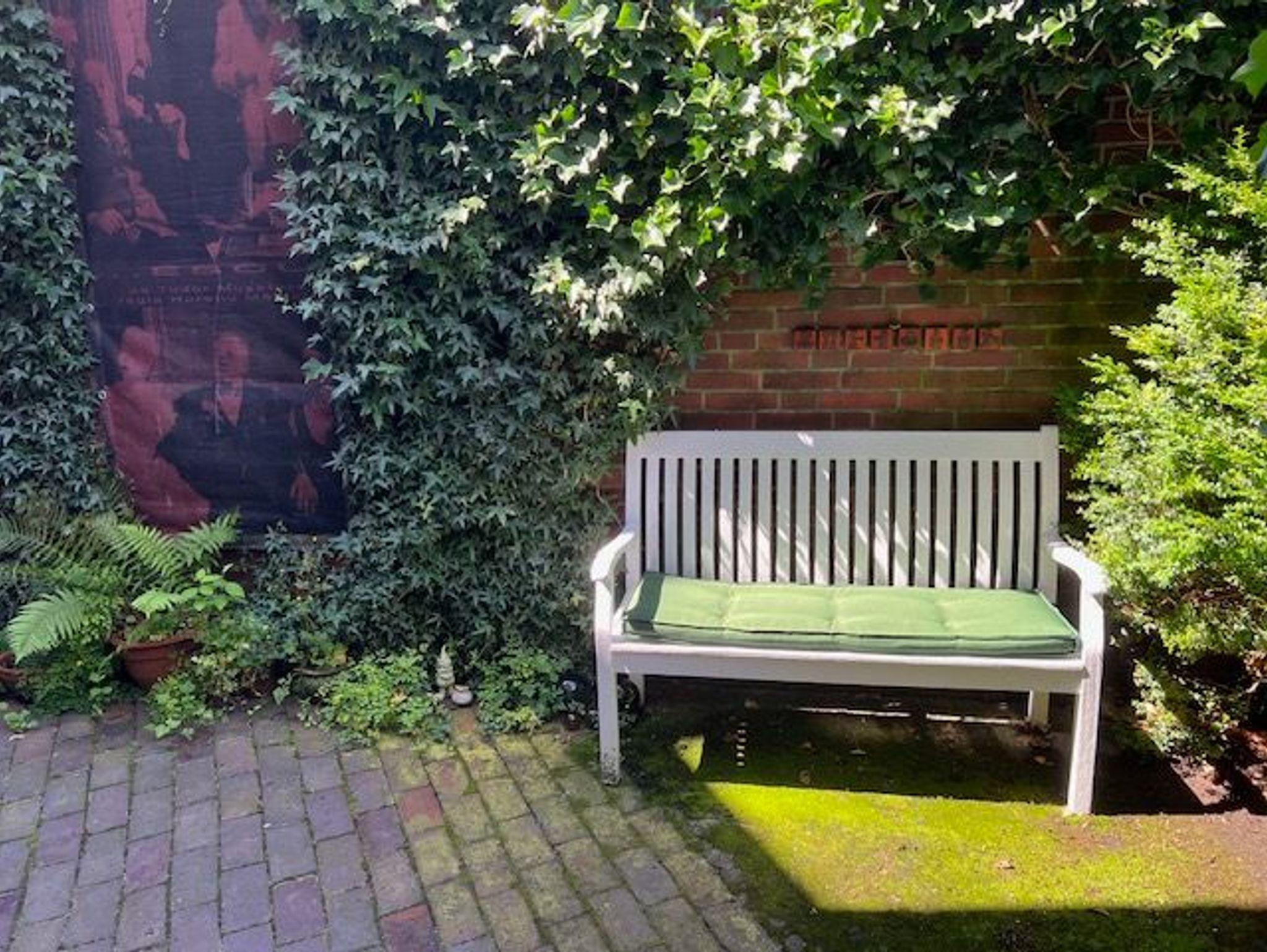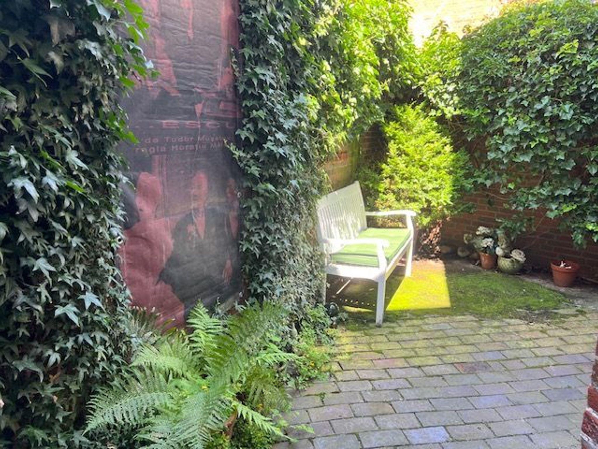 Nutzen Sie bei entsprechenden Temperaturen Sonne und Schatten im privaten, luftigen, grünen Innenhof mit Gartenmöbeln.