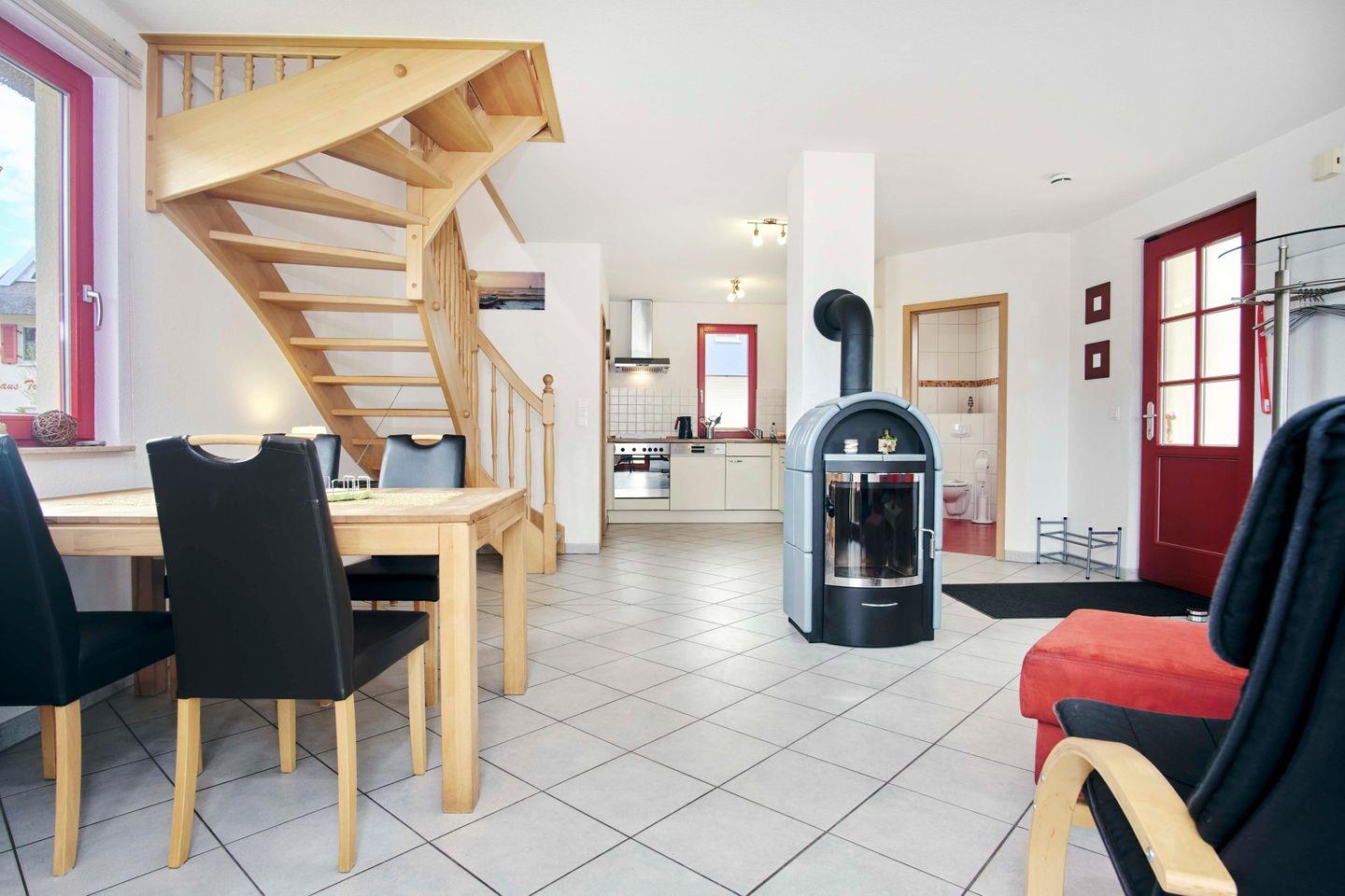Das hell eingerichtete Domizil, das nur 500 m vom Ostseestrand entfernt ist, verfügt über 1 großen Wohnraum mit einem Kaminofen, 1 offene Einbauküche, 2 separate Schlafräume, 1 Bad und einen 450 m² großen Gartenbereich, wovon ca. 250 m² eingezäunt sind.